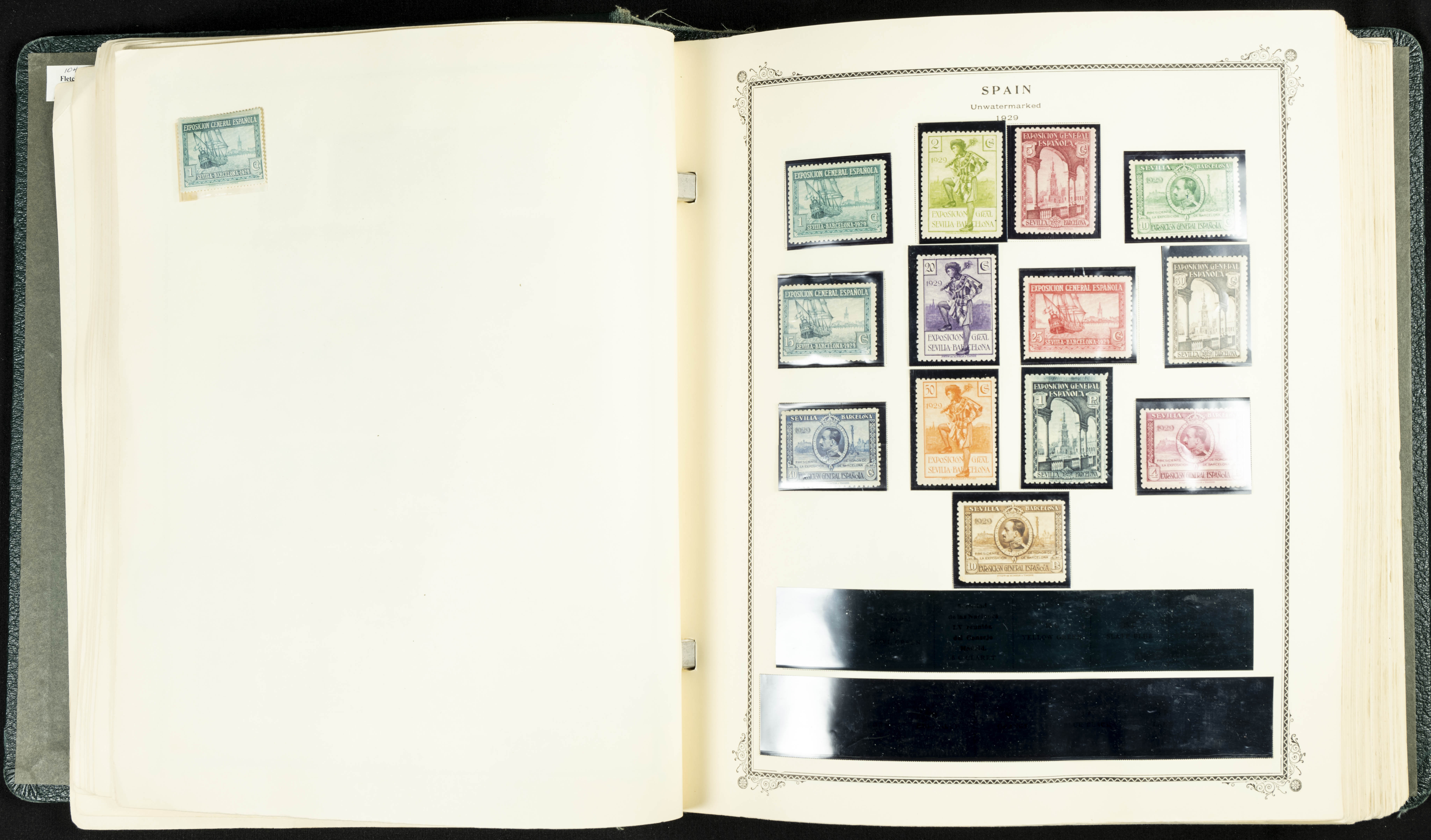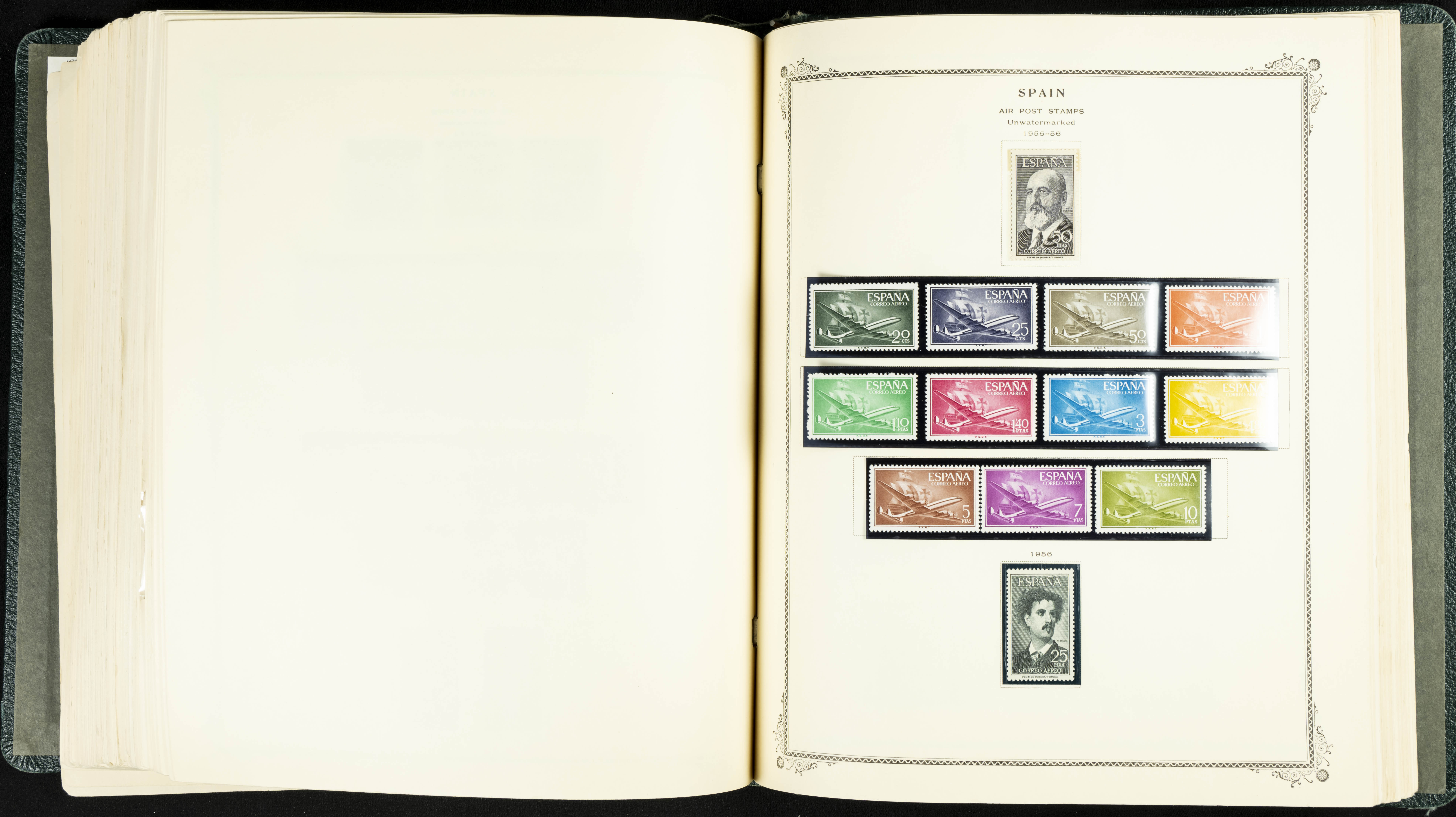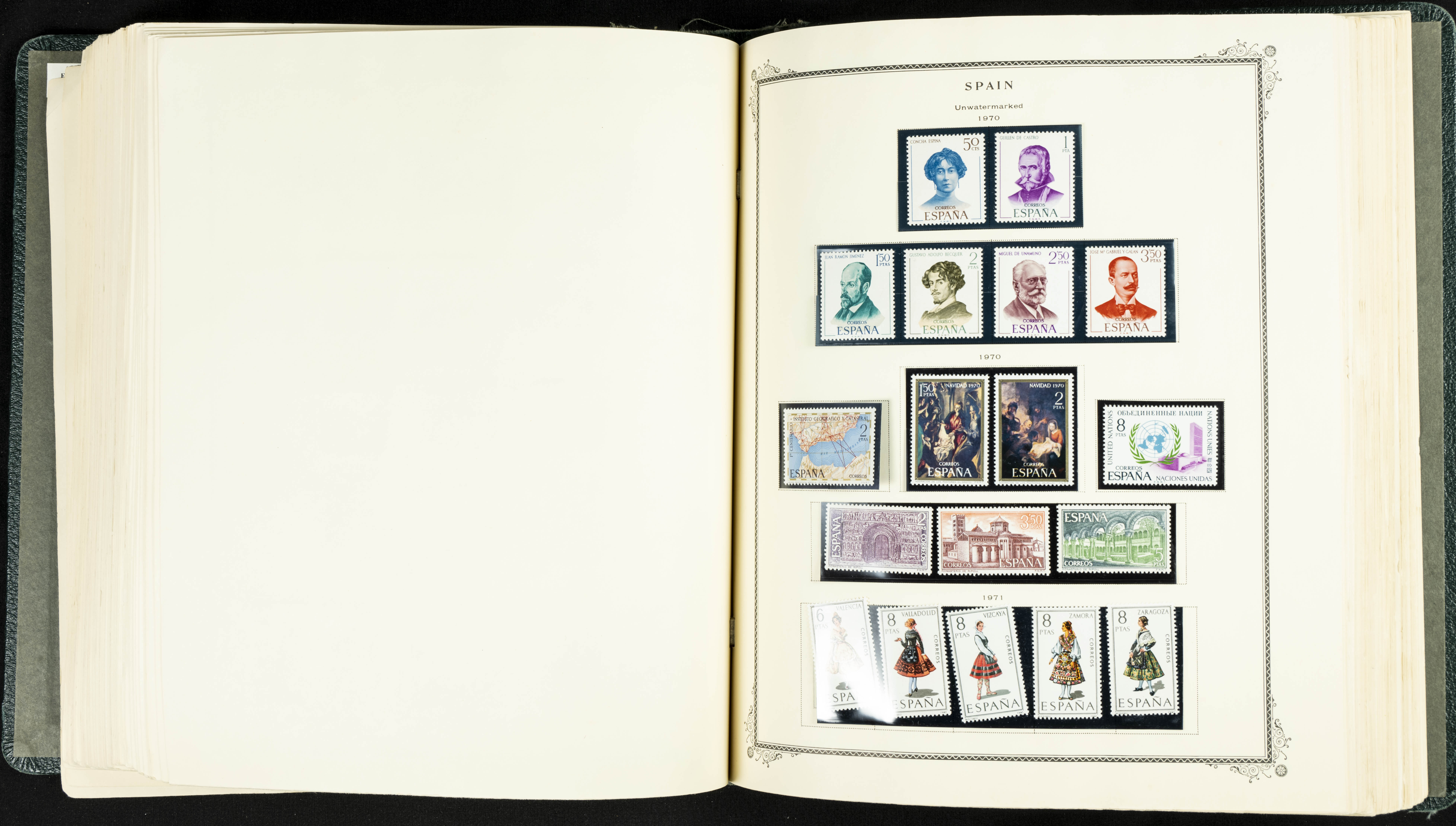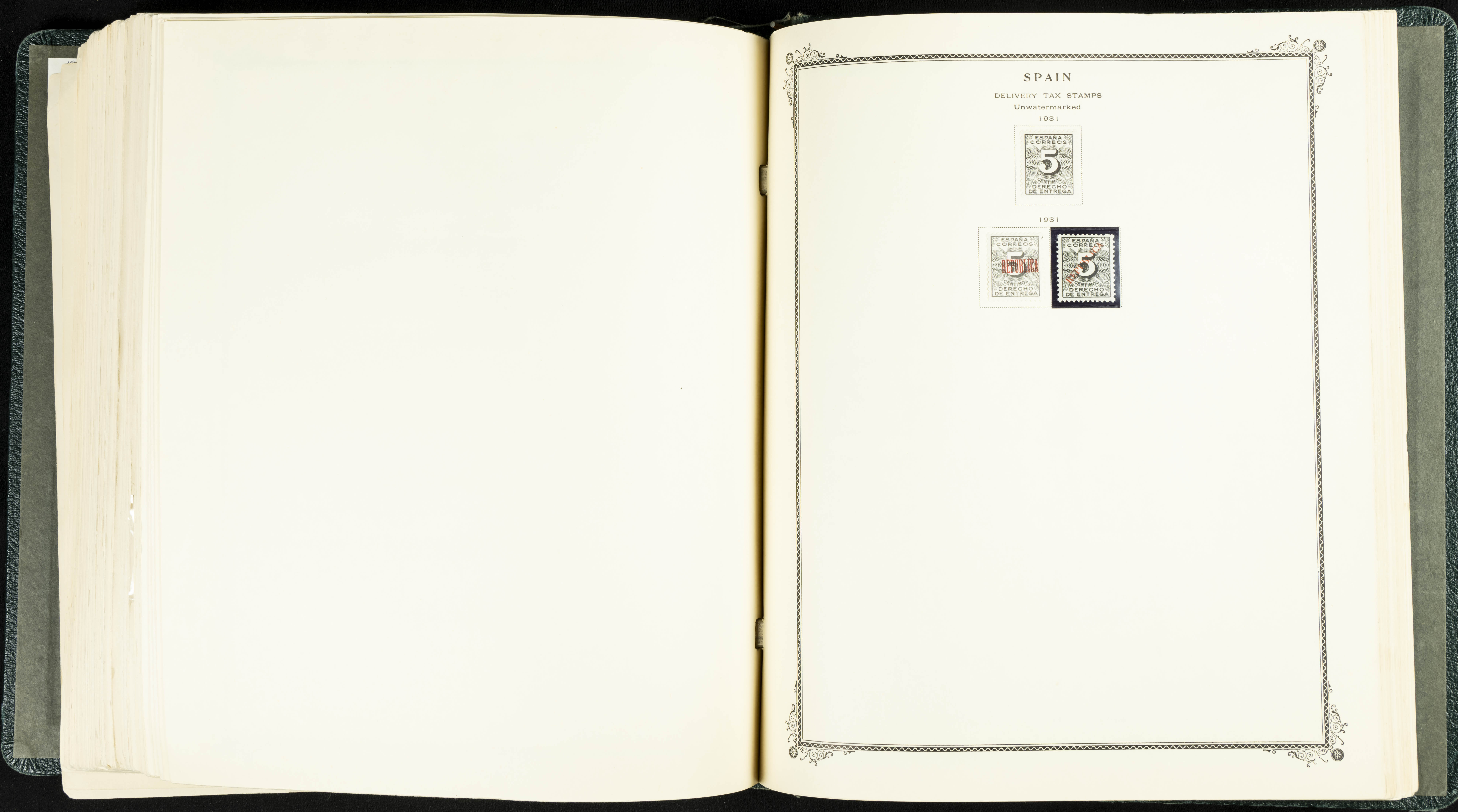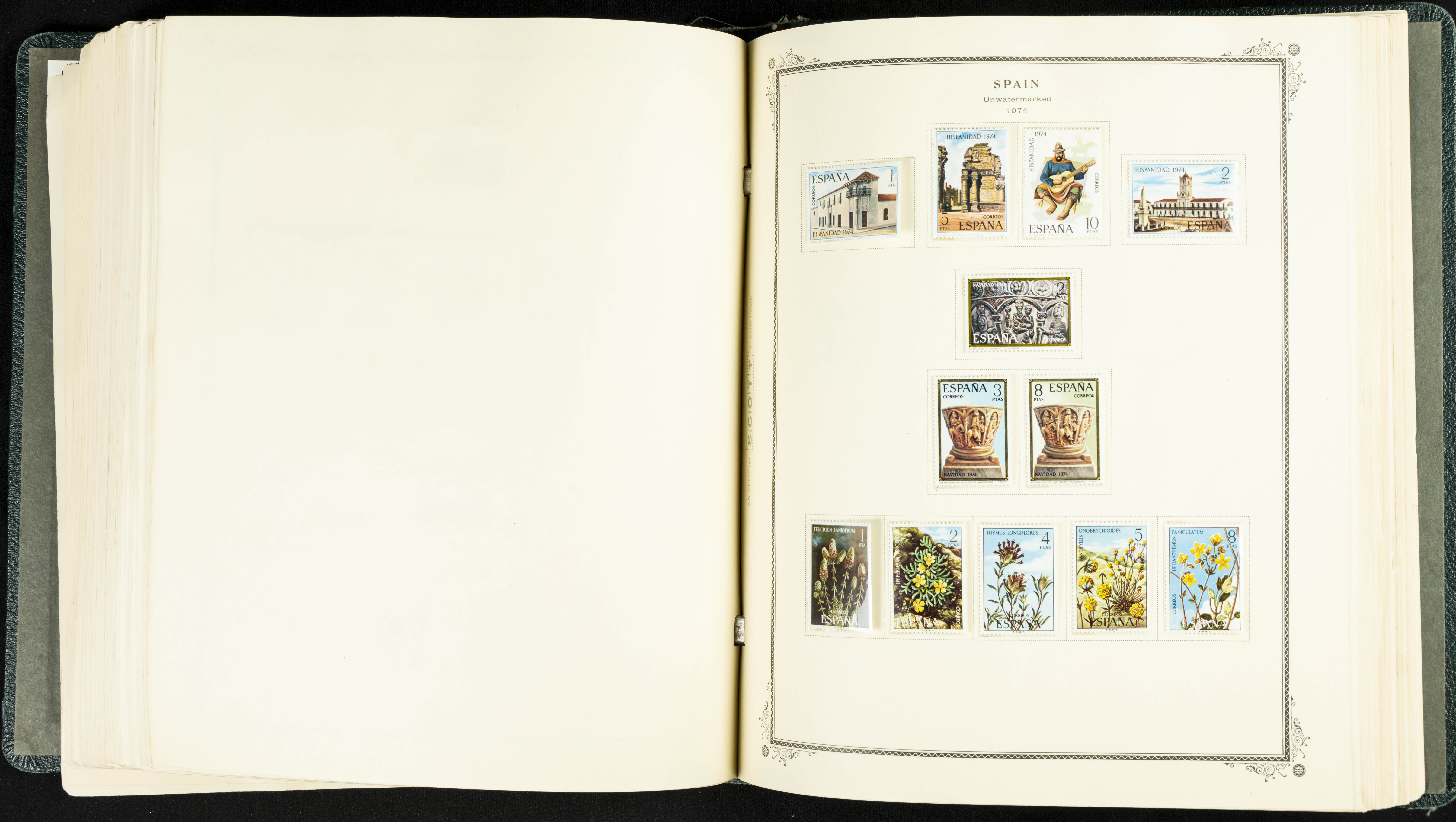 ★/(1850ca). A very interesting collection between 1850 and 1974, in mint and used coins. The classic part is very well represented, and most of the coins are used, including a complete series from 1850, 1851, 1852, and 1853, missing the 2 reales, 2 cuartos (green), and 1 real (blue) coins from 1854. Also included are most of the 19 cuartos, 4 pesetas from Amadeo and the First Republic, and most of the coins from 1876 to 1889. From 1901 onwards, everything is mint, including series such as Cadet, Quixote, Medallion, UPU, Red Cross (all of them), Railways, Montserrat (duplicate with A000000), Personalities, Militia, Granada, Franco (all of them), Pilar, "Falla and Zuloaga", Centenary, etc. It includes numerous varieties, imperforate, color changes, and some Patriotic Issues. EXTREMELY HIGH CATALOG VALUE. MUST BE EXAMINED.