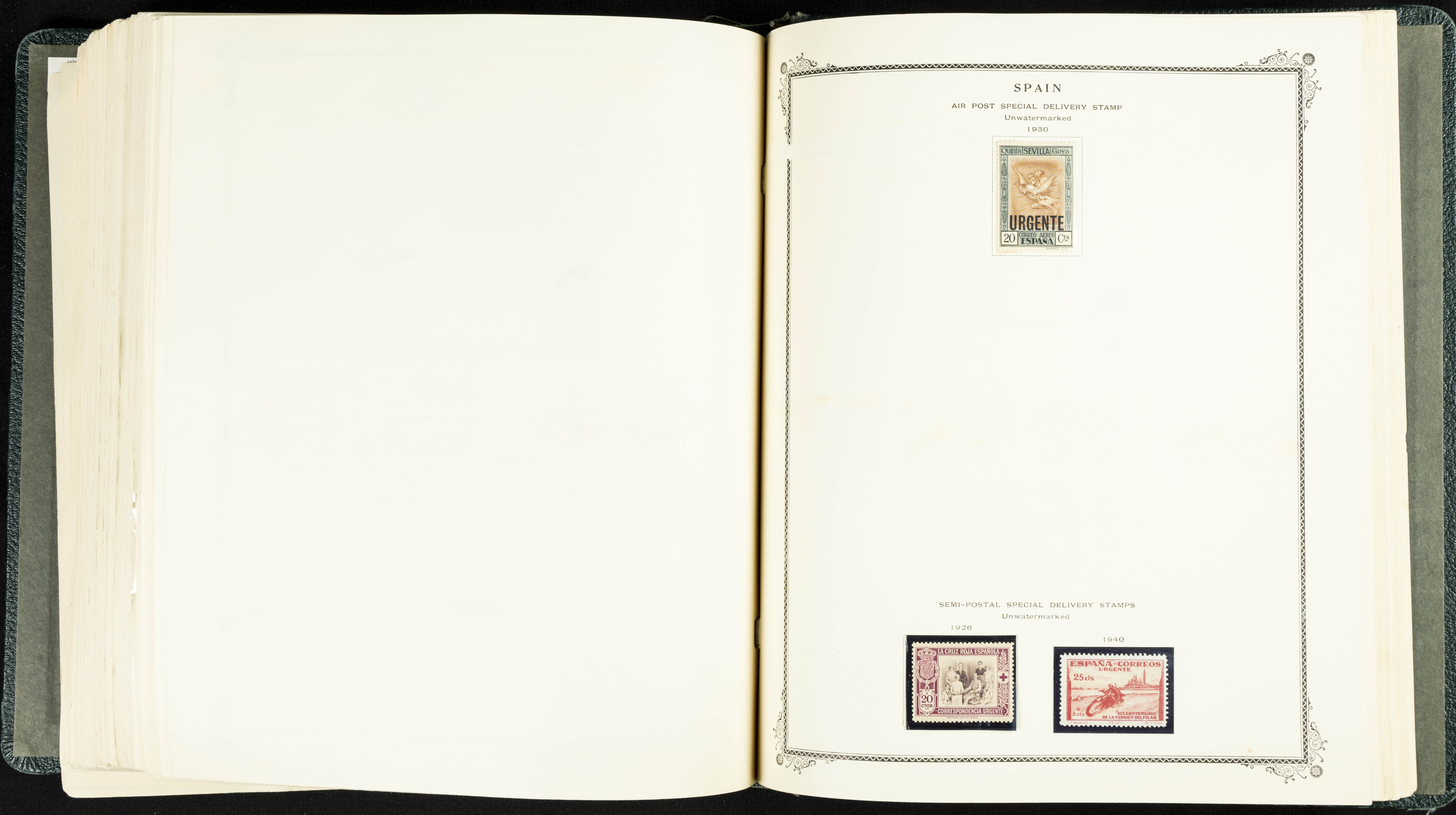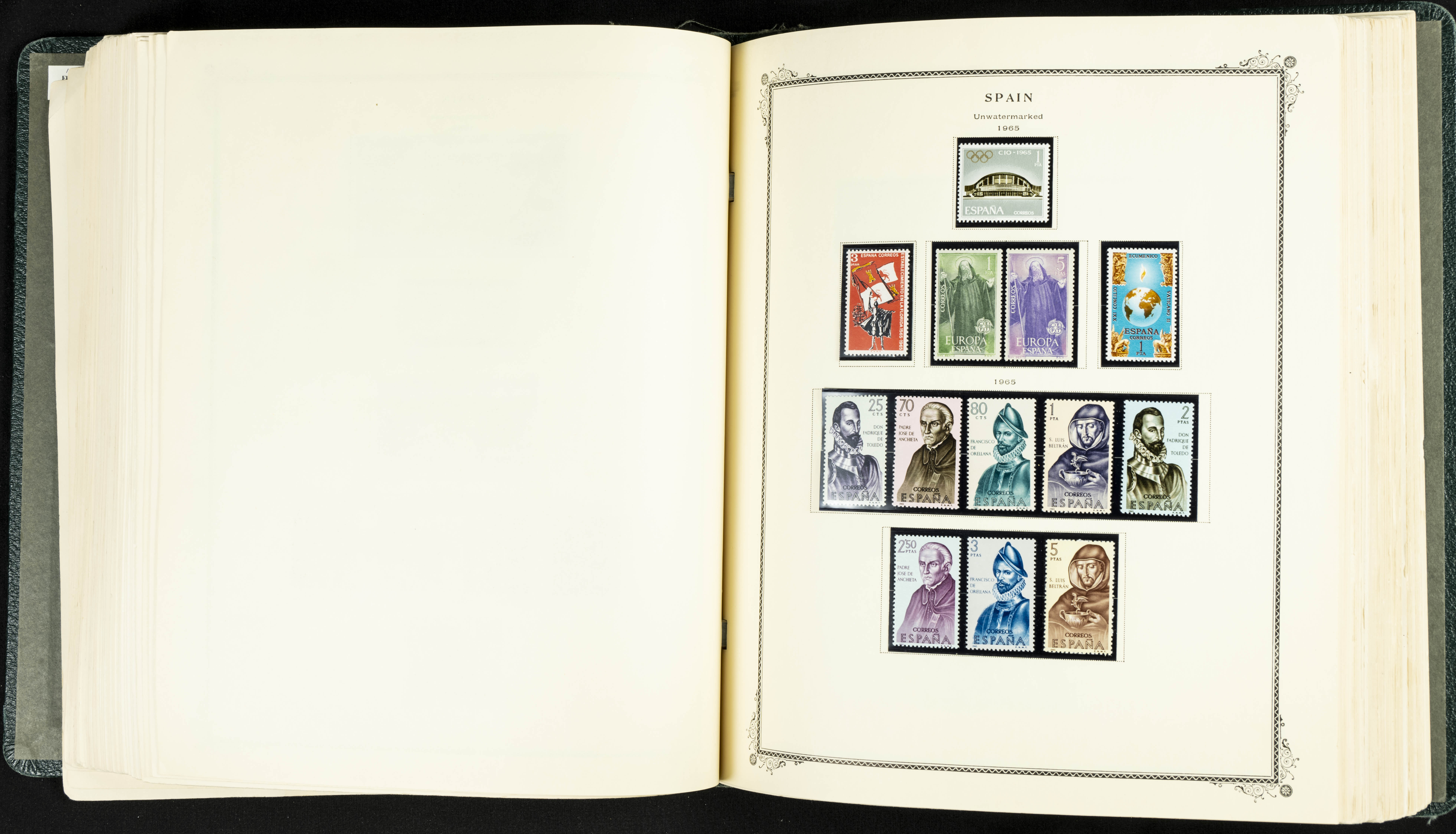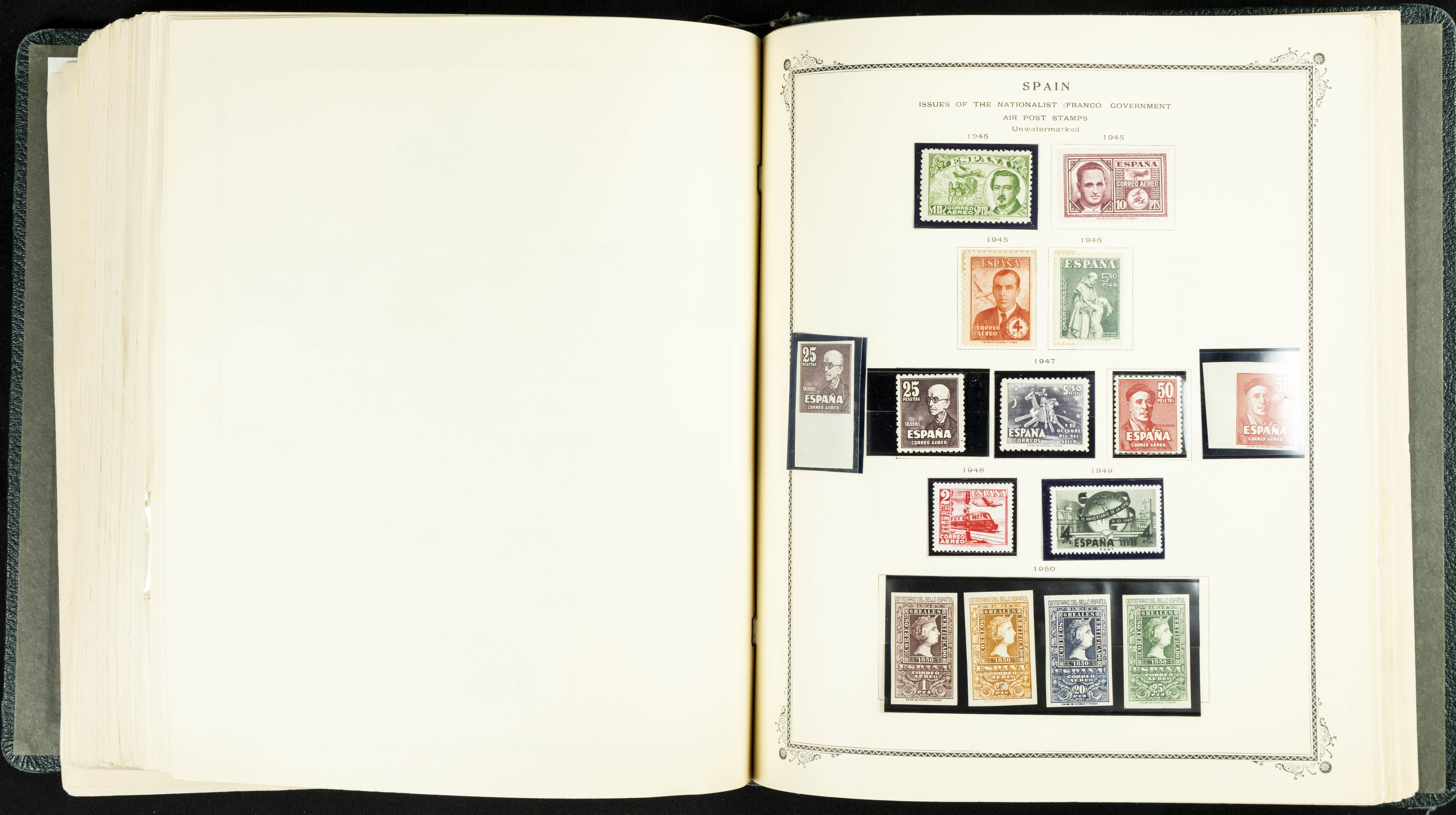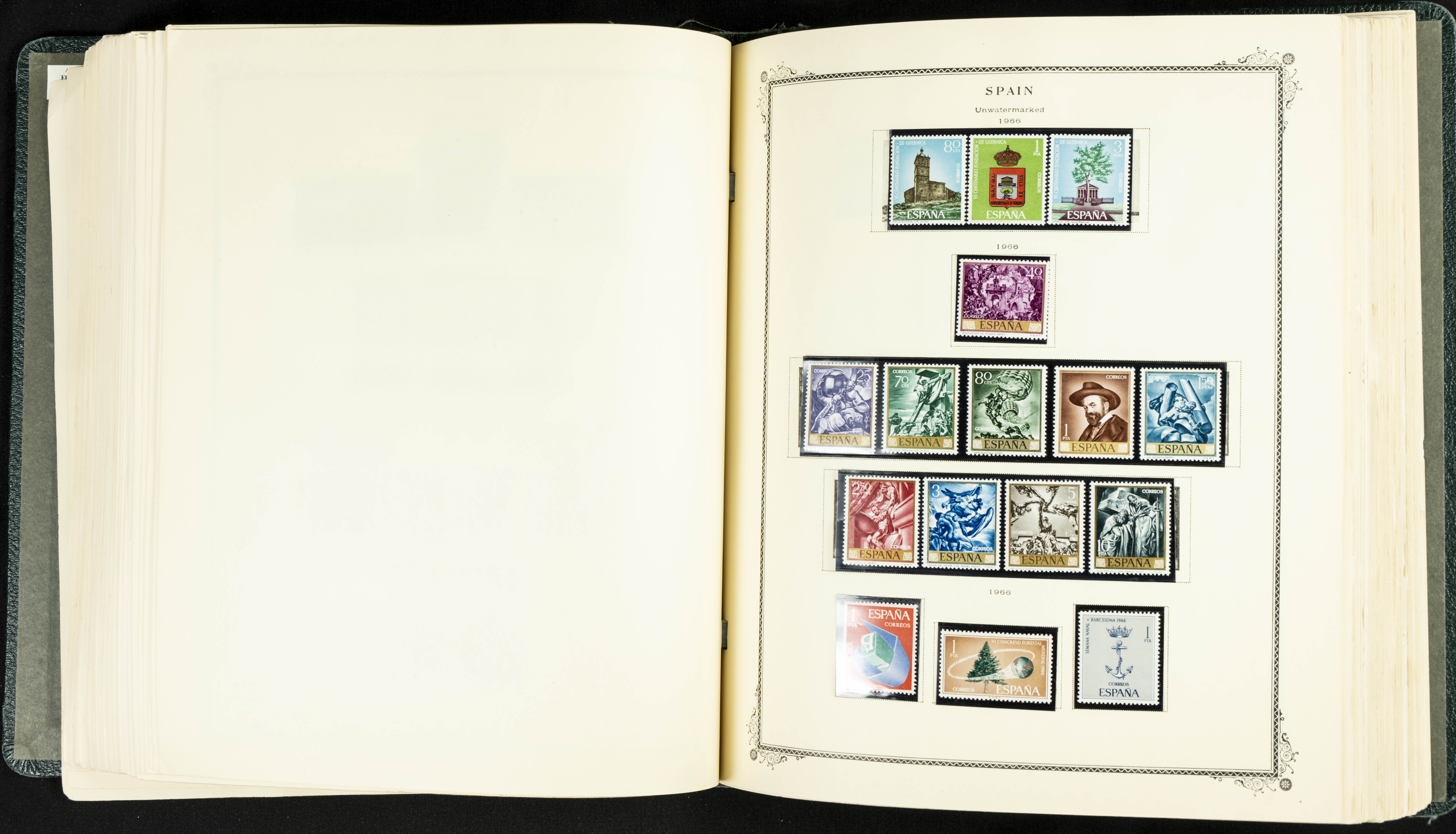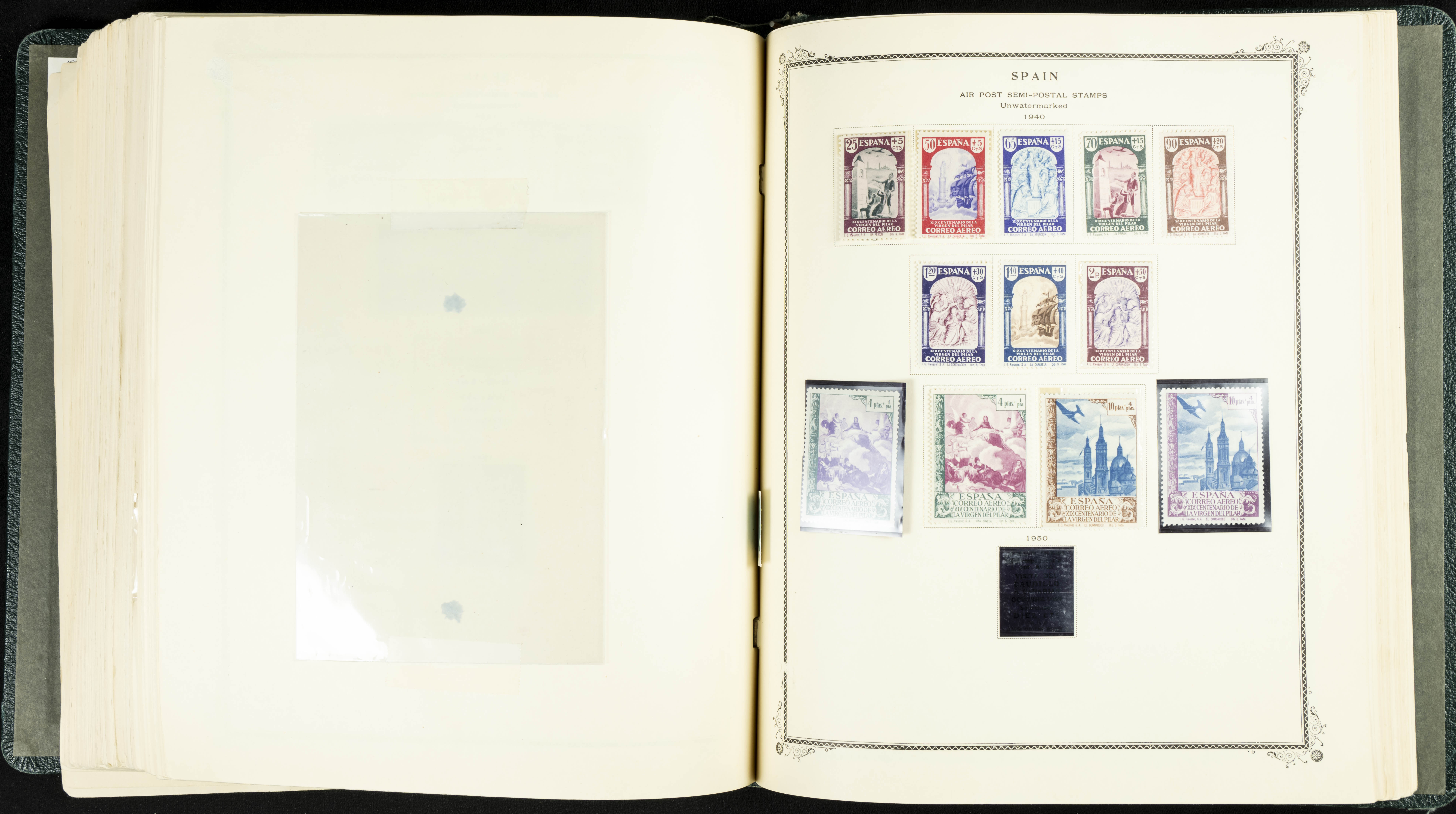 ★/(1850ca). A very interesting collection between 1850 and 1974, in mint and used coins. The classic part is very well represented, and most of the coins are used, including a complete series from 1850, 1851, 1852, and 1853, missing the 2 reales, 2 cuartos (green), and 1 real (blue) coins from 1854. Also included are most of the 19 cuartos, 4 pesetas from Amadeo and the First Republic, and most of the coins from 1876 to 1889. From 1901 onwards, everything is mint, including series such as Cadet, Quixote, Medallion, UPU, Red Cross (all of them), Railways, Montserrat (duplicate with A000000), Personalities, Militia, Granada, Franco (all of them), Pilar, "Falla and Zuloaga", Centenary, etc. It includes numerous varieties, imperforate, color changes, and some Patriotic Issues. EXTREMELY HIGH CATALOG VALUE. MUST BE EXAMINED.