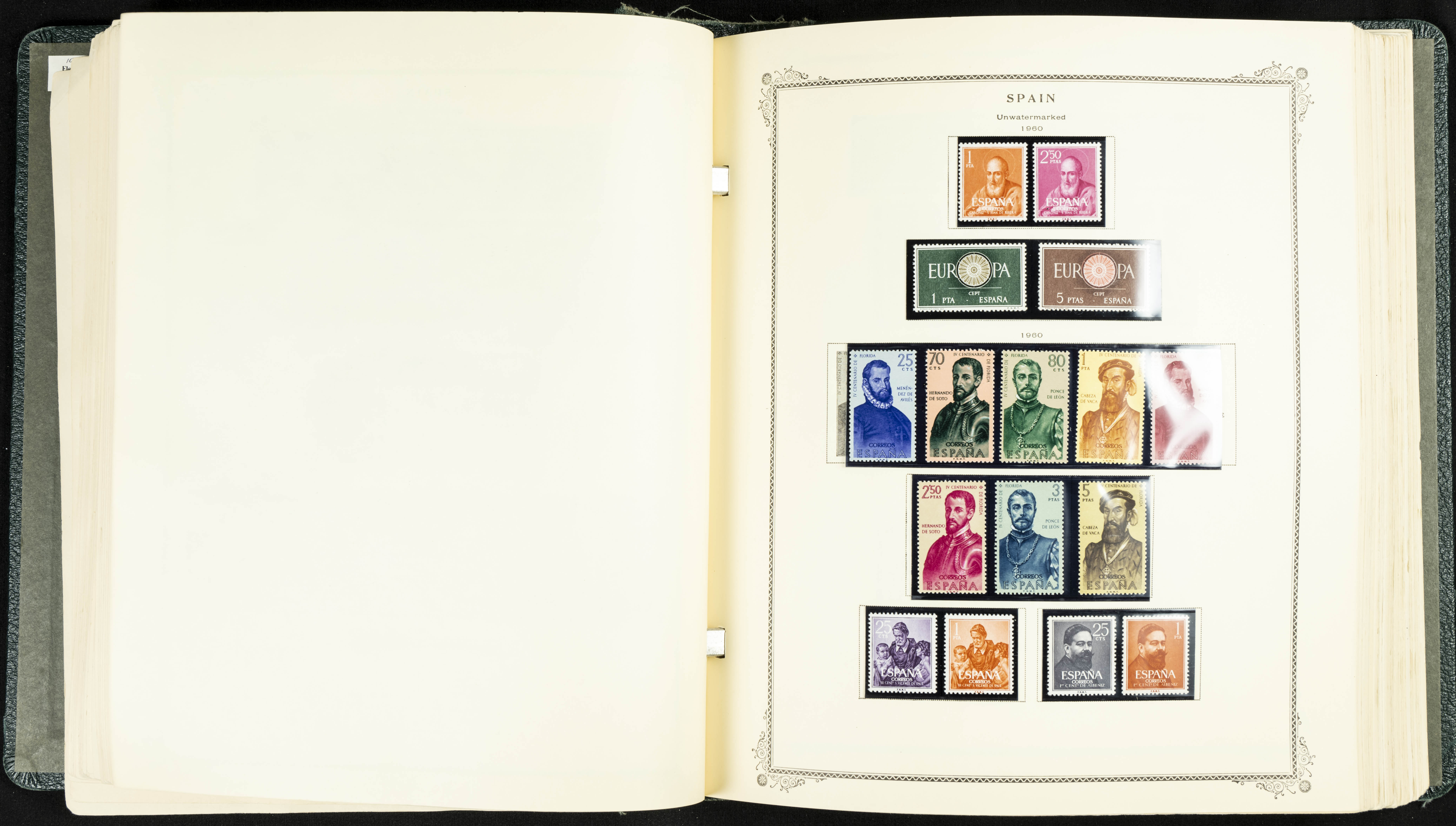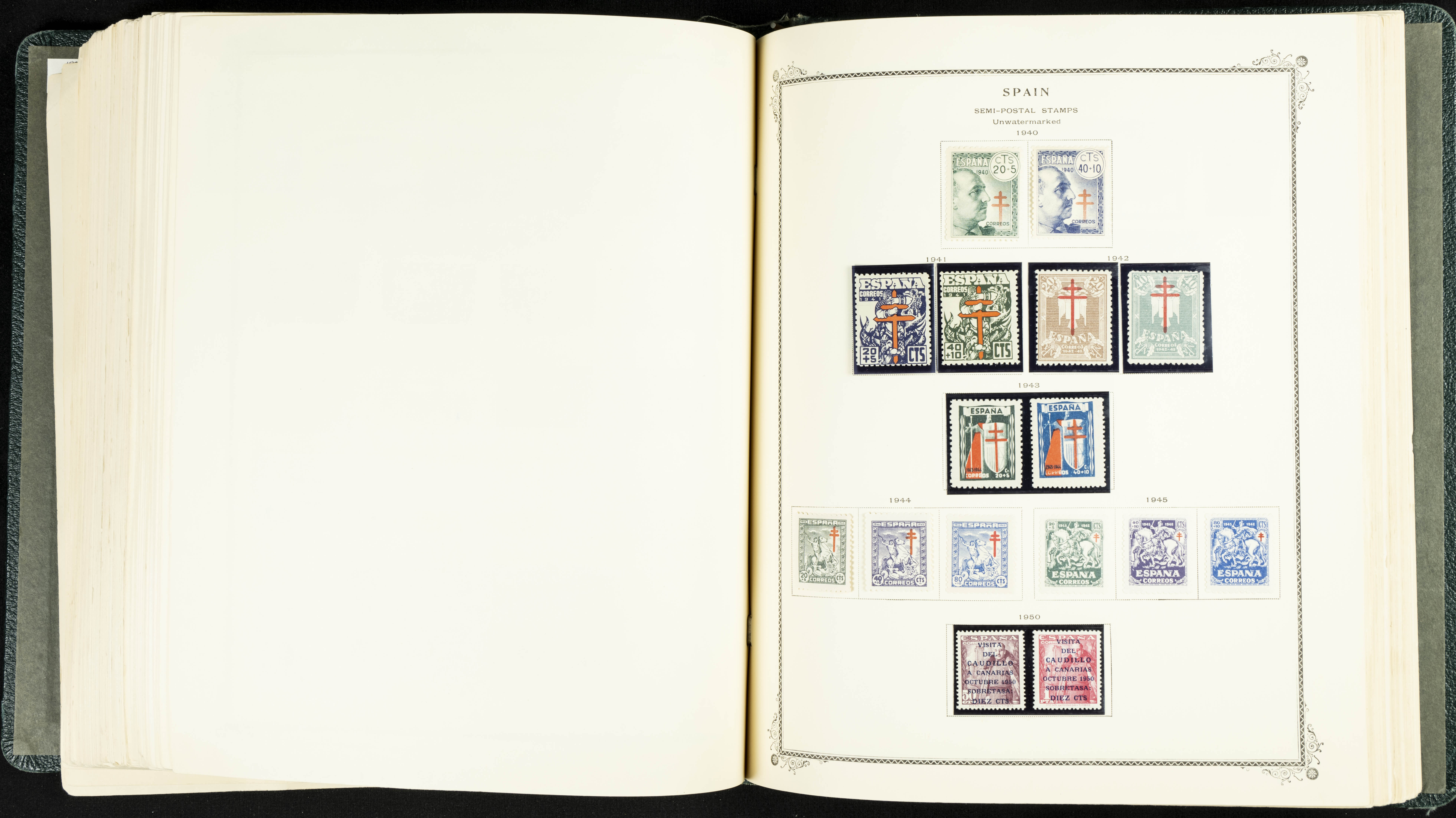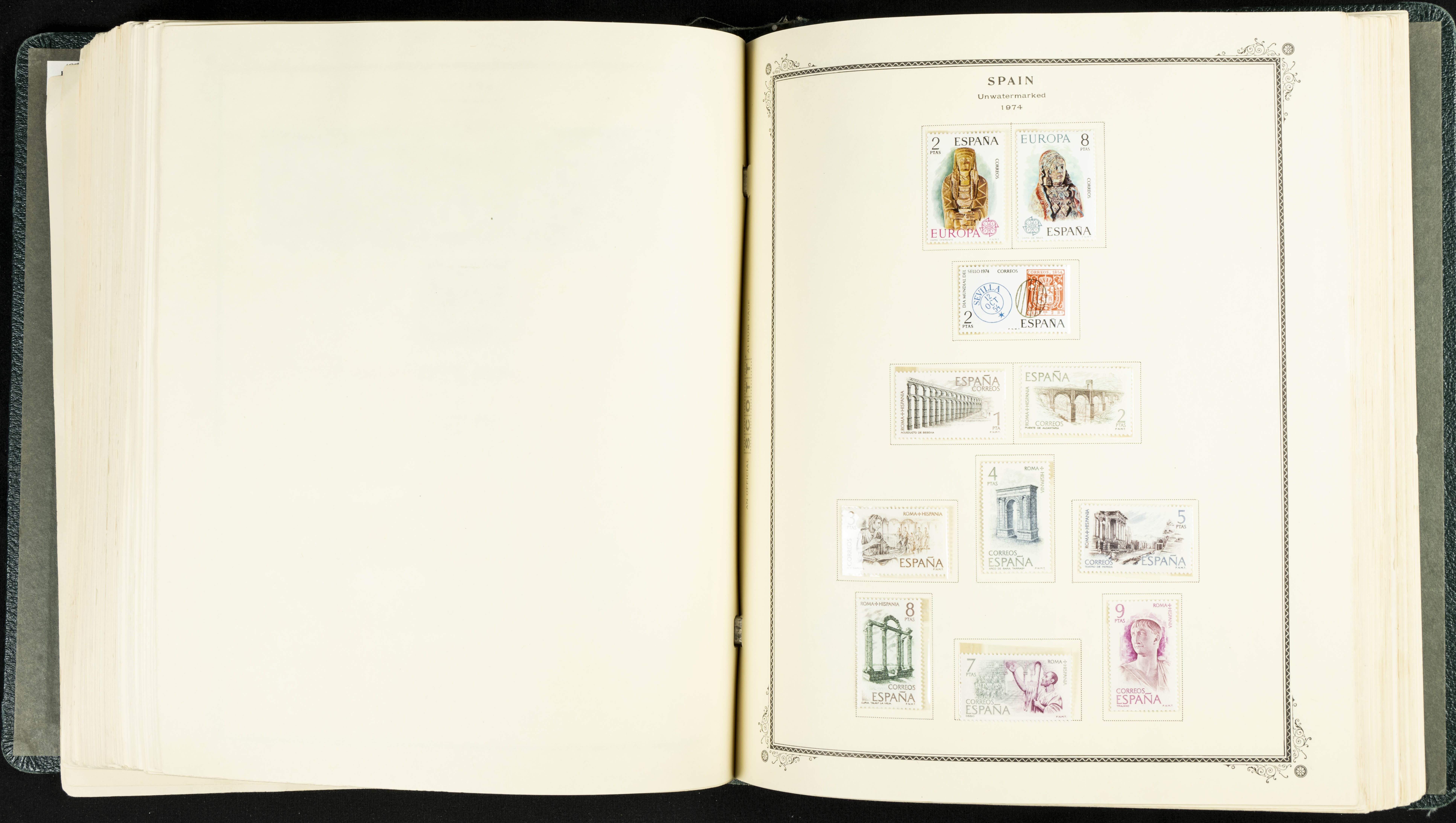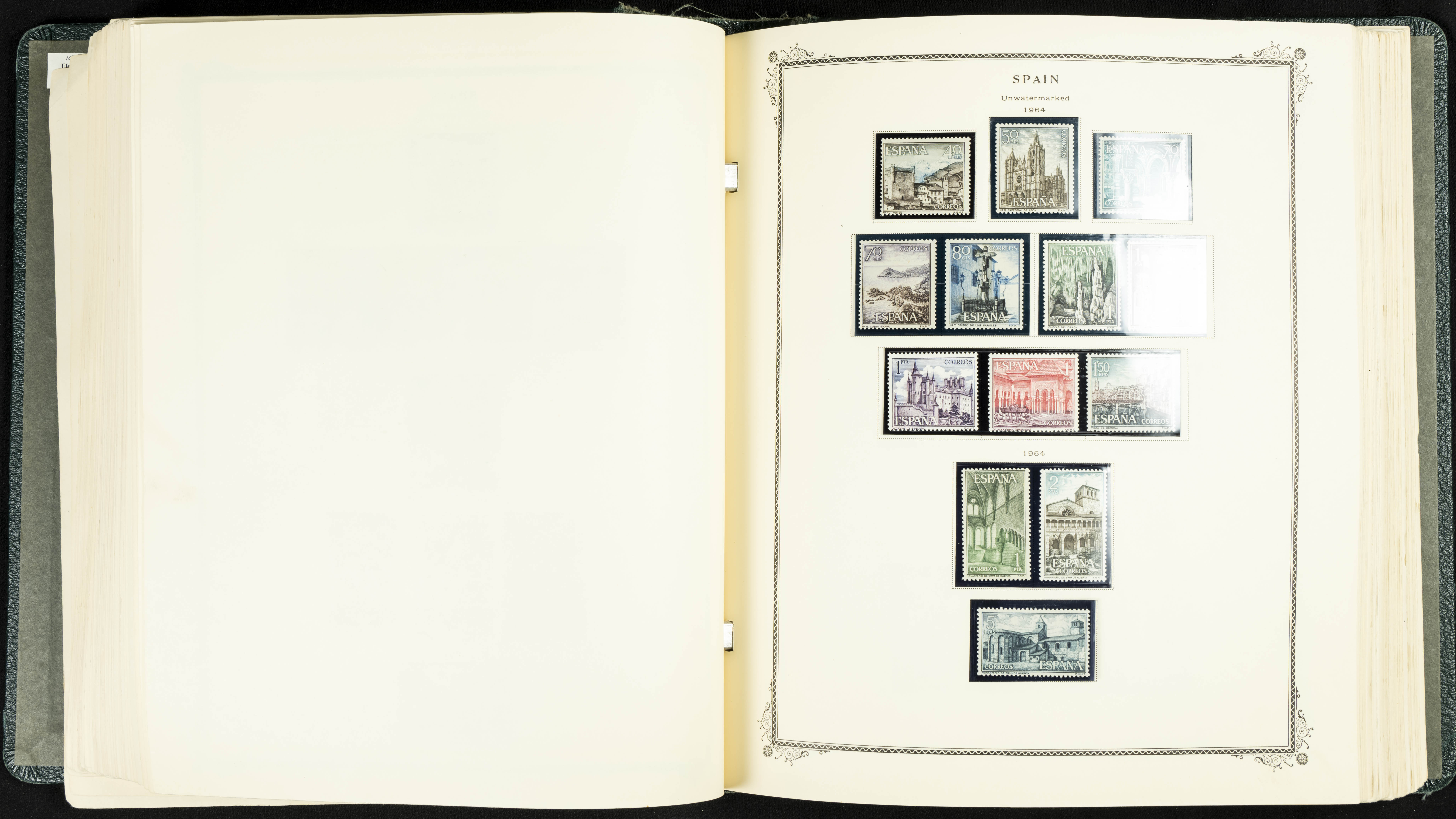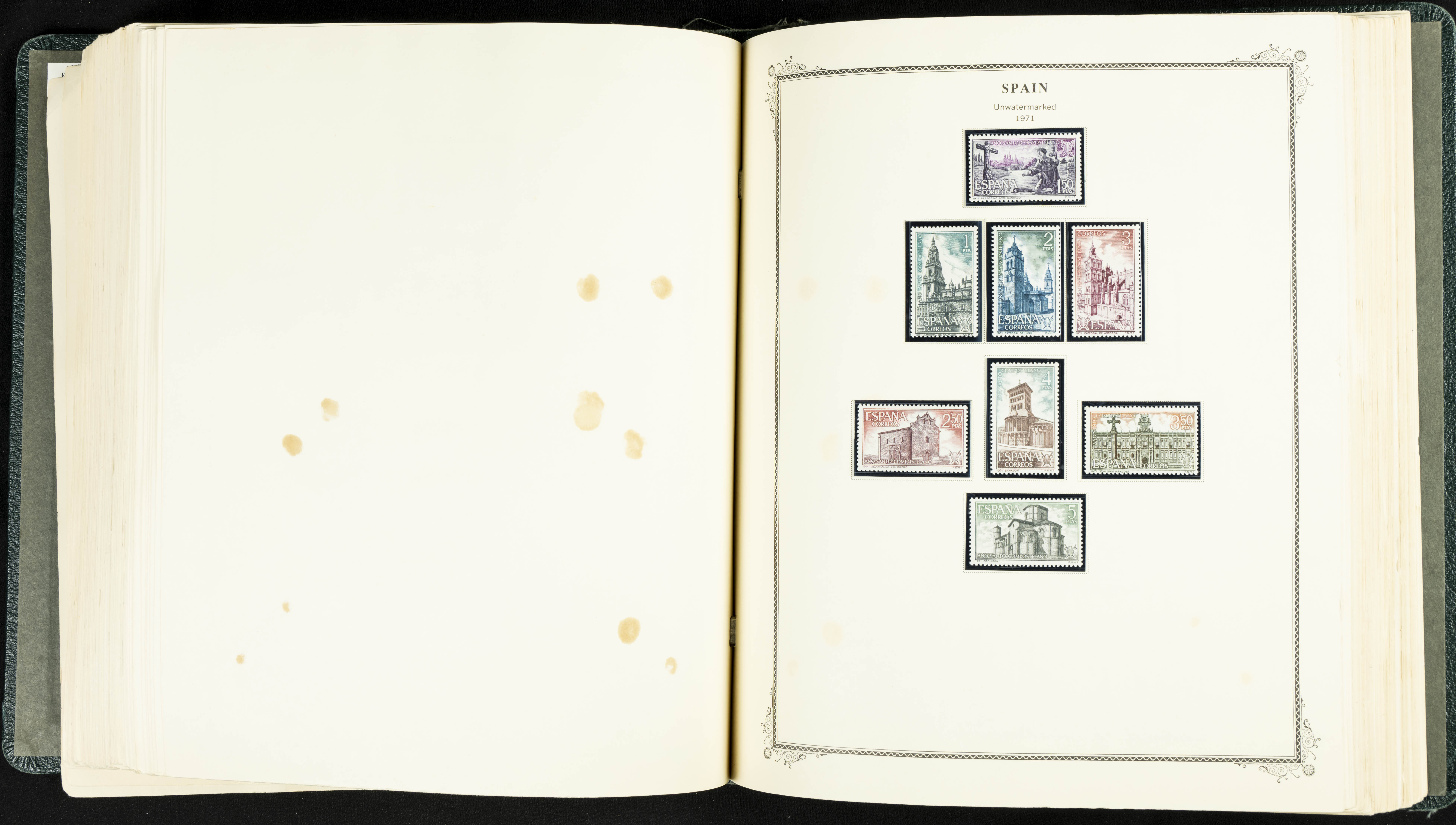 ★/(1850ca). A very interesting collection between 1850 and 1974, in mint and used coins. The classic part is very well represented, and most of the coins are used, including a complete series from 1850, 1851, 1852, and 1853, missing the 2 reales, 2 cuartos (green), and 1 real (blue) coins from 1854. Also included are most of the 19 cuartos, 4 pesetas from Amadeo and the First Republic, and most of the coins from 1876 to 1889. From 1901 onwards, everything is mint, including series such as Cadet, Quixote, Medallion, UPU, Red Cross (all of them), Railways, Montserrat (duplicate with A000000), Personalities, Militia, Granada, Franco (all of them), Pilar, "Falla and Zuloaga", Centenary, etc. It includes numerous varieties, imperforate, color changes, and some Patriotic Issues. EXTREMELY HIGH CATALOG VALUE. MUST BE EXAMINED.