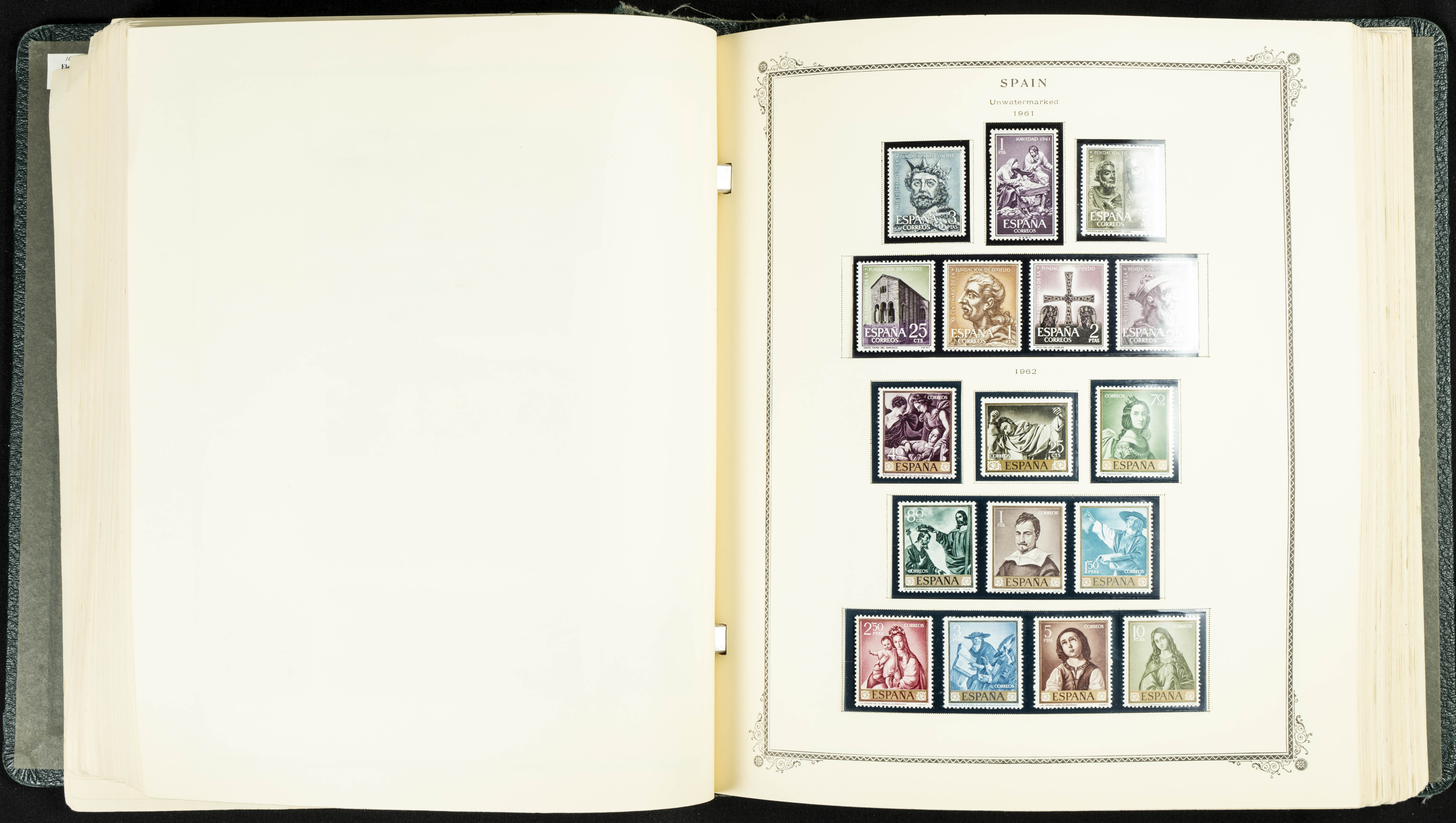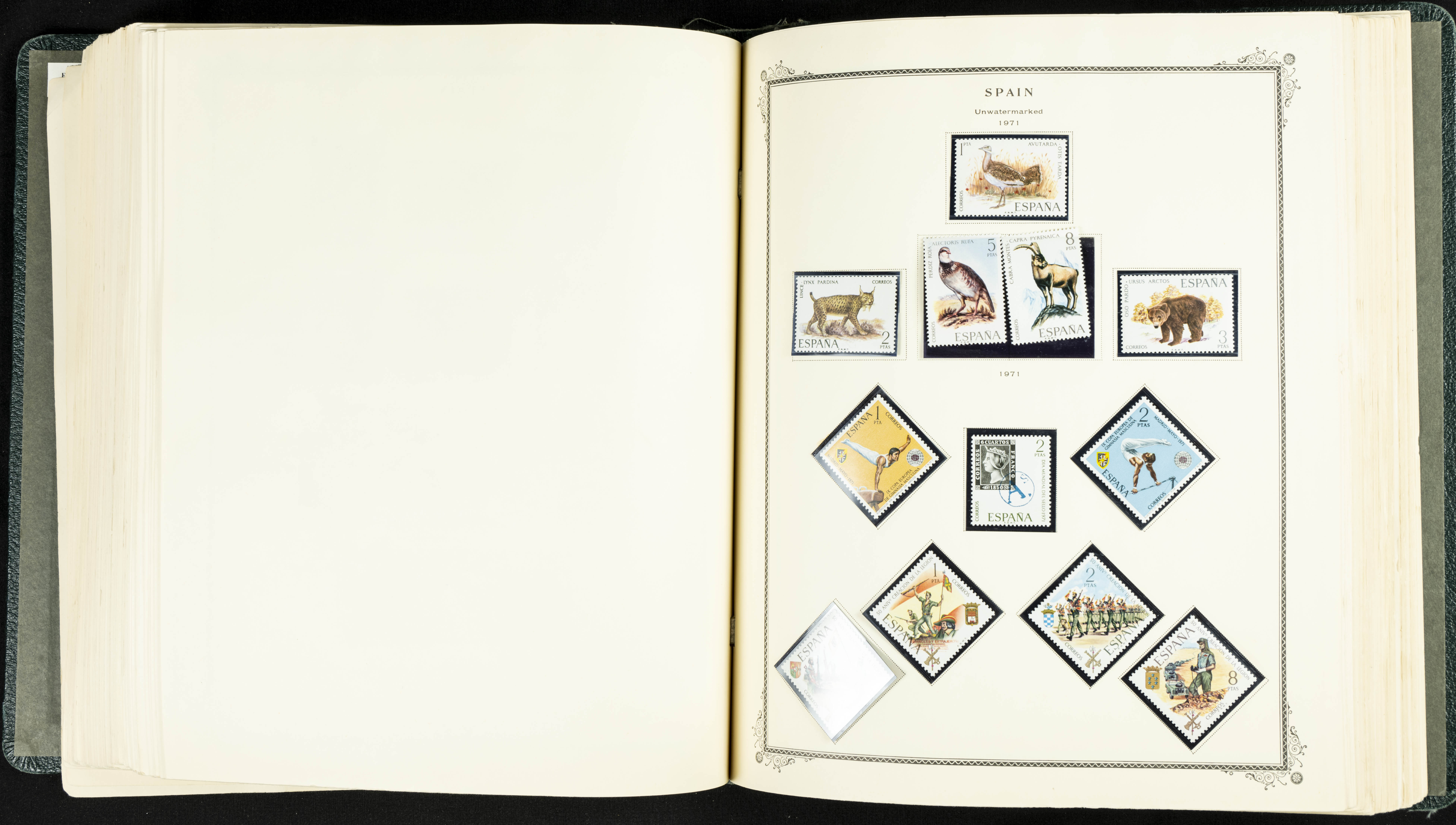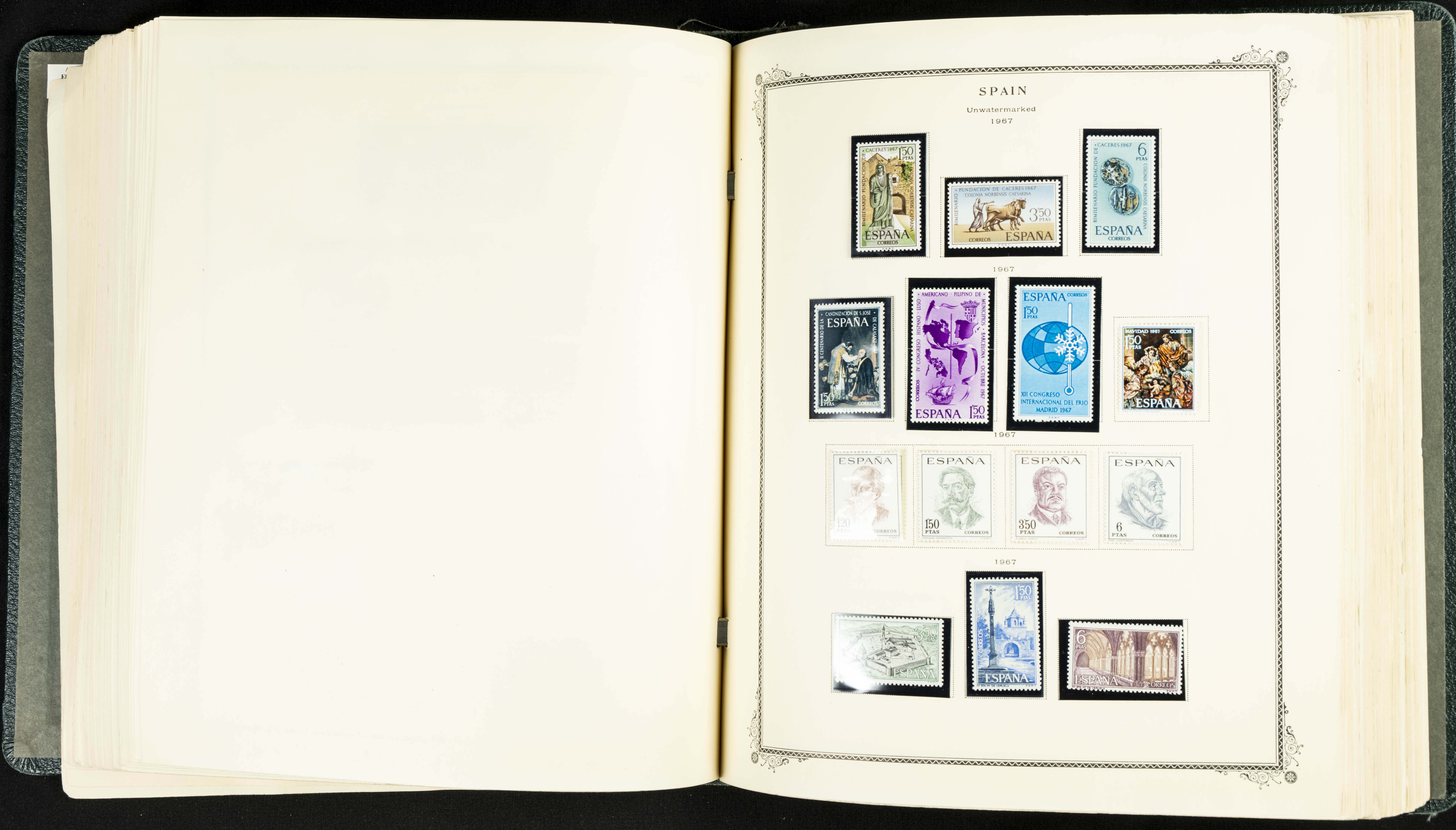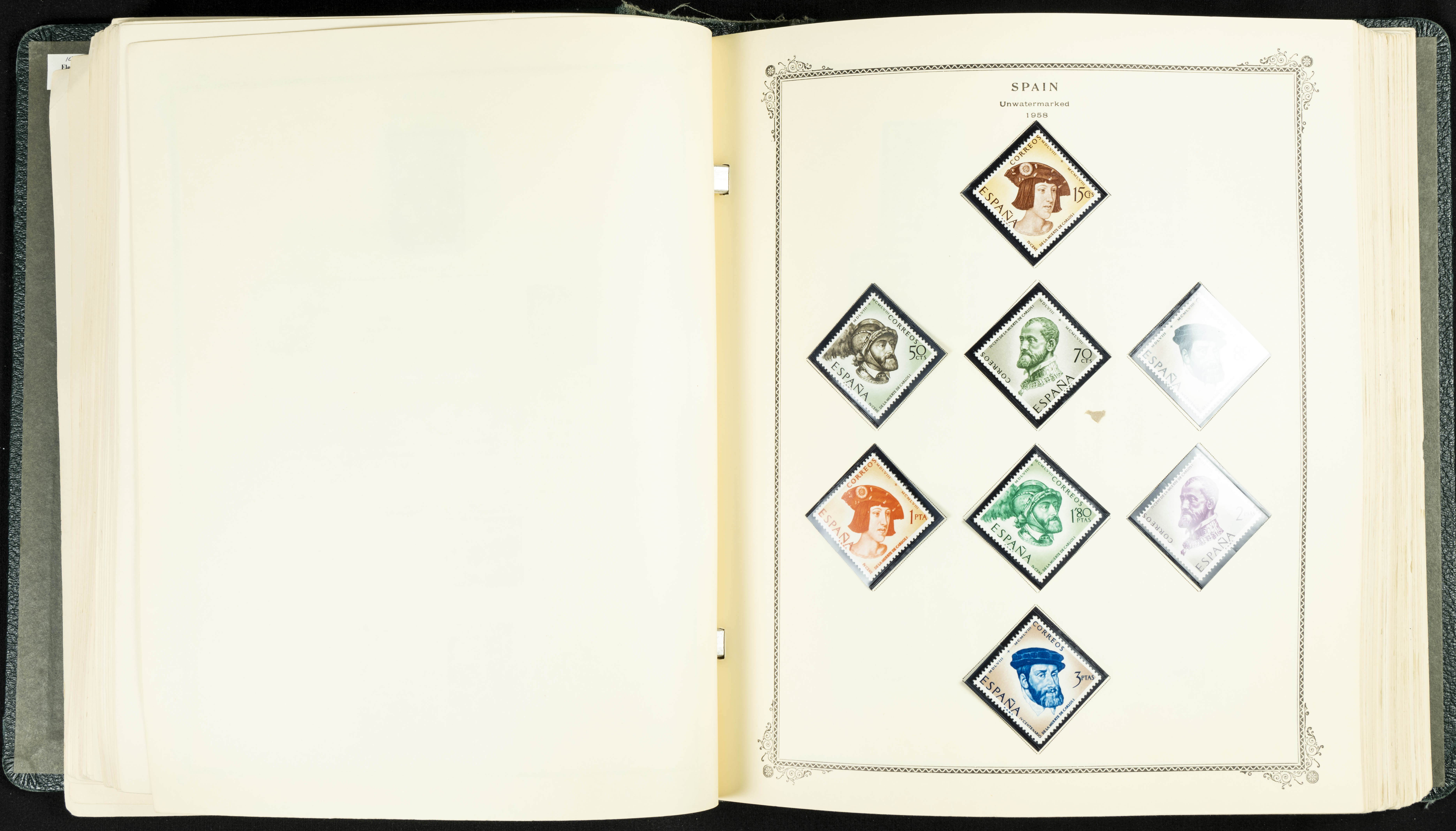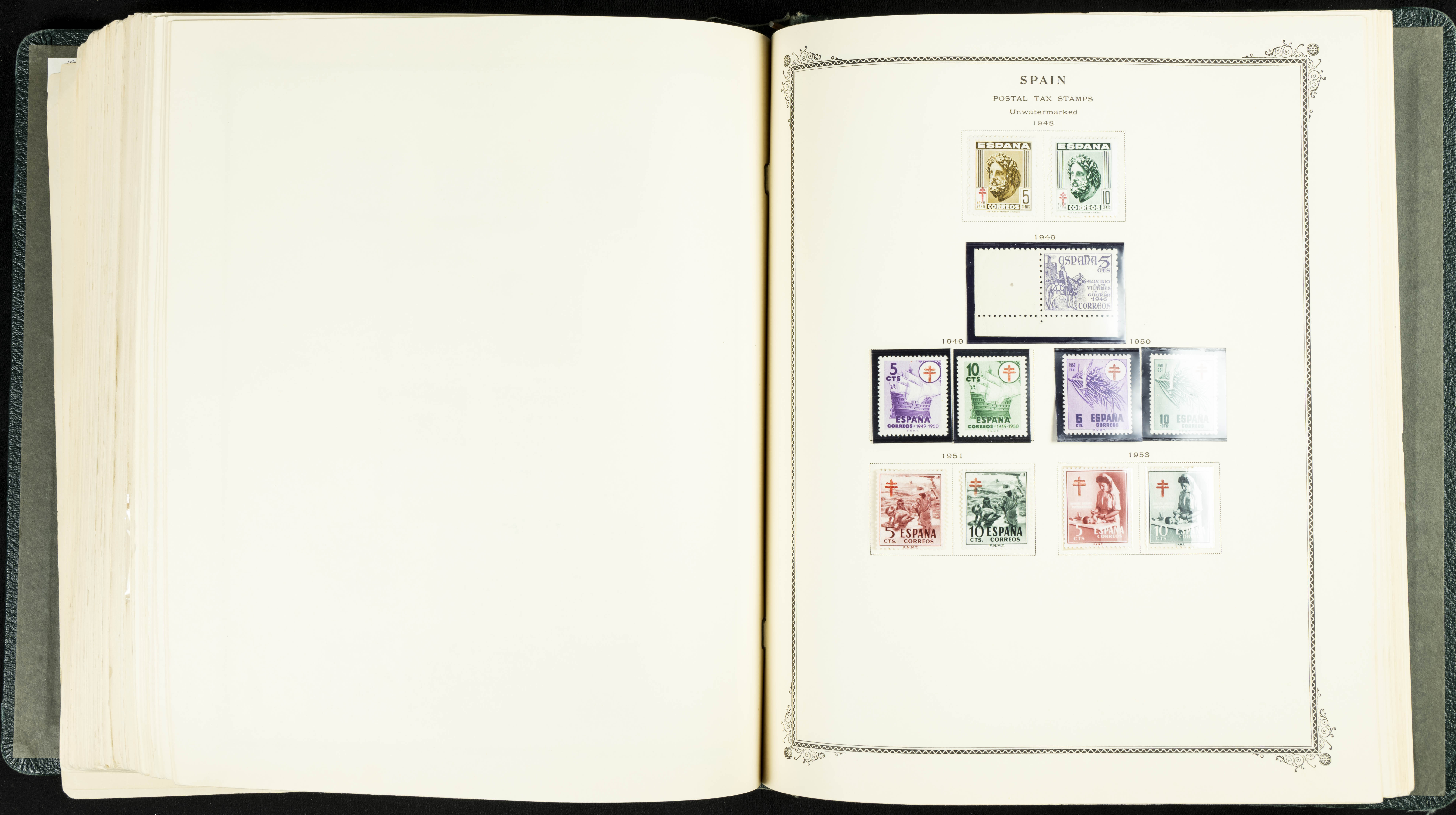 ★/(1850ca). A very interesting collection between 1850 and 1974, in mint and used coins. The classic part is very well represented, and most of the coins are used, including a complete series from 1850, 1851, 1852, and 1853, missing the 2 reales, 2 cuartos (green), and 1 real (blue) coins from 1854. Also included are most of the 19 cuartos, 4 pesetas from Amadeo and the First Republic, and most of the coins from 1876 to 1889. From 1901 onwards, everything is mint, including series such as Cadet, Quixote, Medallion, UPU, Red Cross (all of them), Railways, Montserrat (duplicate with A000000), Personalities, Militia, Granada, Franco (all of them), Pilar, "Falla and Zuloaga", Centenary, etc. It includes numerous varieties, imperforate, color changes, and some Patriotic Issues. EXTREMELY HIGH CATALOG VALUE. MUST BE EXAMINED.