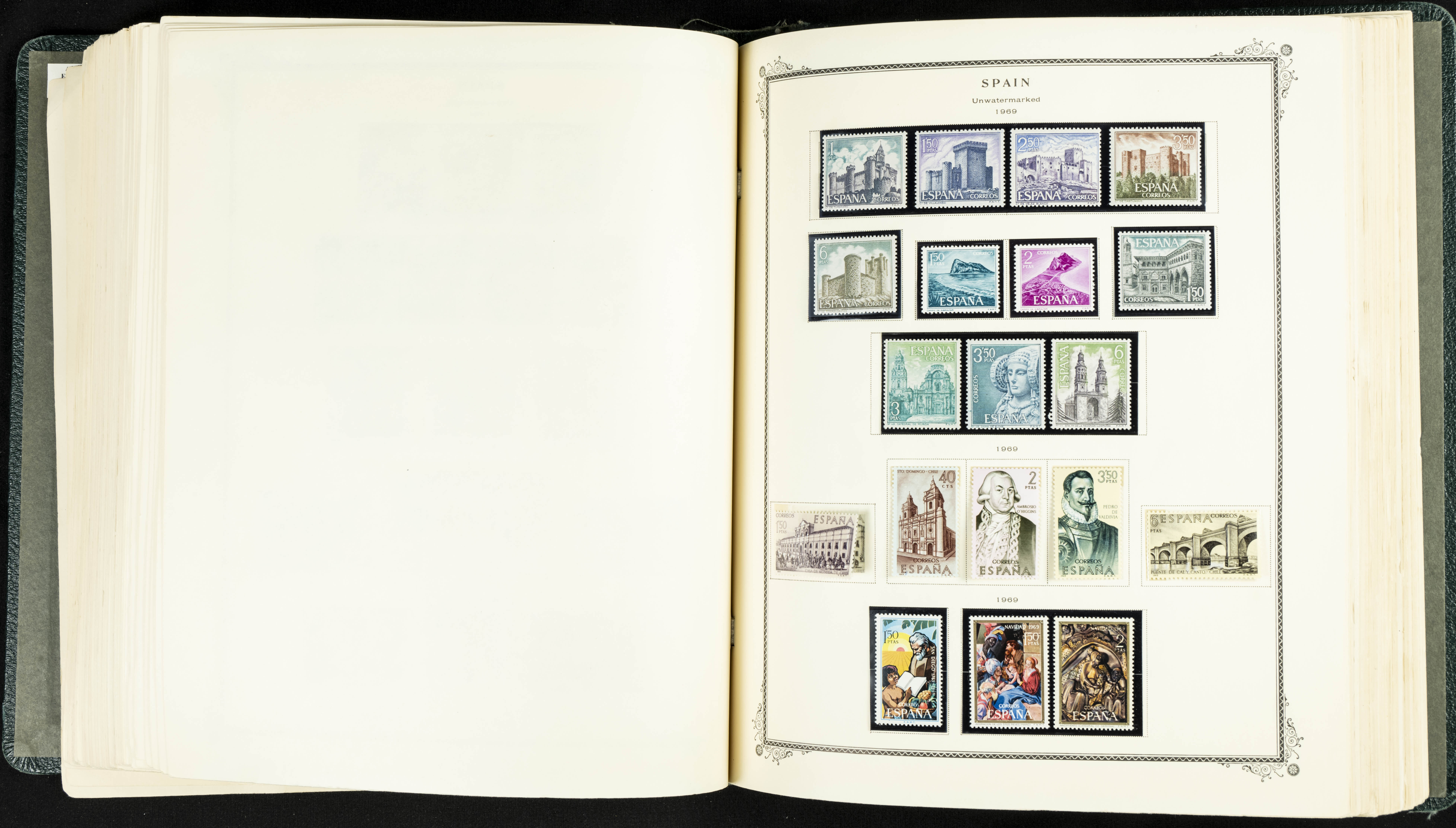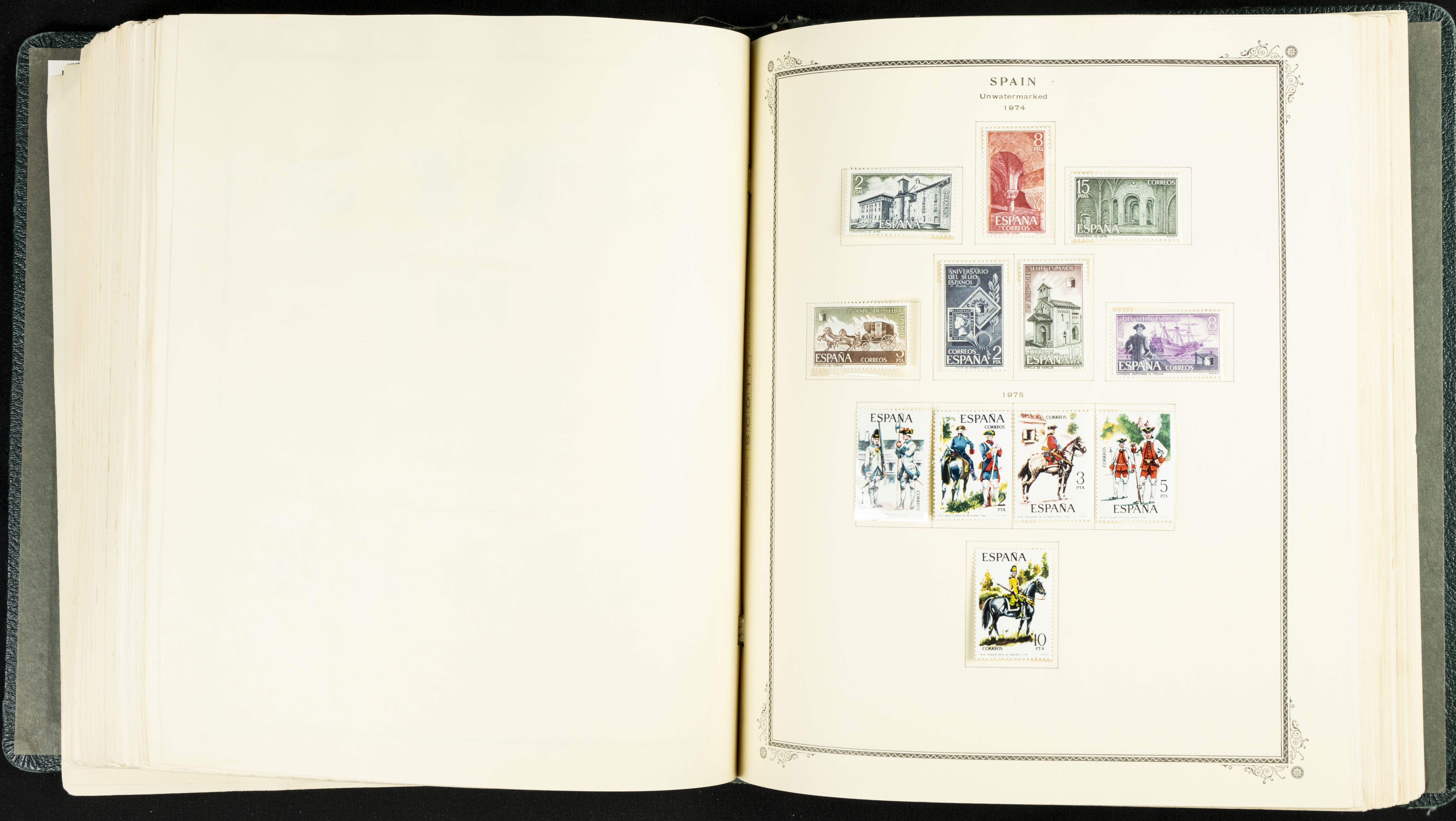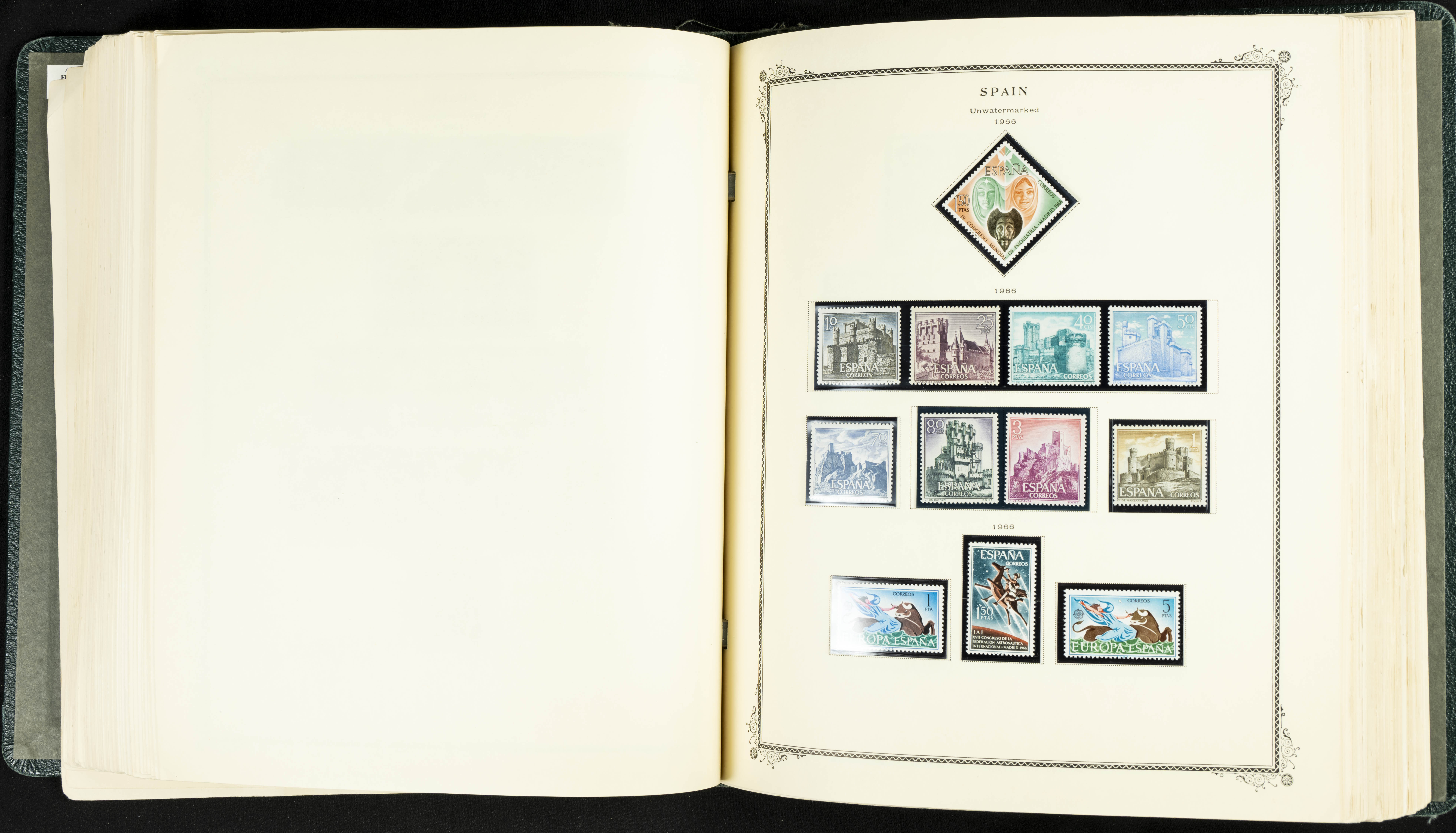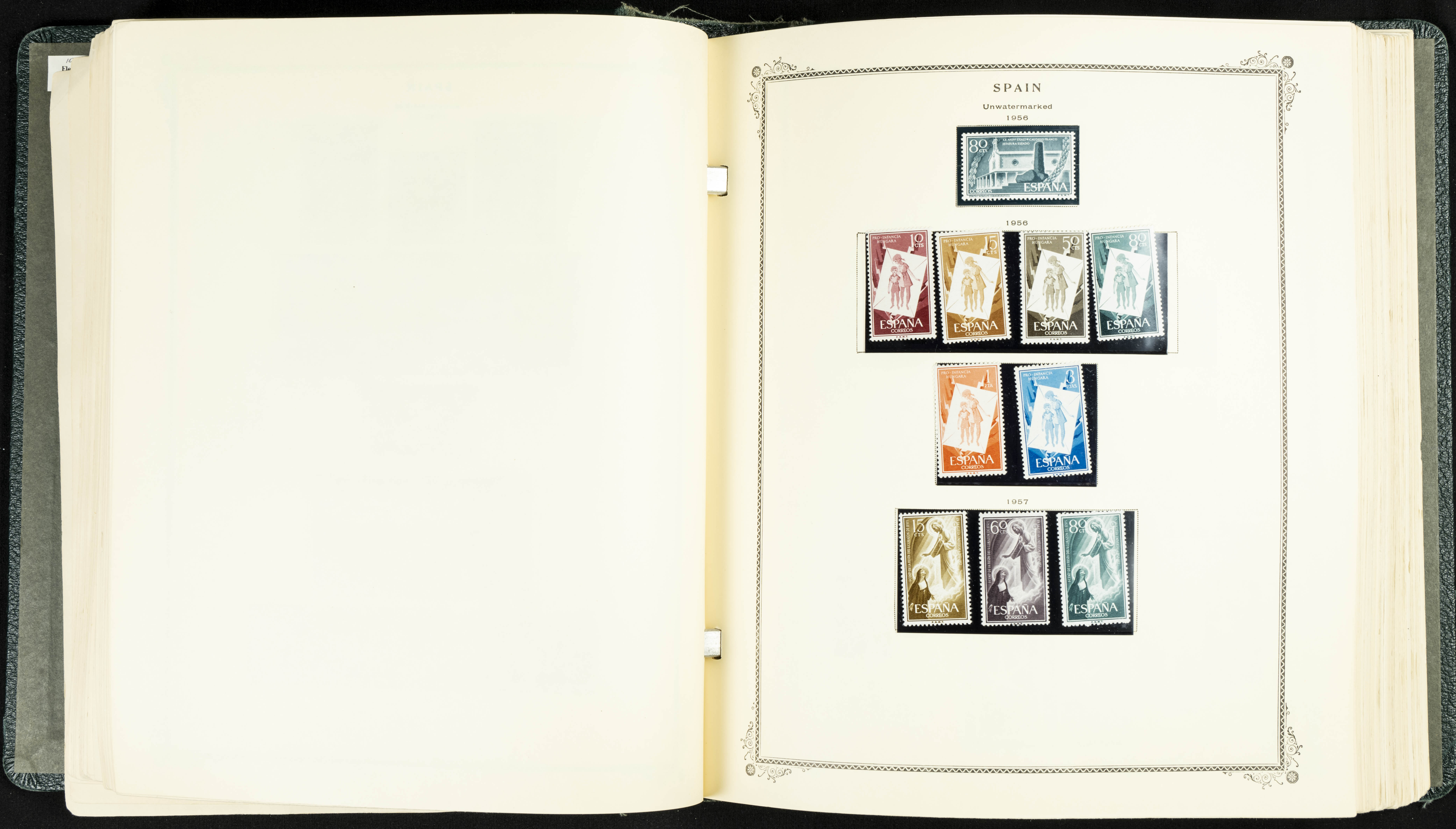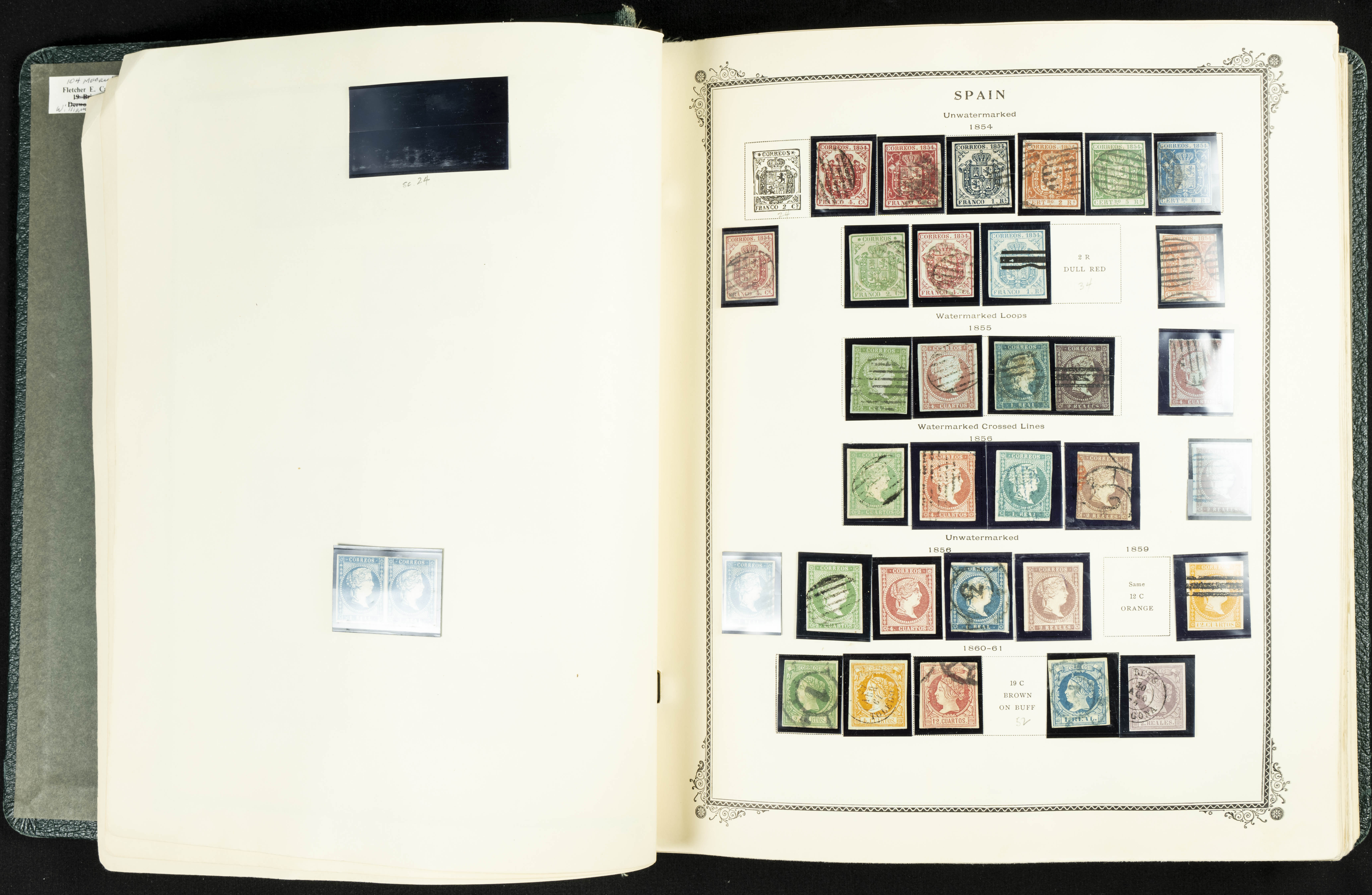 ★/(1850ca). A very interesting collection between 1850 and 1974, in mint and used coins. The classic part is very well represented, and most of the coins are used, including a complete series from 1850, 1851, 1852, and 1853, missing the 2 reales, 2 cuartos (green), and 1 real (blue) coins from 1854. Also included are most of the 19 cuartos, 4 pesetas from Amadeo and the First Republic, and most of the coins from 1876 to 1889. From 1901 onwards, everything is mint, including series such as Cadet, Quixote, Medallion, UPU, Red Cross (all of them), Railways, Montserrat (duplicate with A000000), Personalities, Militia, Granada, Franco (all of them), Pilar, "Falla and Zuloaga", Centenary, etc. It includes numerous varieties, imperforate, color changes, and some Patriotic Issues. EXTREMELY HIGH CATALOG VALUE. MUST BE EXAMINED.