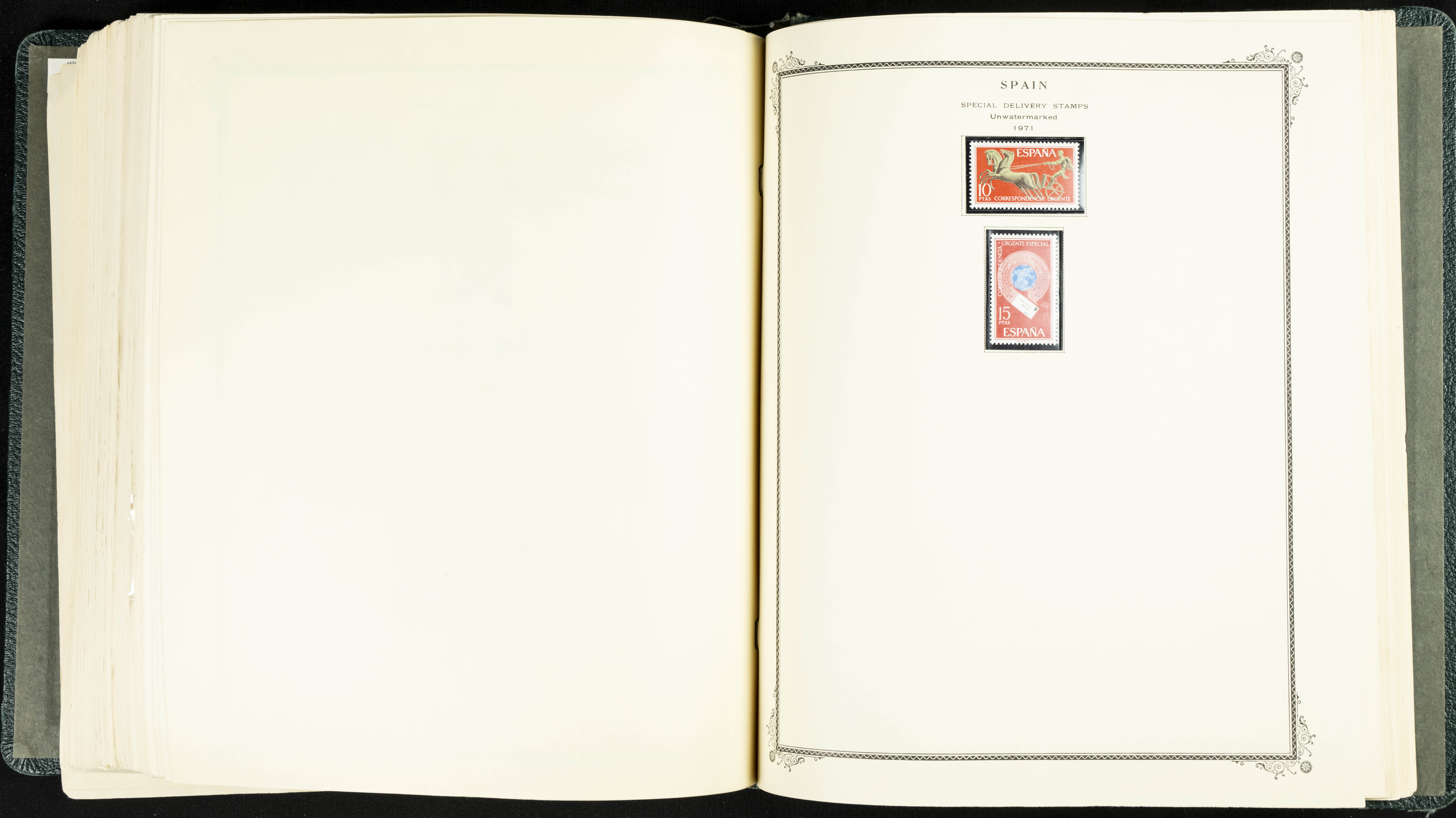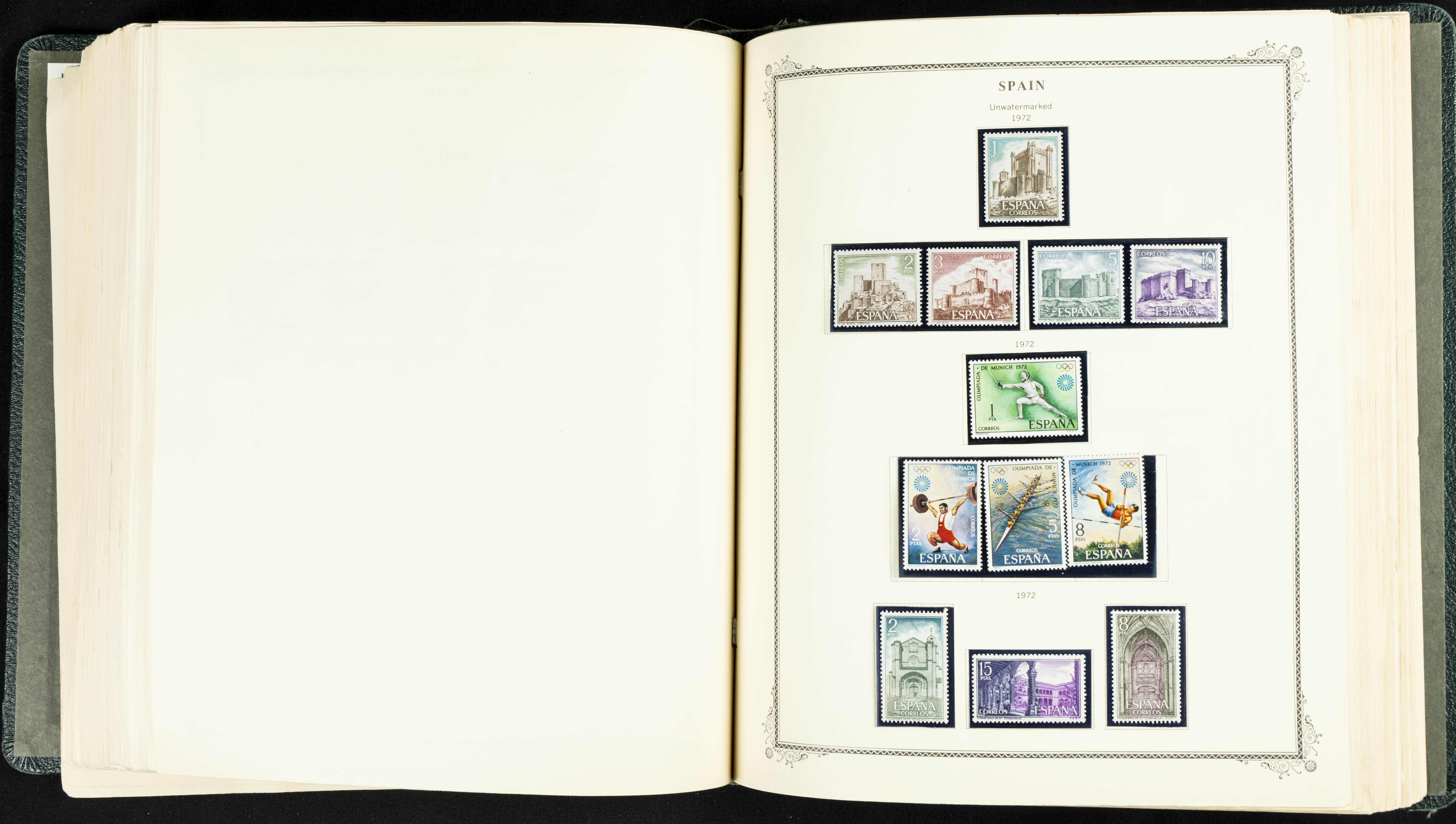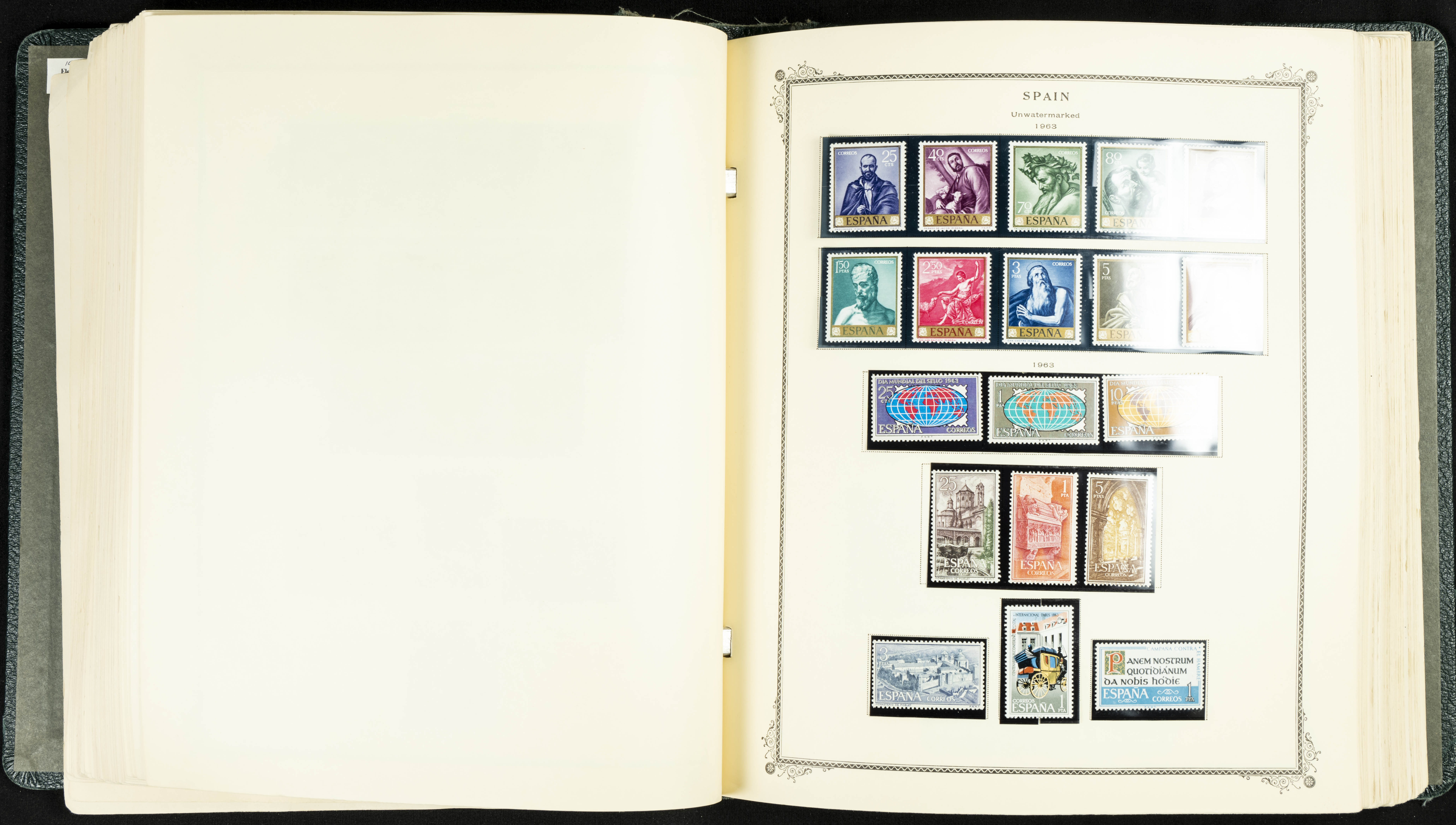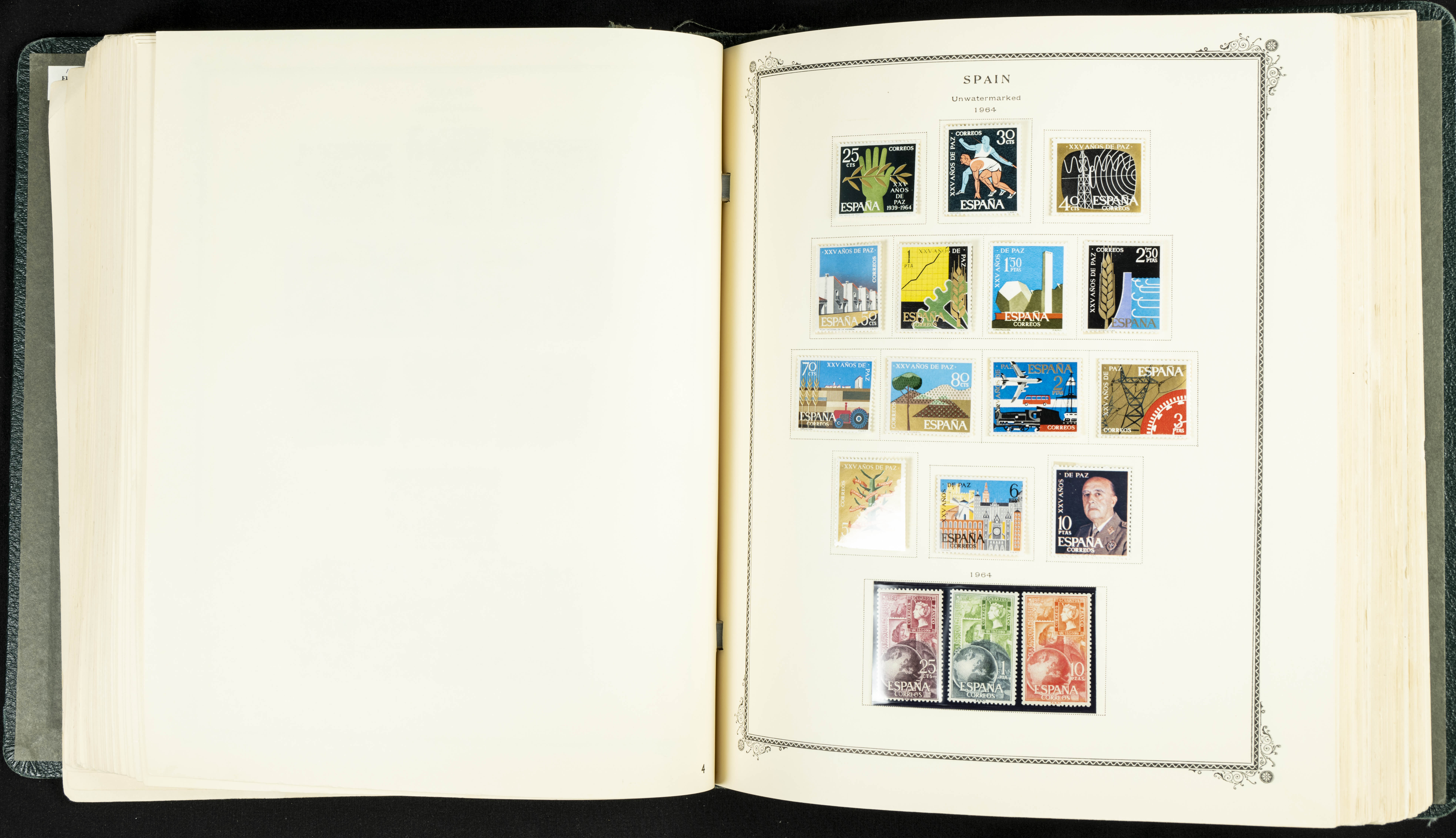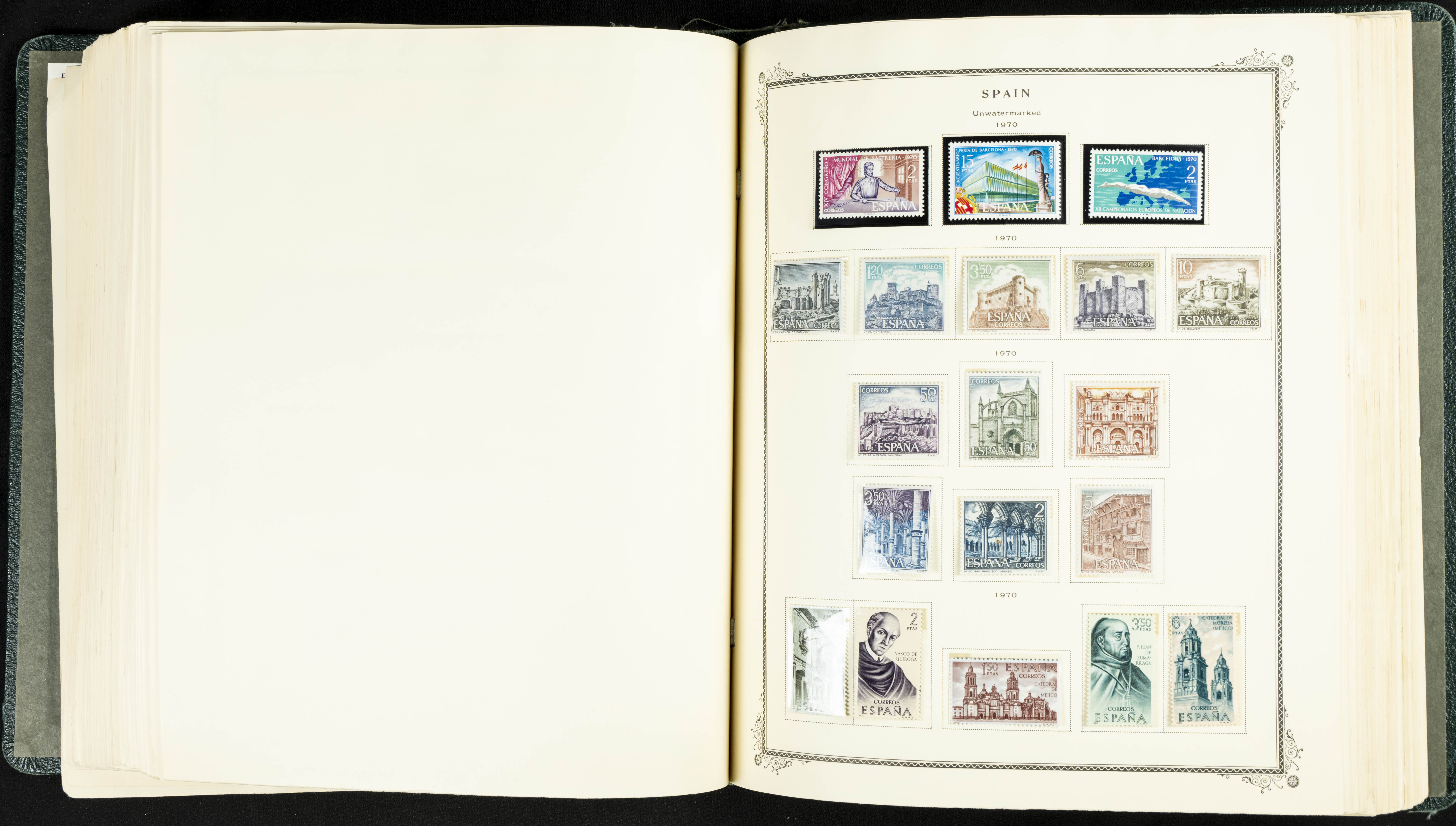 ★/(1850ca). A very interesting collection between 1850 and 1974, in mint and used coins. The classic part is very well represented, and most of the coins are used, including a complete series from 1850, 1851, 1852, and 1853, missing the 2 reales, 2 cuartos (green), and 1 real (blue) coins from 1854. Also included are most of the 19 cuartos, 4 pesetas from Amadeo and the First Republic, and most of the coins from 1876 to 1889. From 1901 onwards, everything is mint, including series such as Cadet, Quixote, Medallion, UPU, Red Cross (all of them), Railways, Montserrat (duplicate with A000000), Personalities, Militia, Granada, Franco (all of them), Pilar, "Falla and Zuloaga", Centenary, etc. It includes numerous varieties, imperforate, color changes, and some Patriotic Issues. EXTREMELY HIGH CATALOG VALUE. MUST BE EXAMINED.