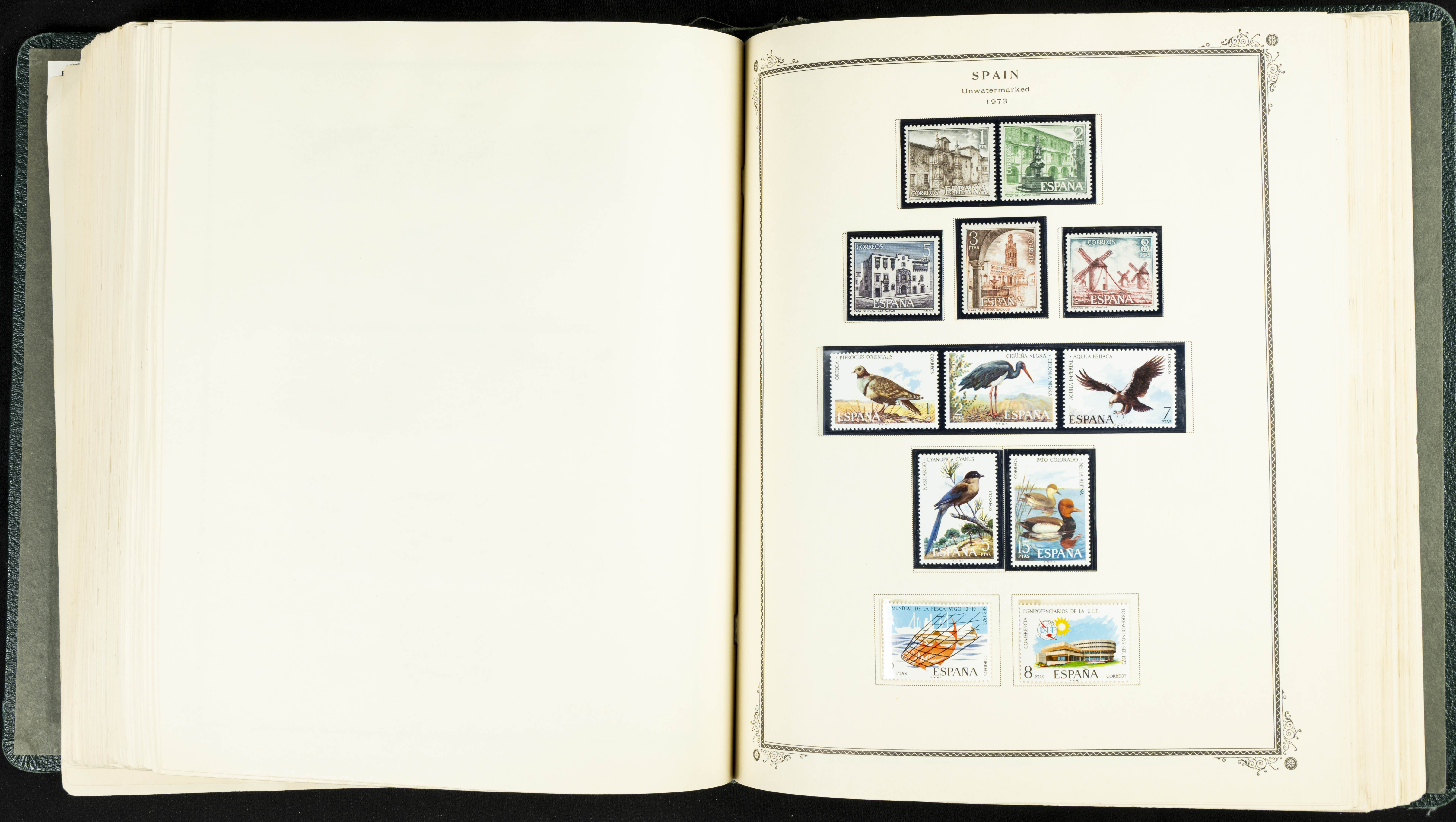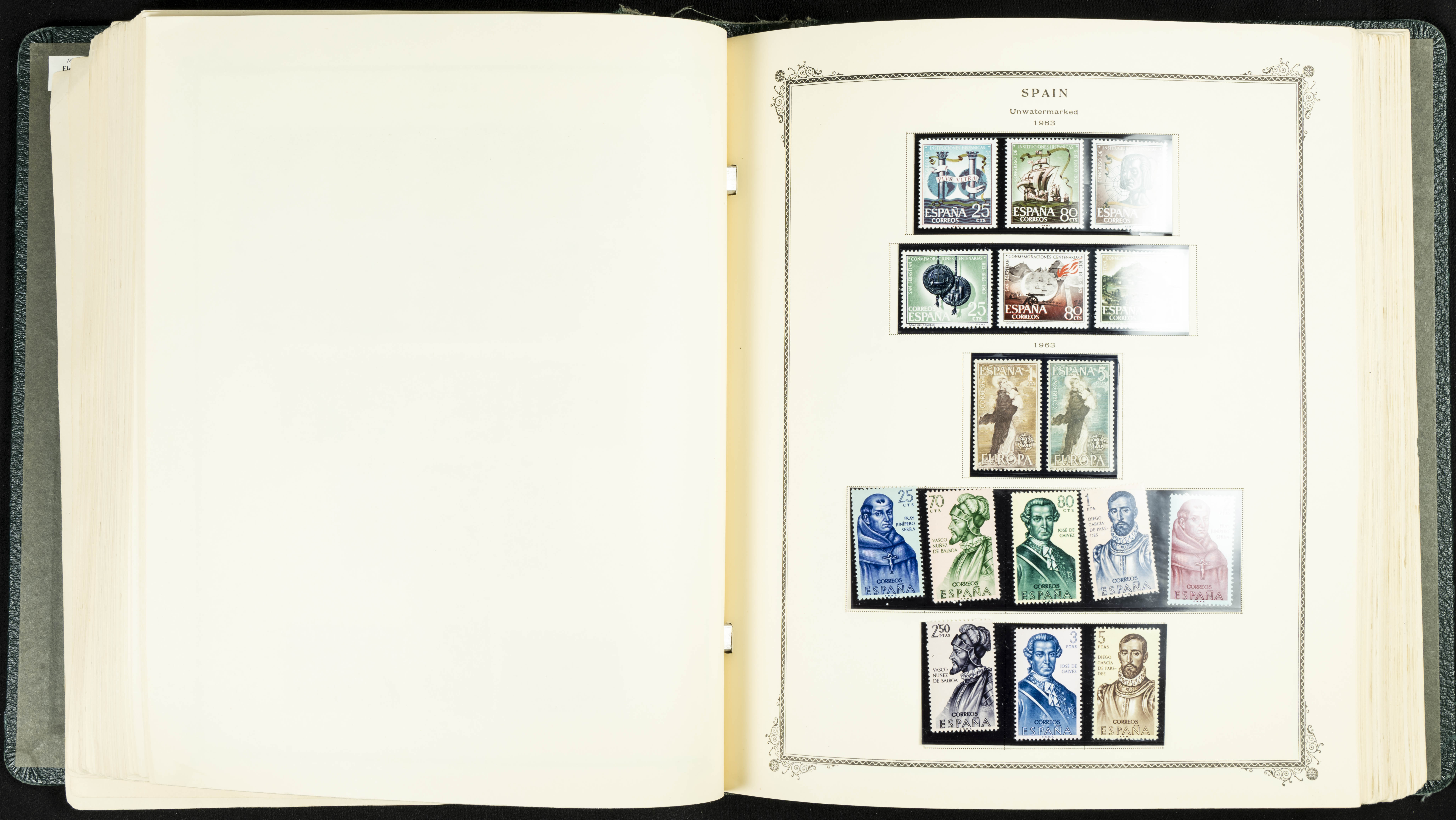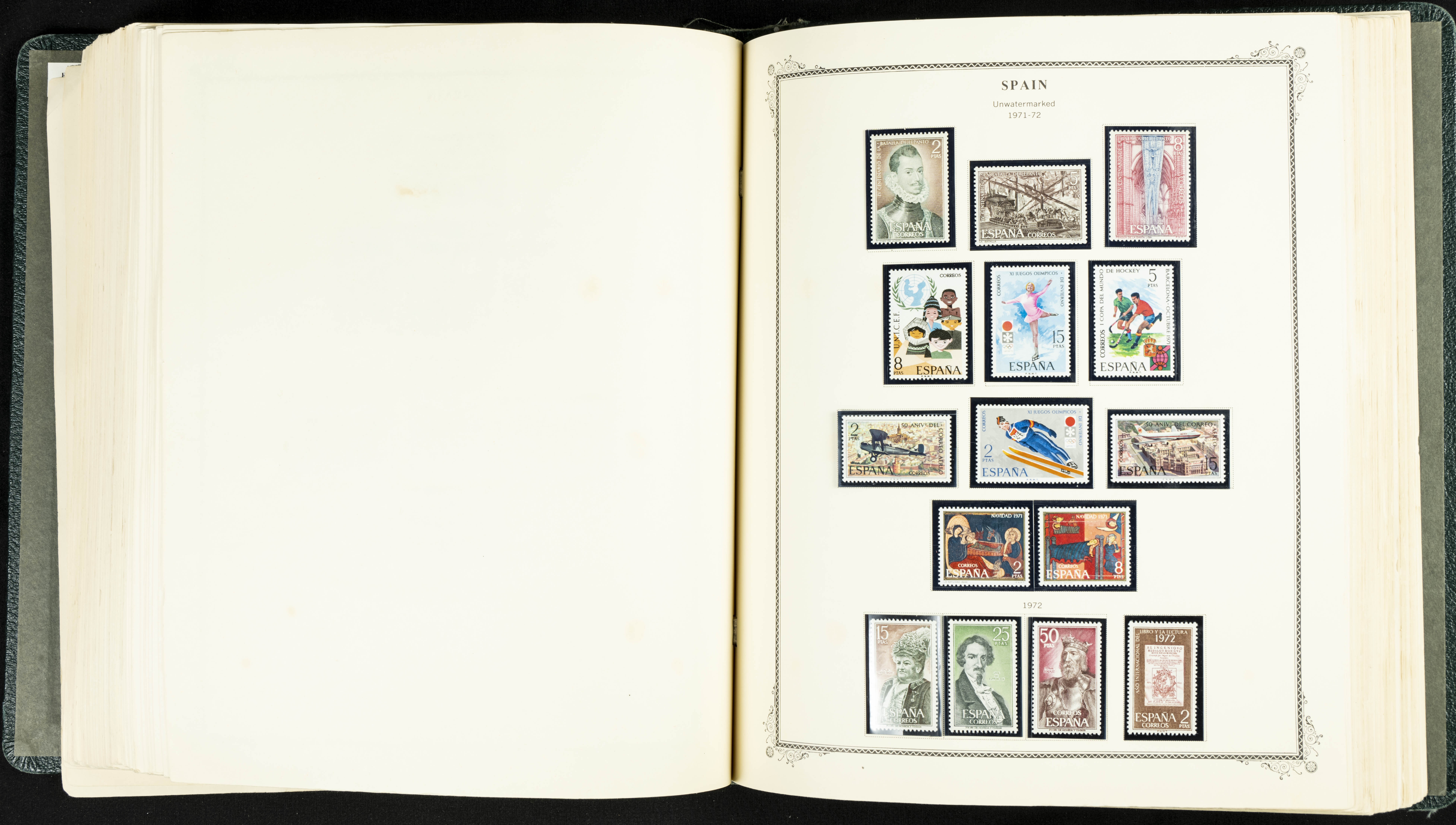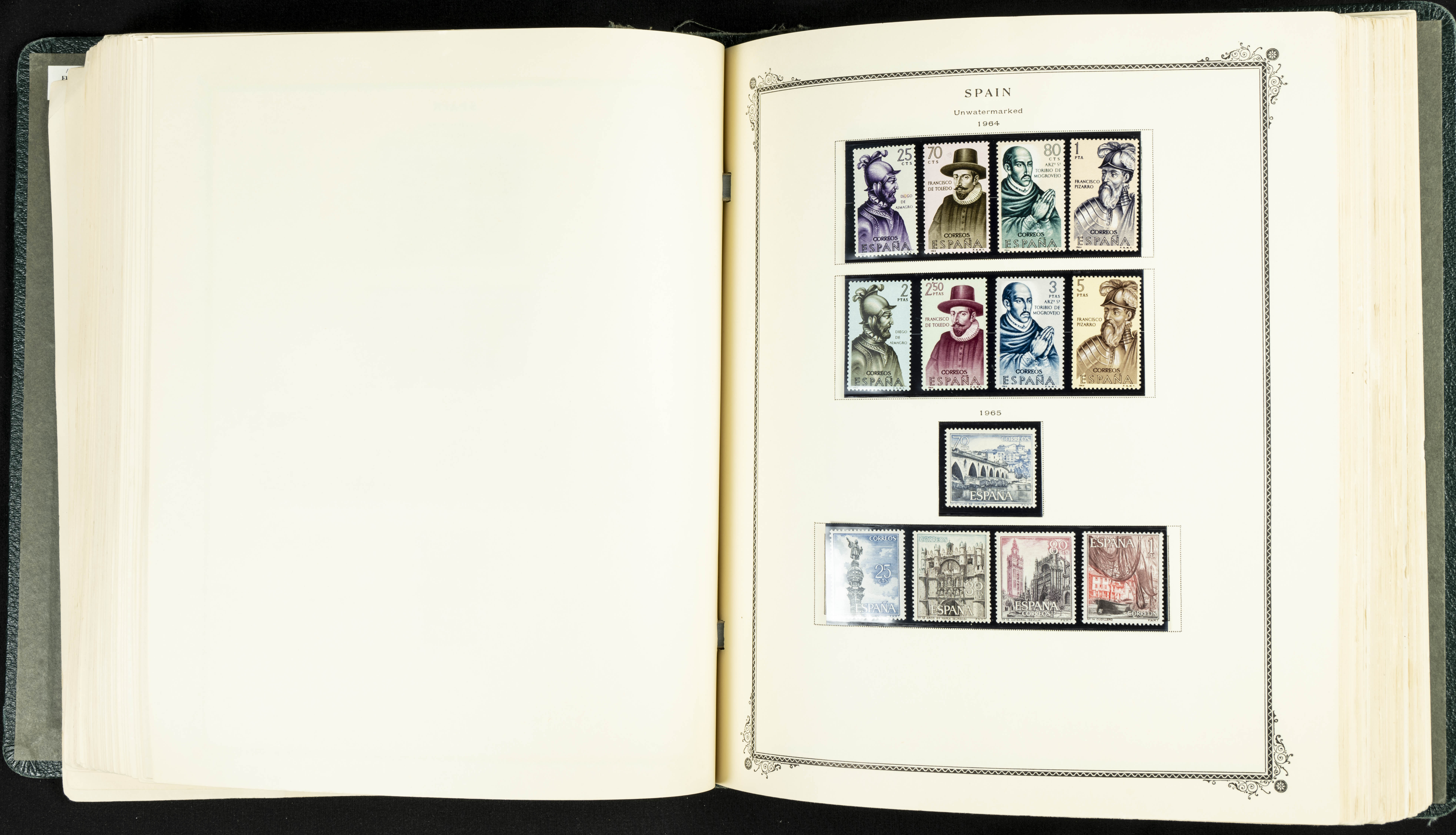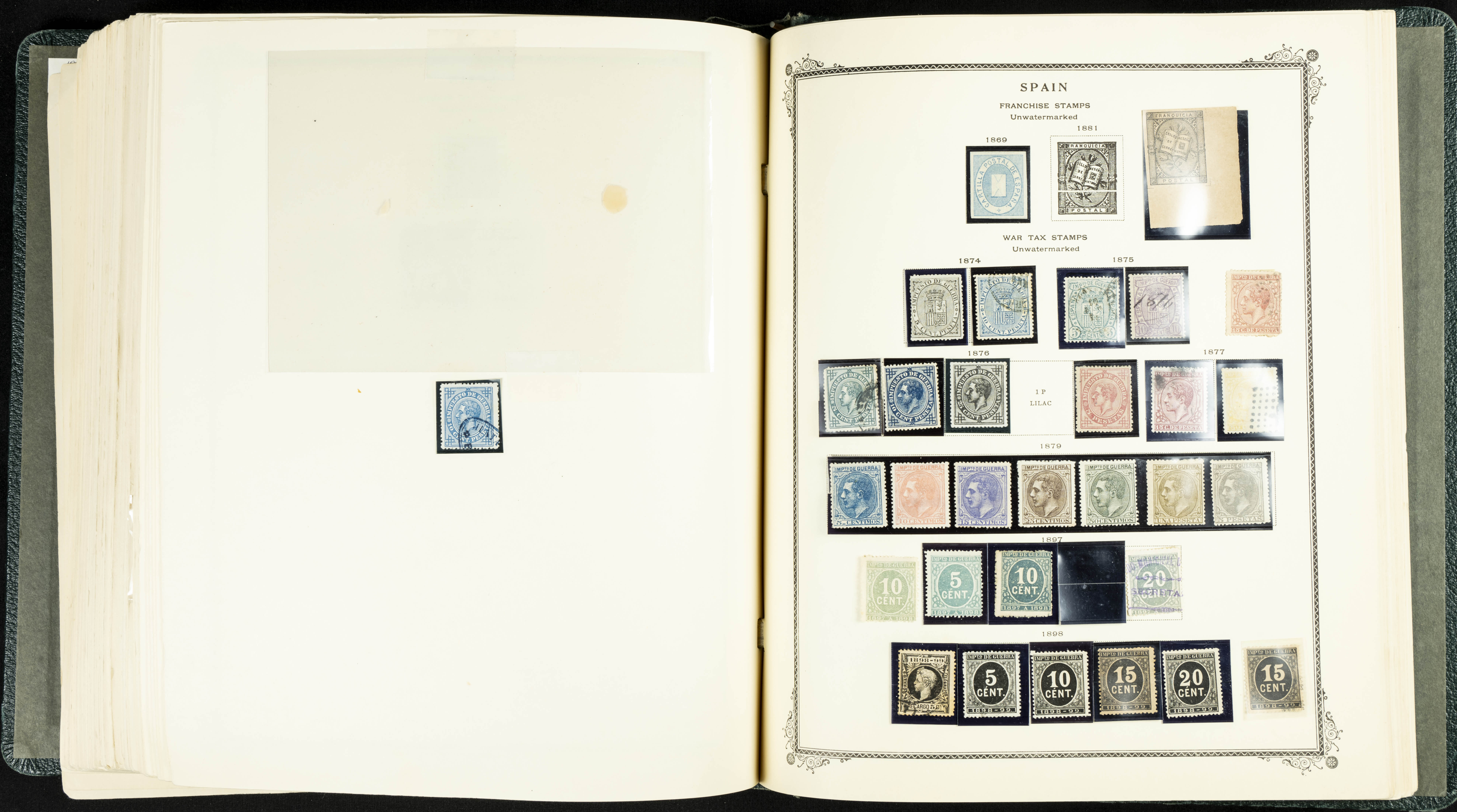 ★/(1850ca). A very interesting collection between 1850 and 1974, in mint and used coins. The classic part is very well represented, and most of the coins are used, including a complete series from 1850, 1851, 1852, and 1853, missing the 2 reales, 2 cuartos (green), and 1 real (blue) coins from 1854. Also included are most of the 19 cuartos, 4 pesetas from Amadeo and the First Republic, and most of the coins from 1876 to 1889. From 1901 onwards, everything is mint, including series such as Cadet, Quixote, Medallion, UPU, Red Cross (all of them), Railways, Montserrat (duplicate with A000000), Personalities, Militia, Granada, Franco (all of them), Pilar, "Falla and Zuloaga", Centenary, etc. It includes numerous varieties, imperforate, color changes, and some Patriotic Issues. EXTREMELY HIGH CATALOG VALUE. MUST BE EXAMINED.
