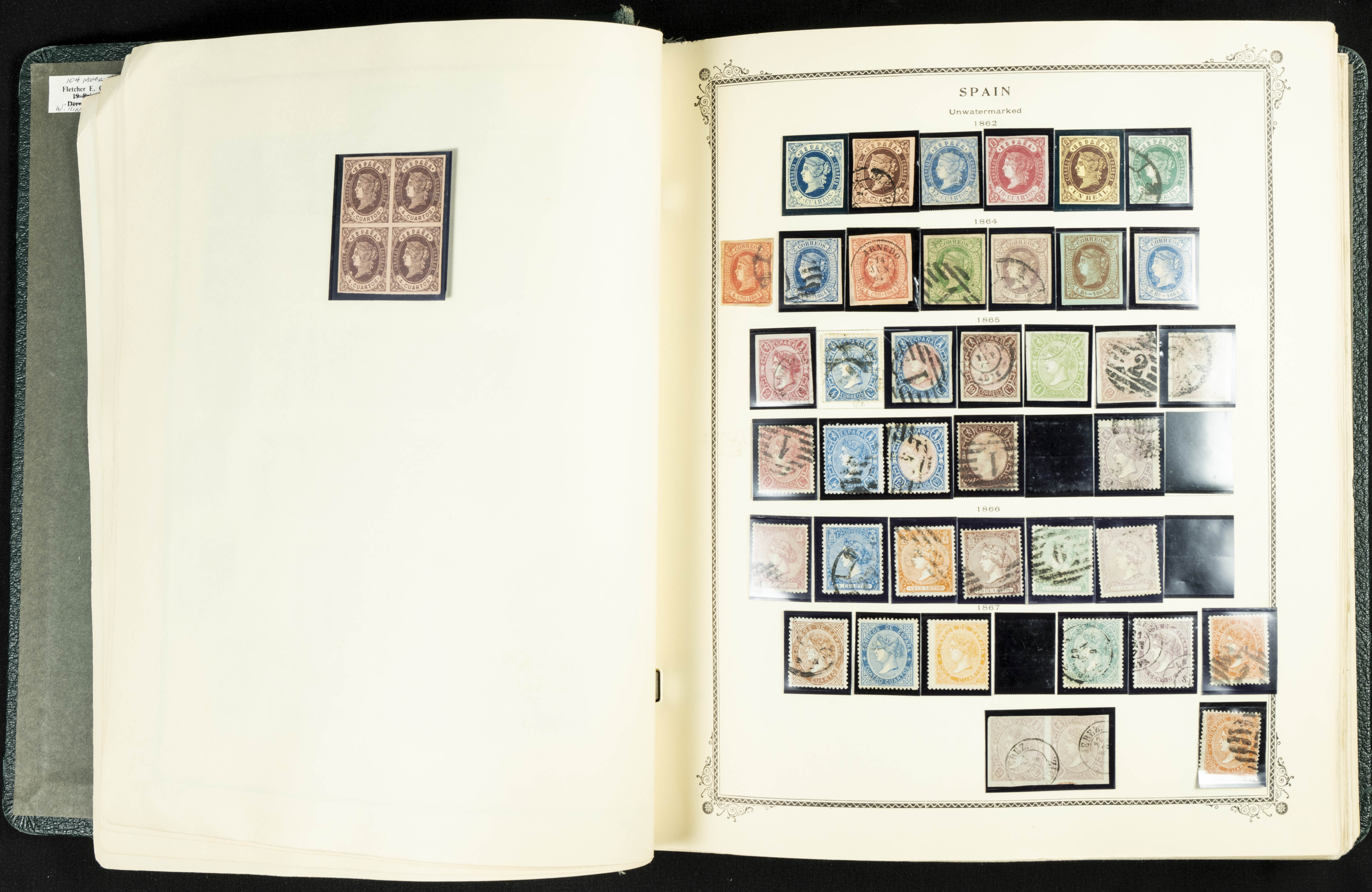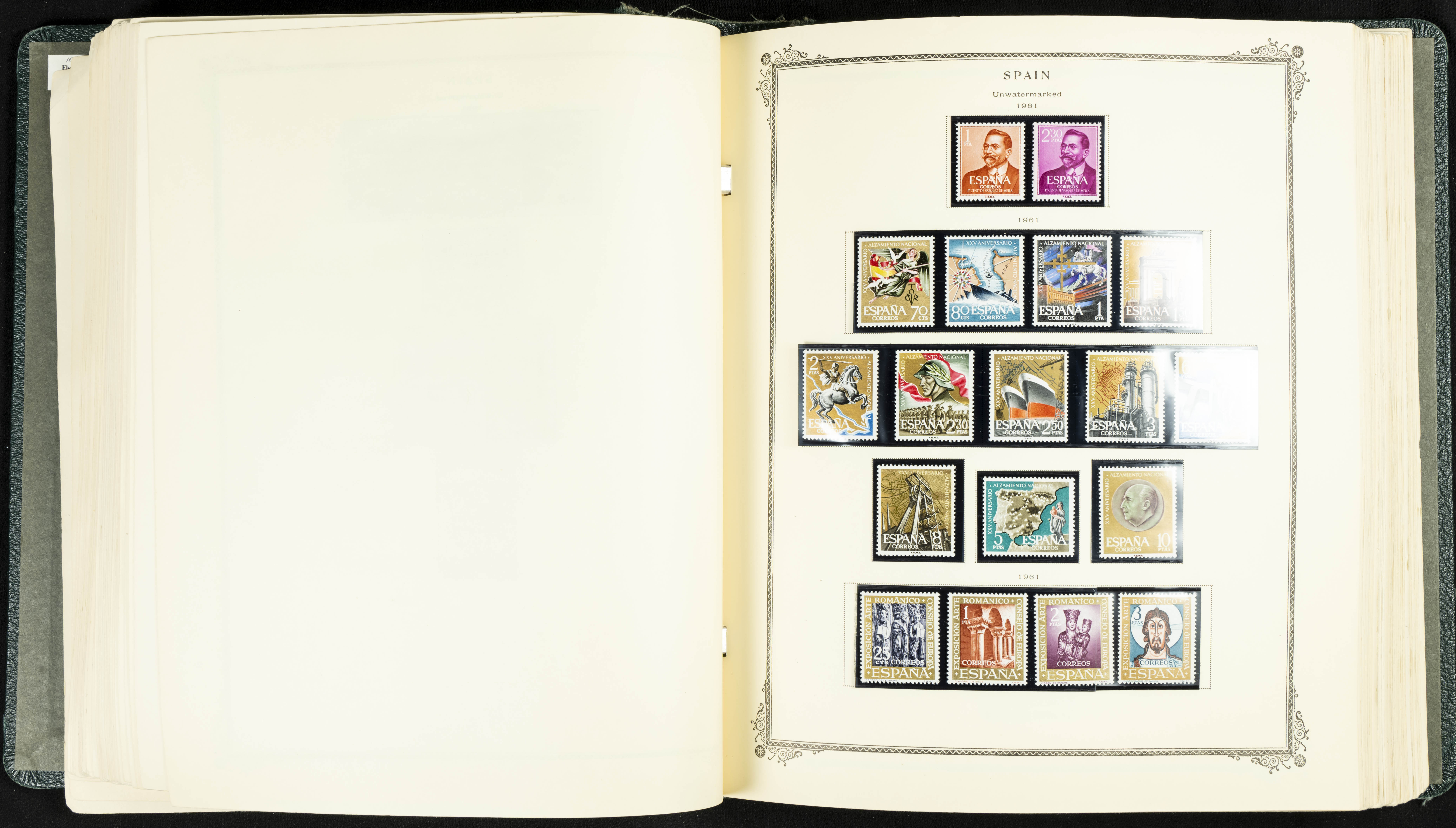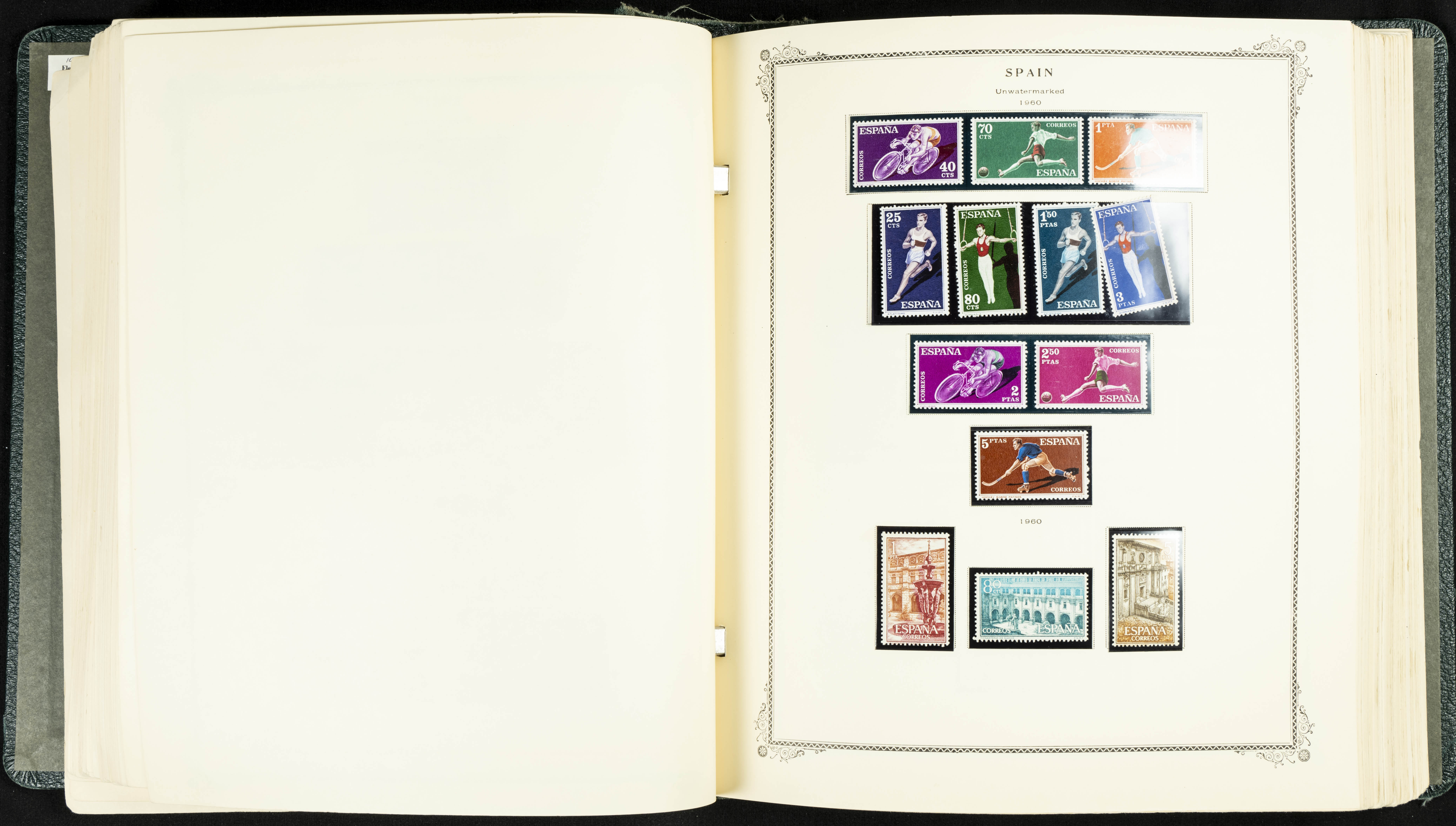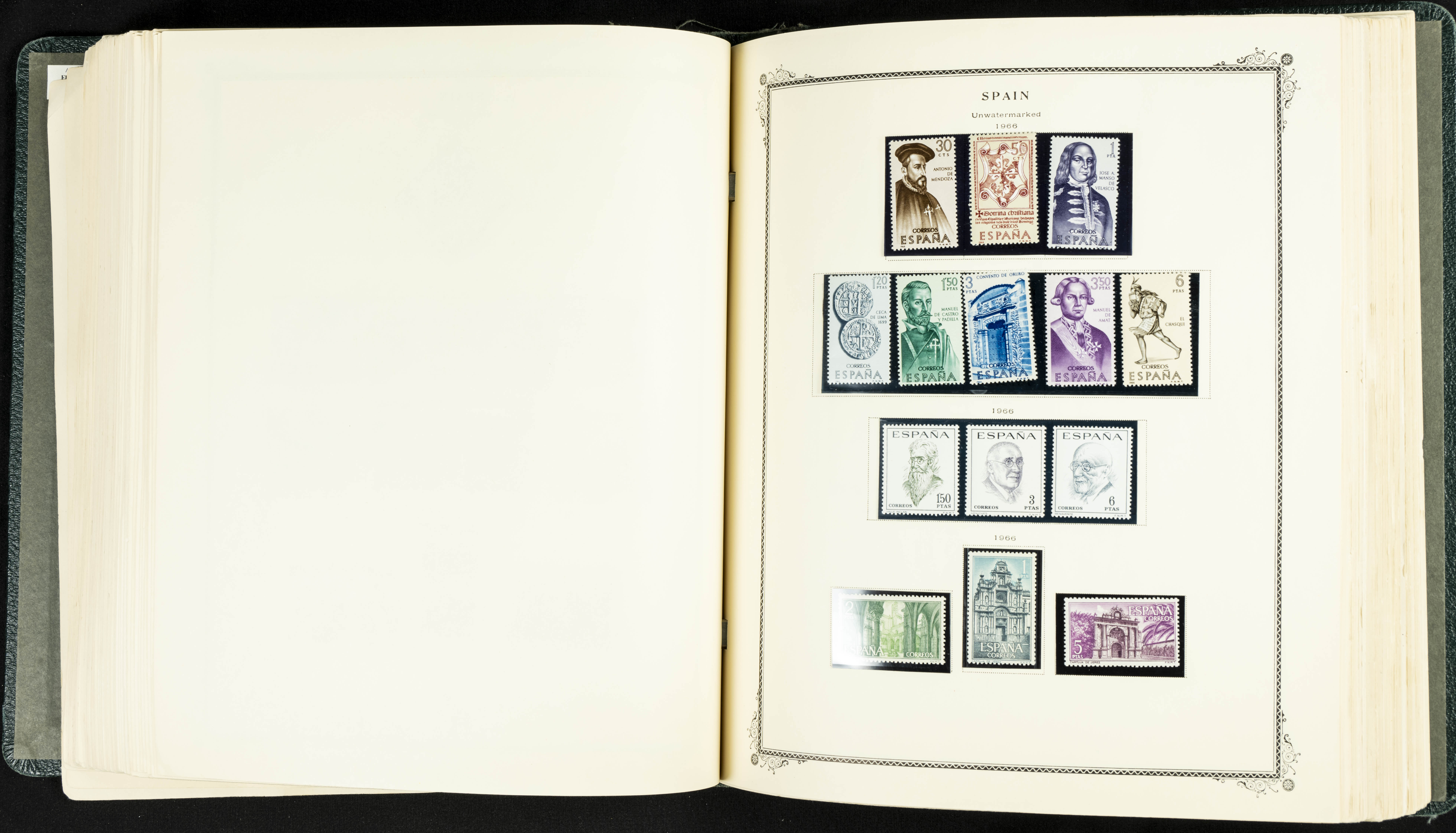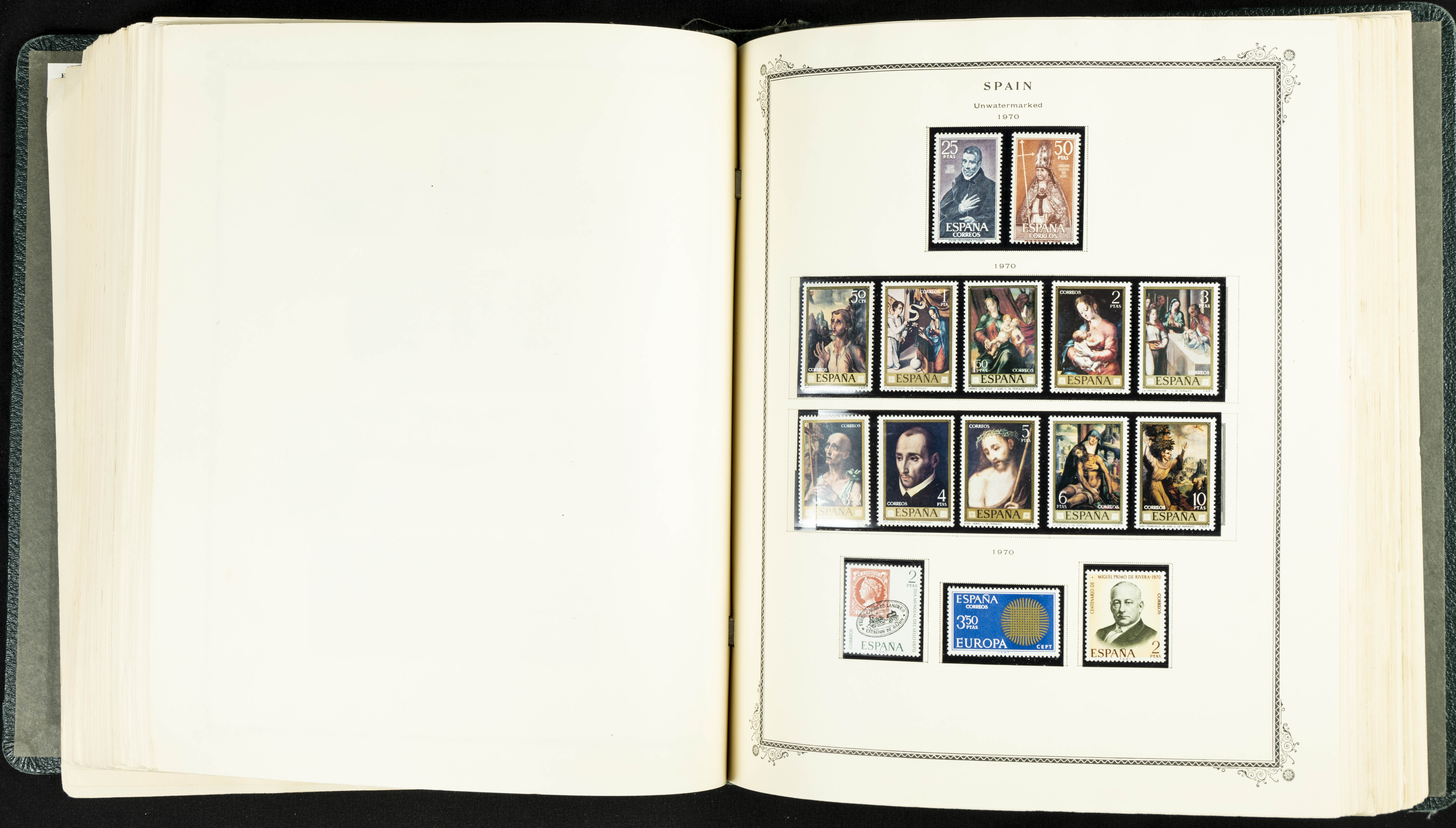 ★/(1850ca). A very interesting collection between 1850 and 1974, in mint and used coins. The classic part is very well represented, and most of the coins are used, including a complete series from 1850, 1851, 1852, and 1853, missing the 2 reales, 2 cuartos (green), and 1 real (blue) coins from 1854. Also included are most of the 19 cuartos, 4 pesetas from Amadeo and the First Republic, and most of the coins from 1876 to 1889. From 1901 onwards, everything is mint, including series such as Cadet, Quixote, Medallion, UPU, Red Cross (all of them), Railways, Montserrat (duplicate with A000000), Personalities, Militia, Granada, Franco (all of them), Pilar, "Falla and Zuloaga", Centenary, etc. It includes numerous varieties, imperforate, color changes, and some Patriotic Issues. EXTREMELY HIGH CATALOG VALUE. MUST BE EXAMINED.