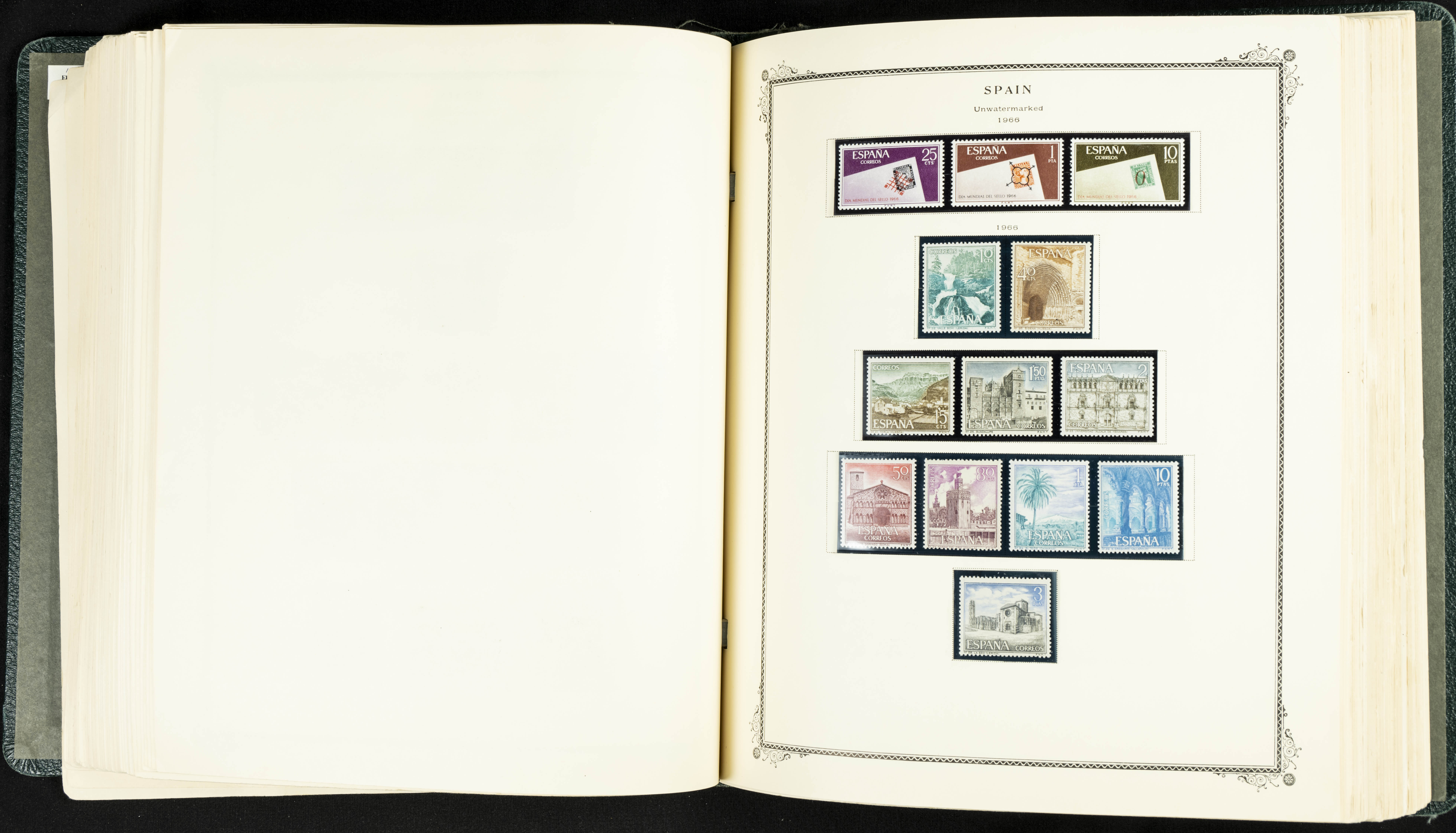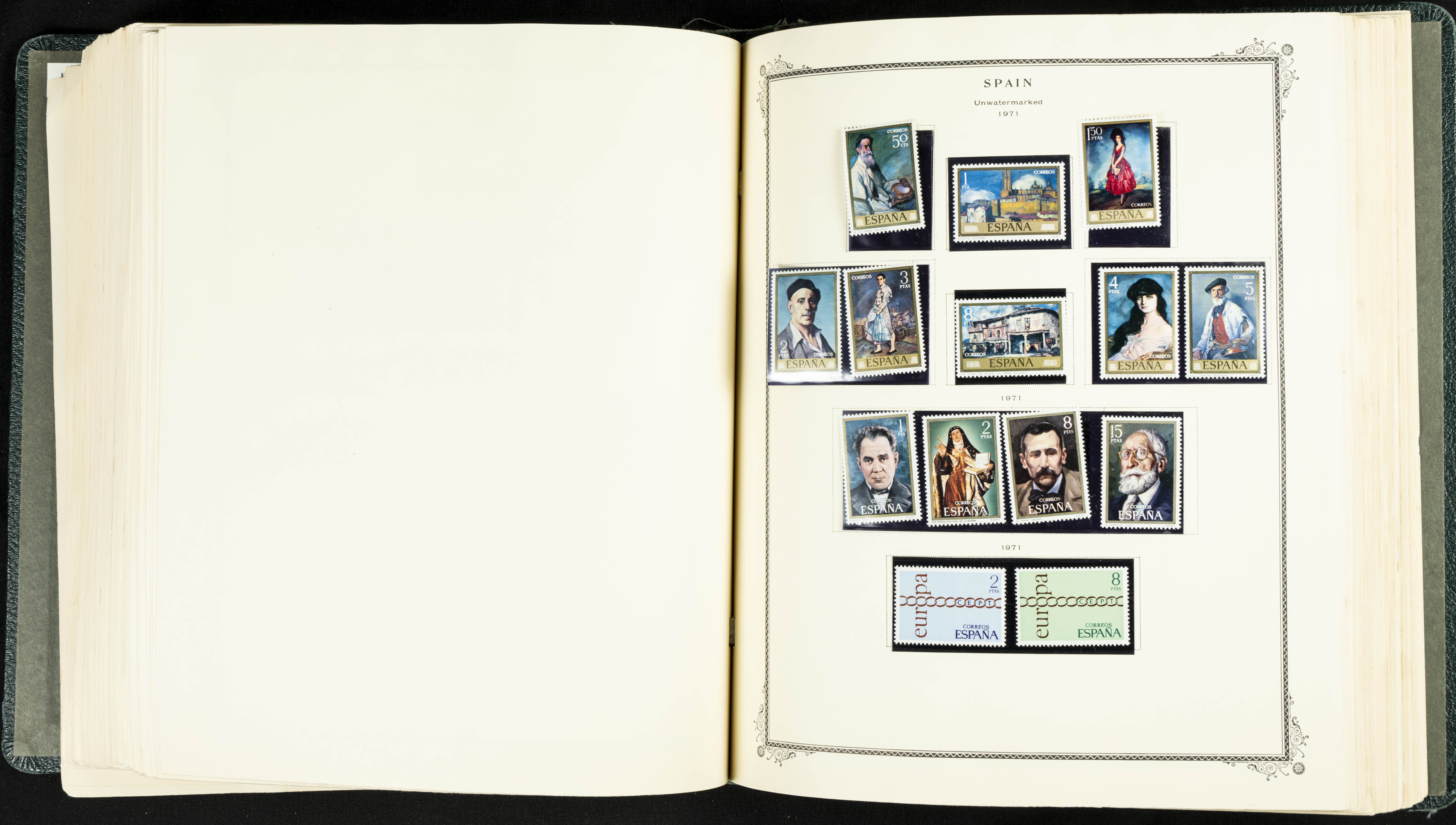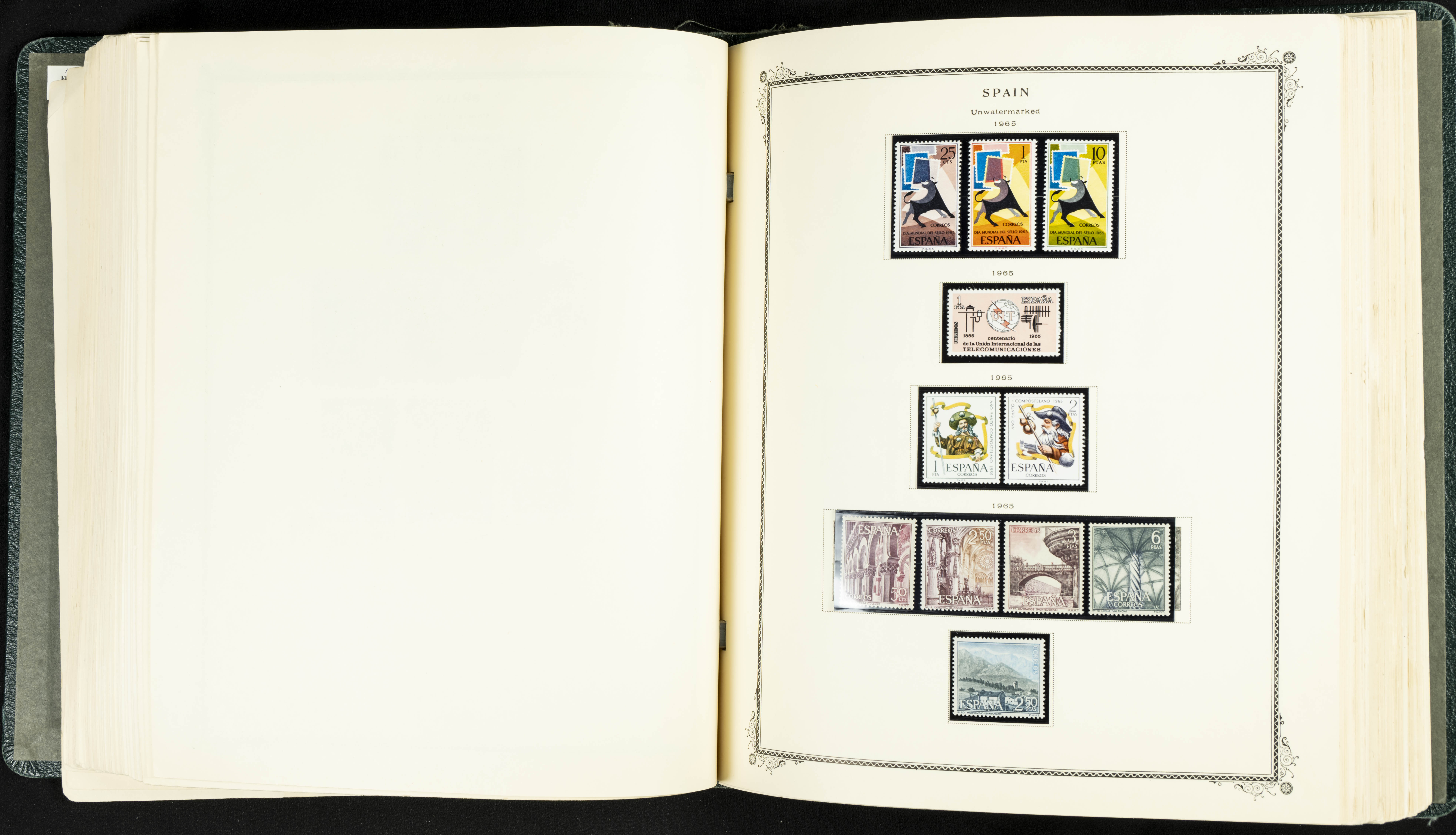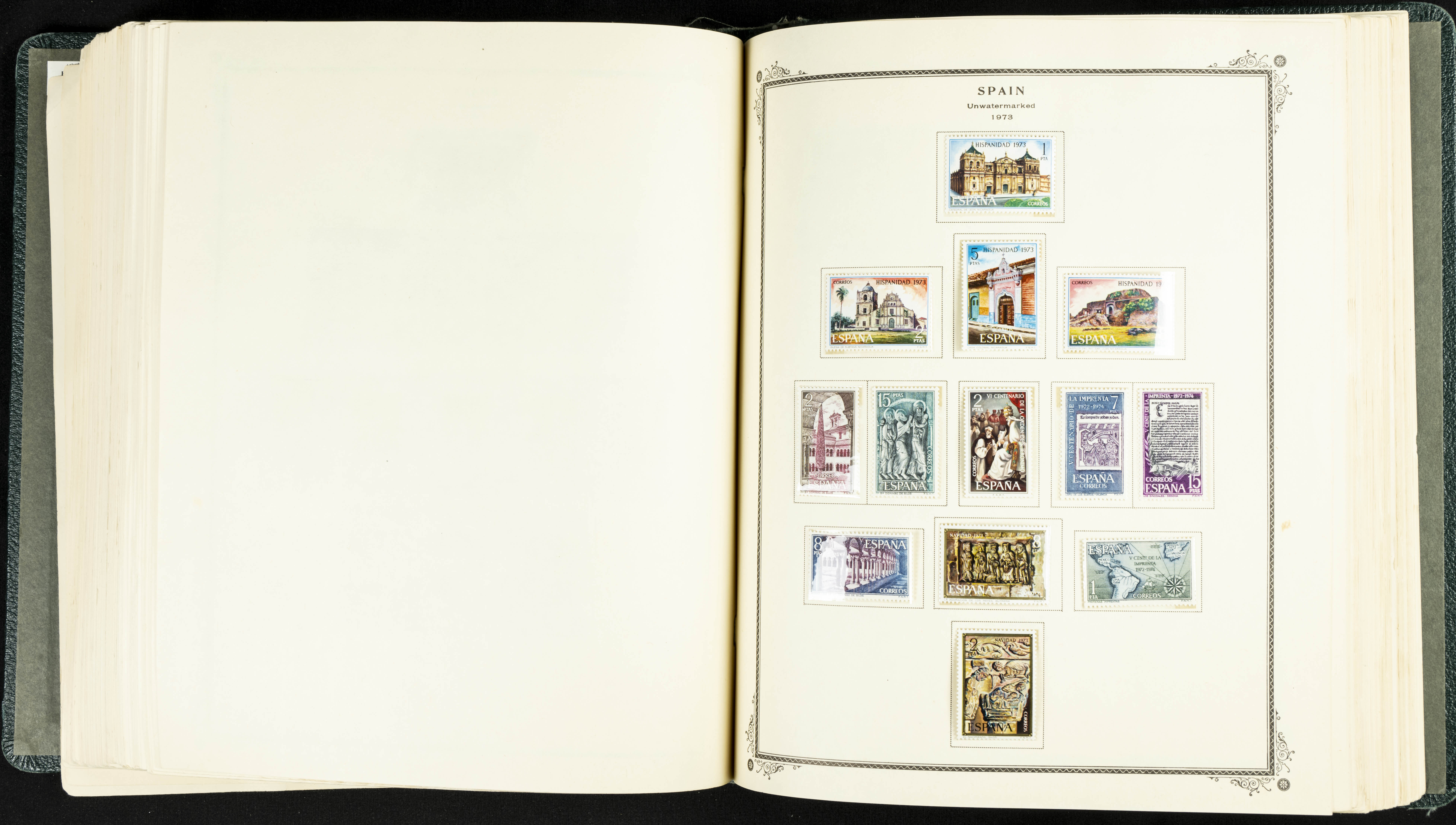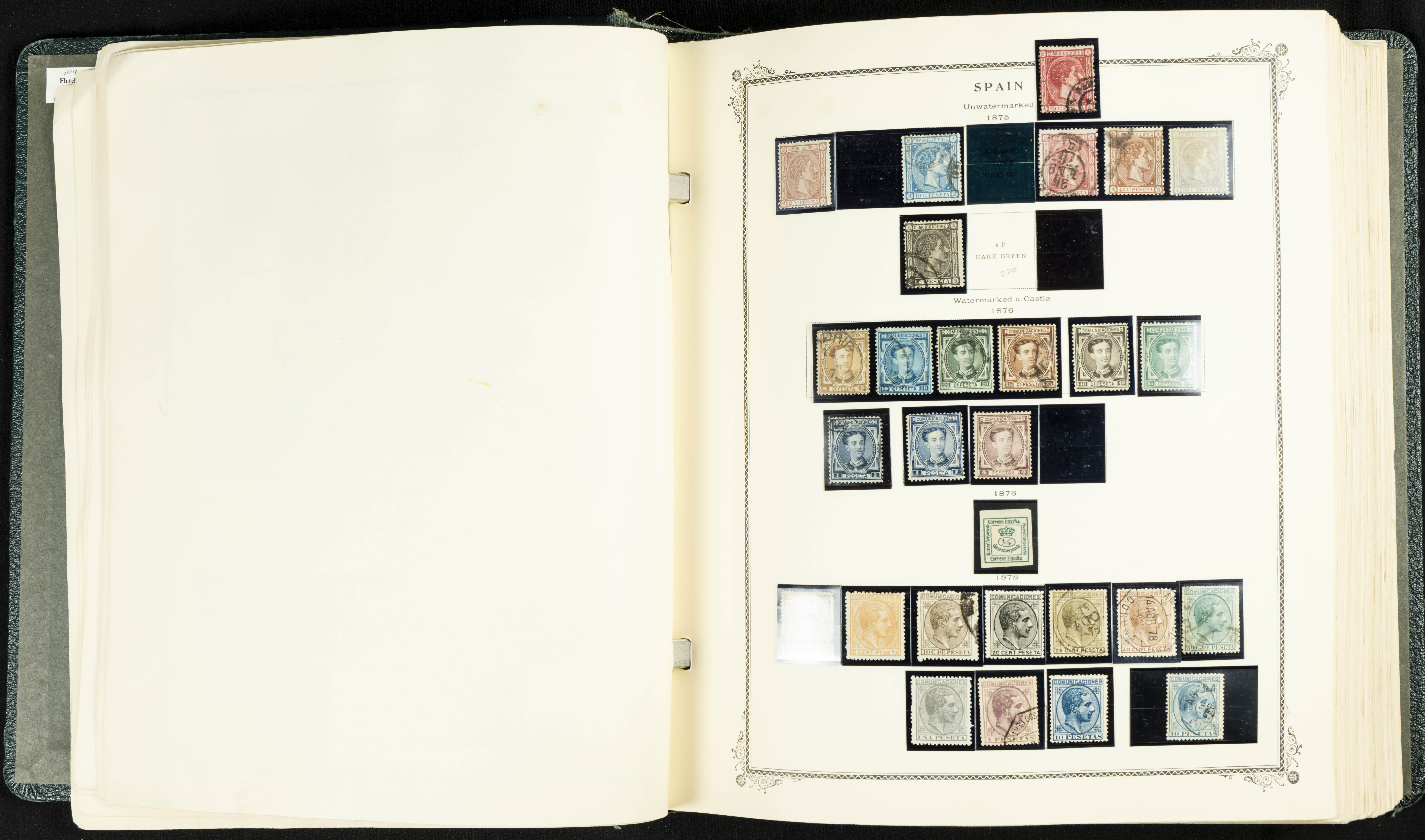 ★/(1850ca). A very interesting collection between 1850 and 1974, in mint and used coins. The classic part is very well represented, and most of the coins are used, including a complete series from 1850, 1851, 1852, and 1853, missing the 2 reales, 2 cuartos (green), and 1 real (blue) coins from 1854. Also included are most of the 19 cuartos, 4 pesetas from Amadeo and the First Republic, and most of the coins from 1876 to 1889. From 1901 onwards, everything is mint, including series such as Cadet, Quixote, Medallion, UPU, Red Cross (all of them), Railways, Montserrat (duplicate with A000000), Personalities, Militia, Granada, Franco (all of them), Pilar, "Falla and Zuloaga", Centenary, etc. It includes numerous varieties, imperforate, color changes, and some Patriotic Issues. EXTREMELY HIGH CATALOG VALUE. MUST BE EXAMINED.