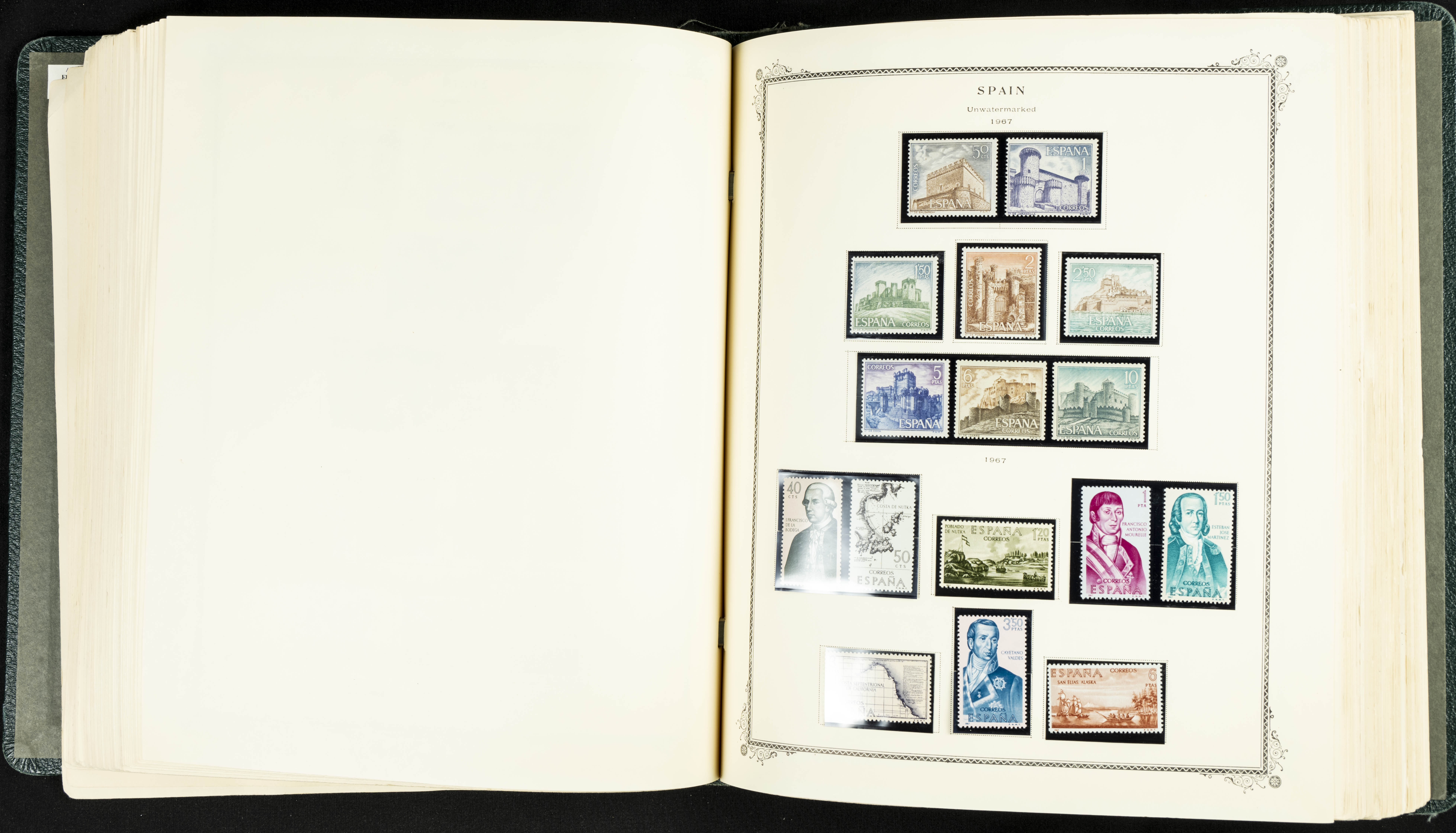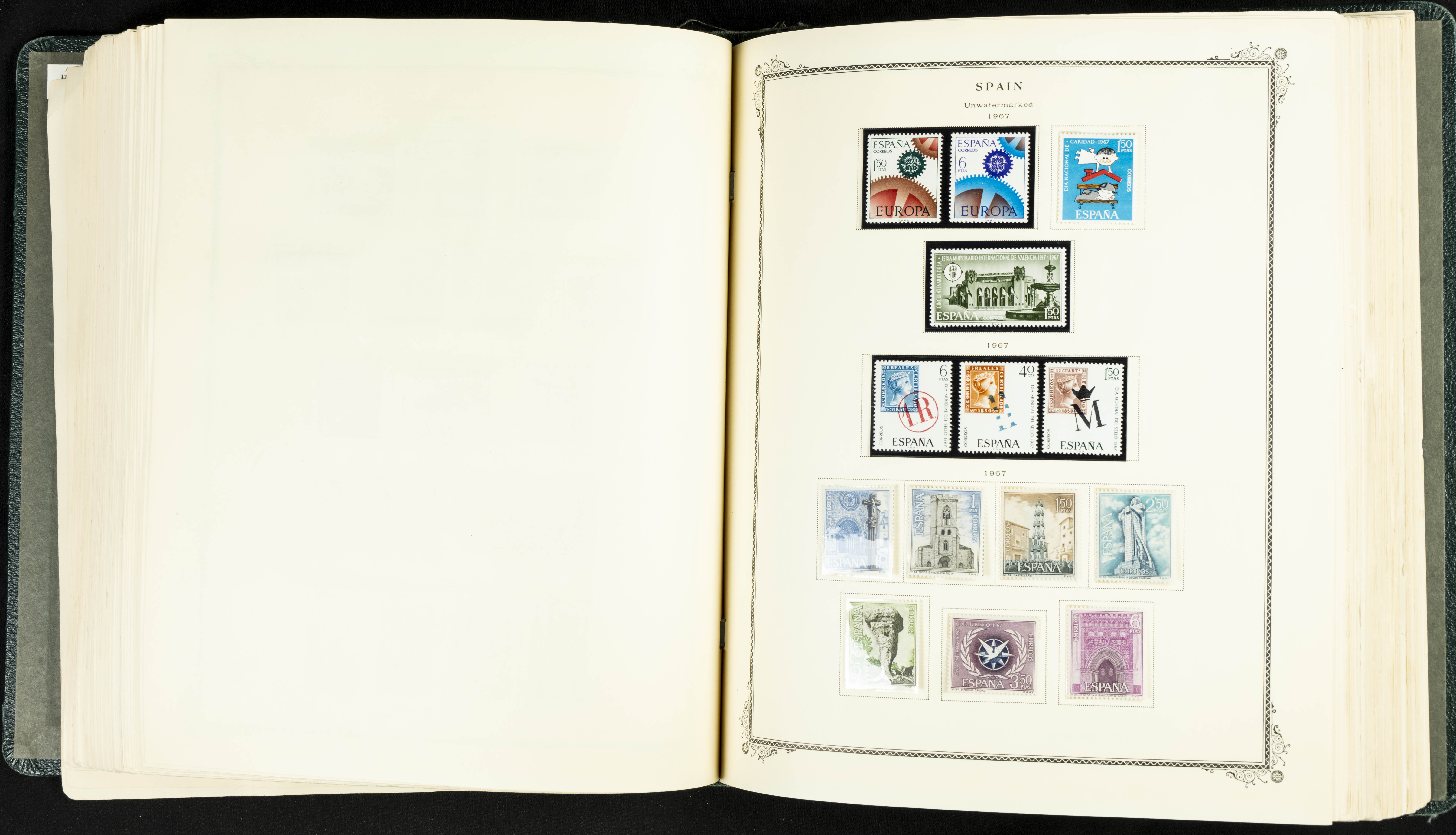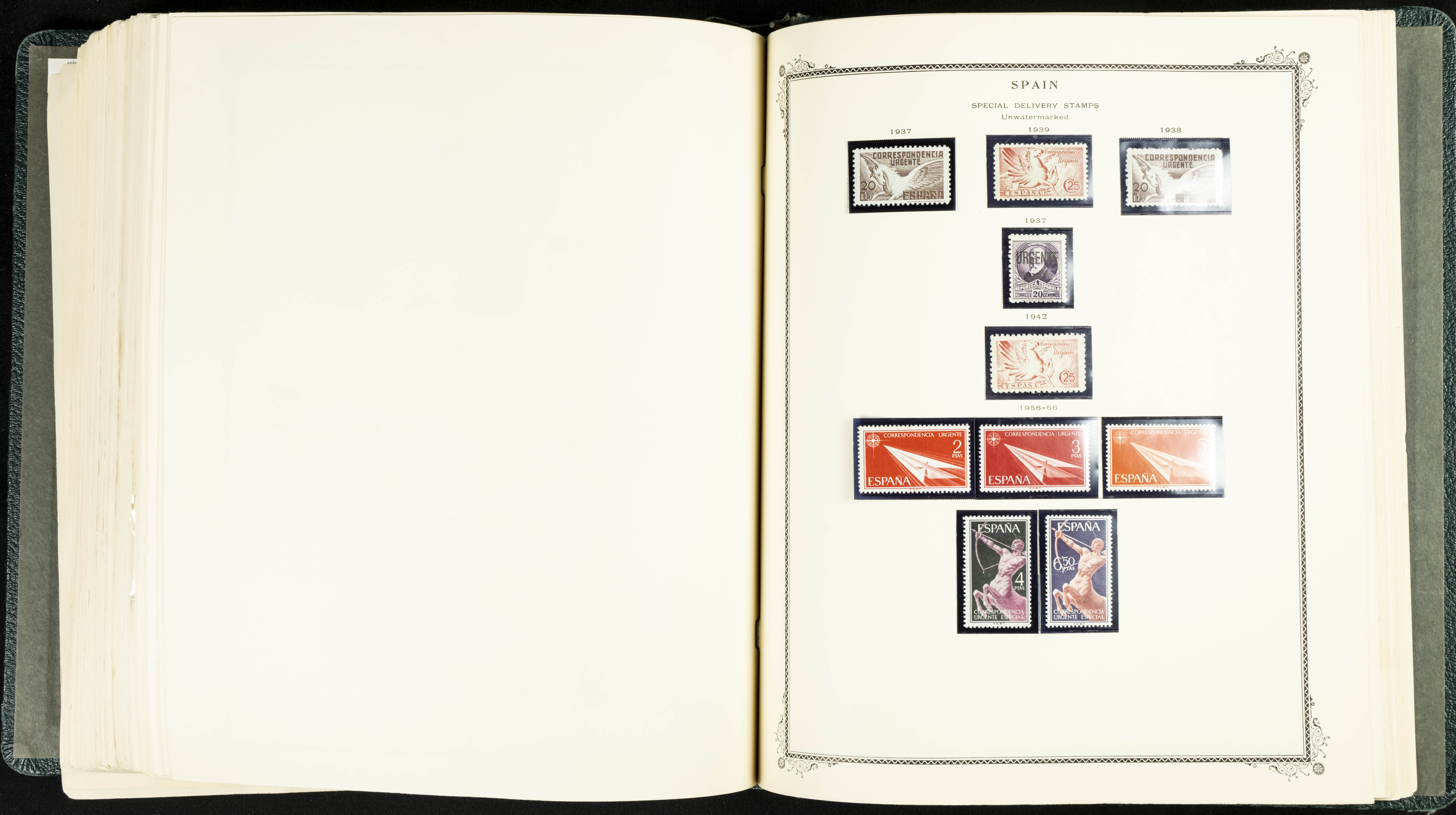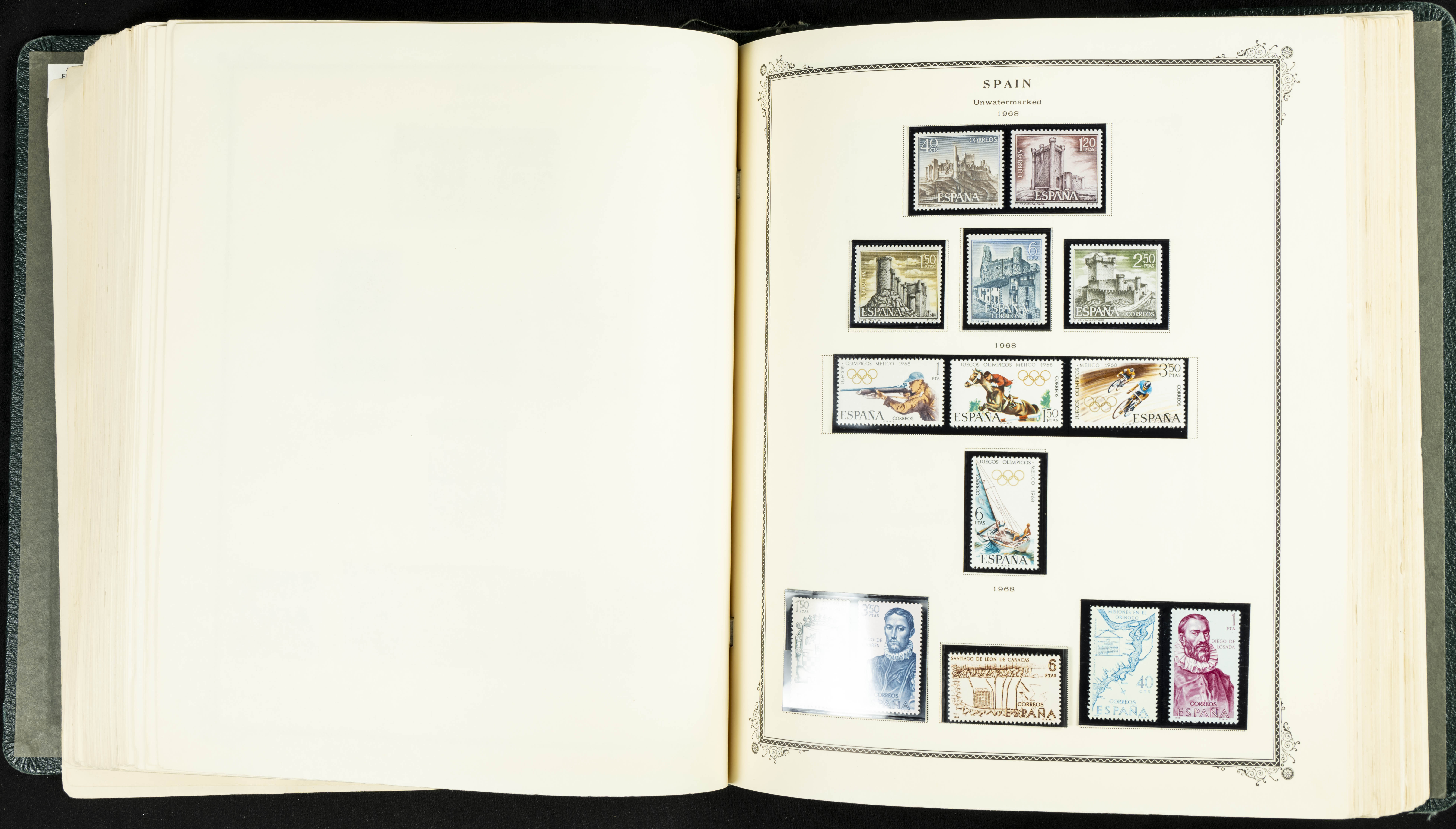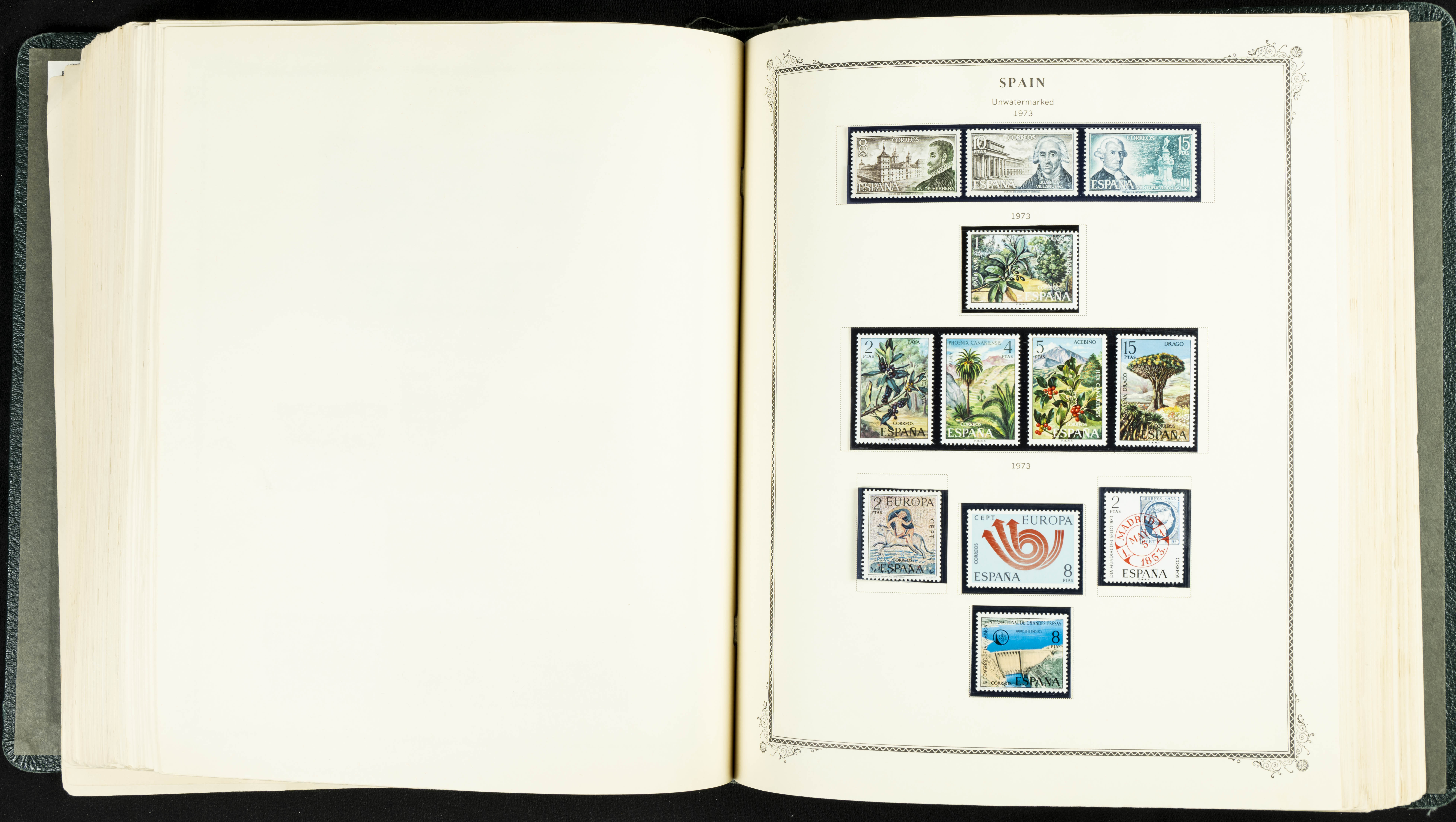 ★/(1850ca). A very interesting collection between 1850 and 1974, in mint and used coins. The classic part is very well represented, and most of the coins are used, including a complete series from 1850, 1851, 1852, and 1853, missing the 2 reales, 2 cuartos (green), and 1 real (blue) coins from 1854. Also included are most of the 19 cuartos, 4 pesetas from Amadeo and the First Republic, and most of the coins from 1876 to 1889. From 1901 onwards, everything is mint, including series such as Cadet, Quixote, Medallion, UPU, Red Cross (all of them), Railways, Montserrat (duplicate with A000000), Personalities, Militia, Granada, Franco (all of them), Pilar, "Falla and Zuloaga", Centenary, etc. It includes numerous varieties, imperforate, color changes, and some Patriotic Issues. EXTREMELY HIGH CATALOG VALUE. MUST BE EXAMINED.