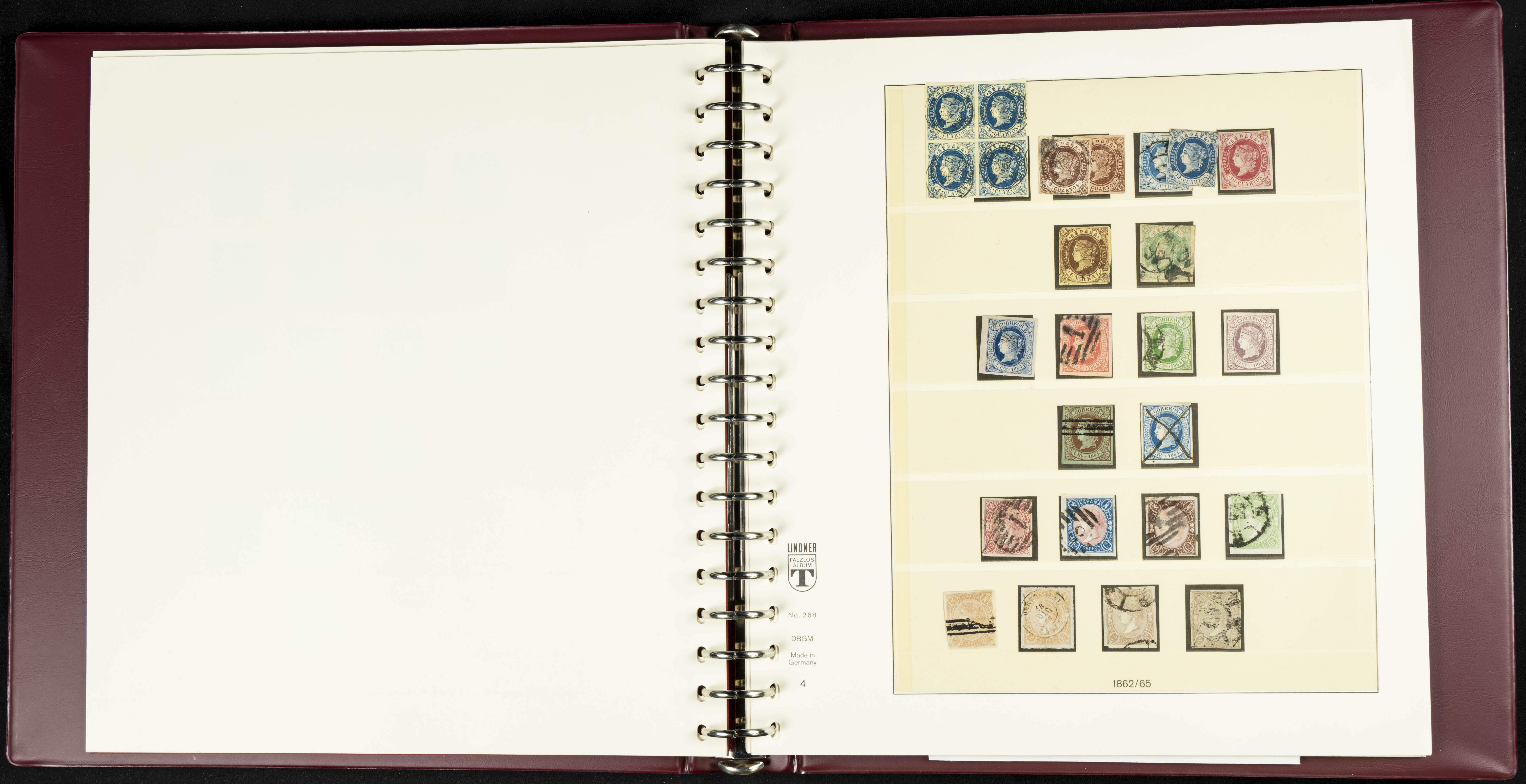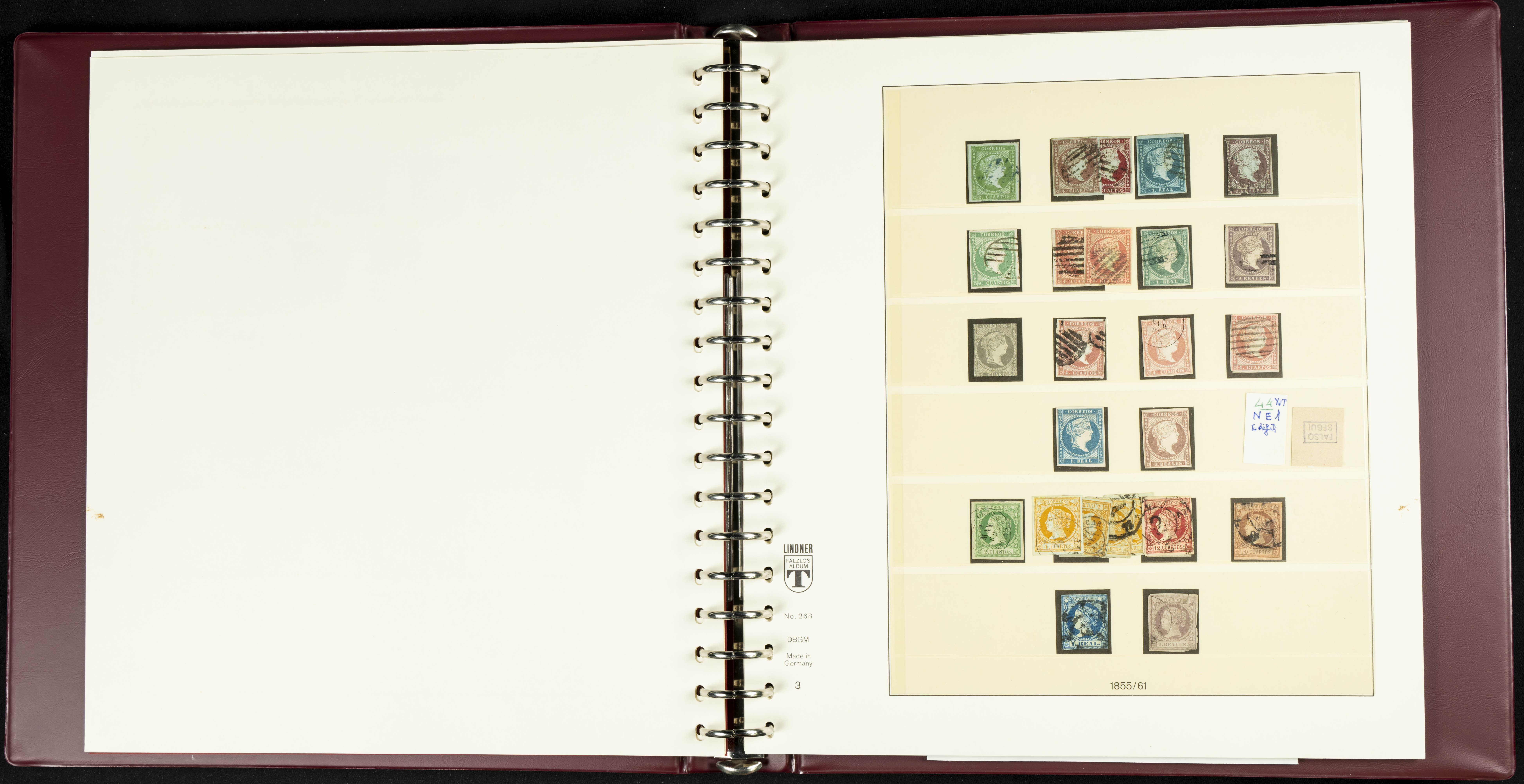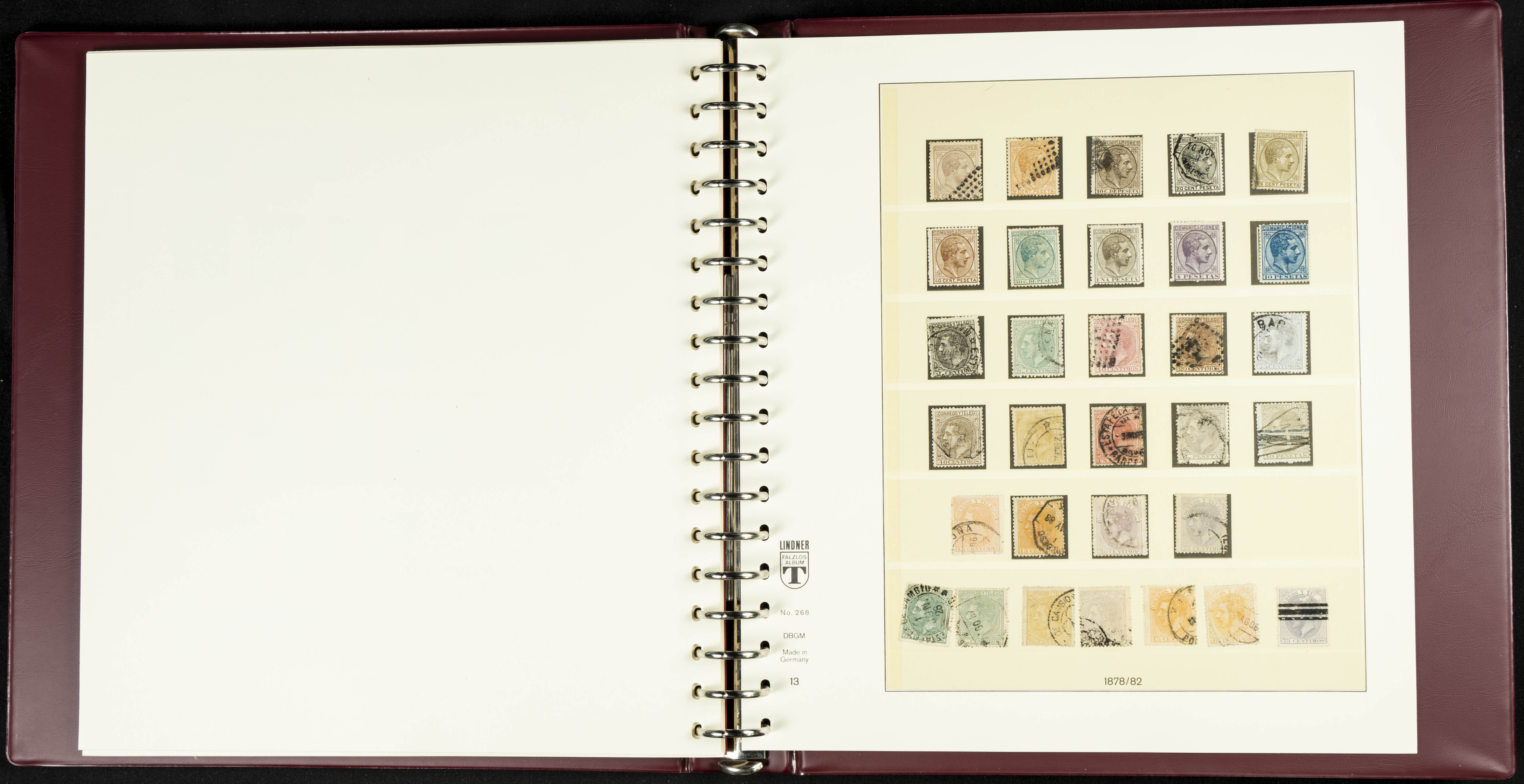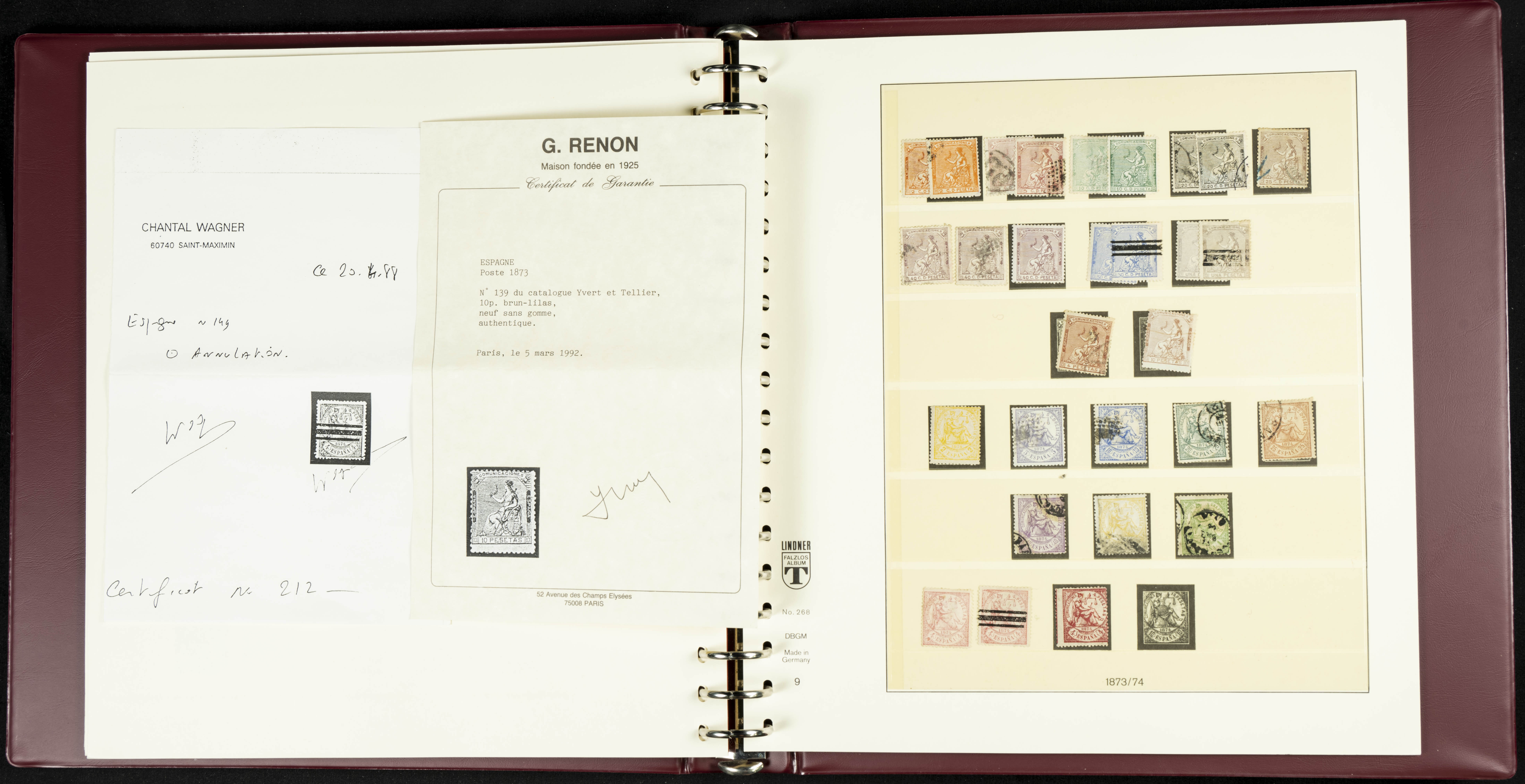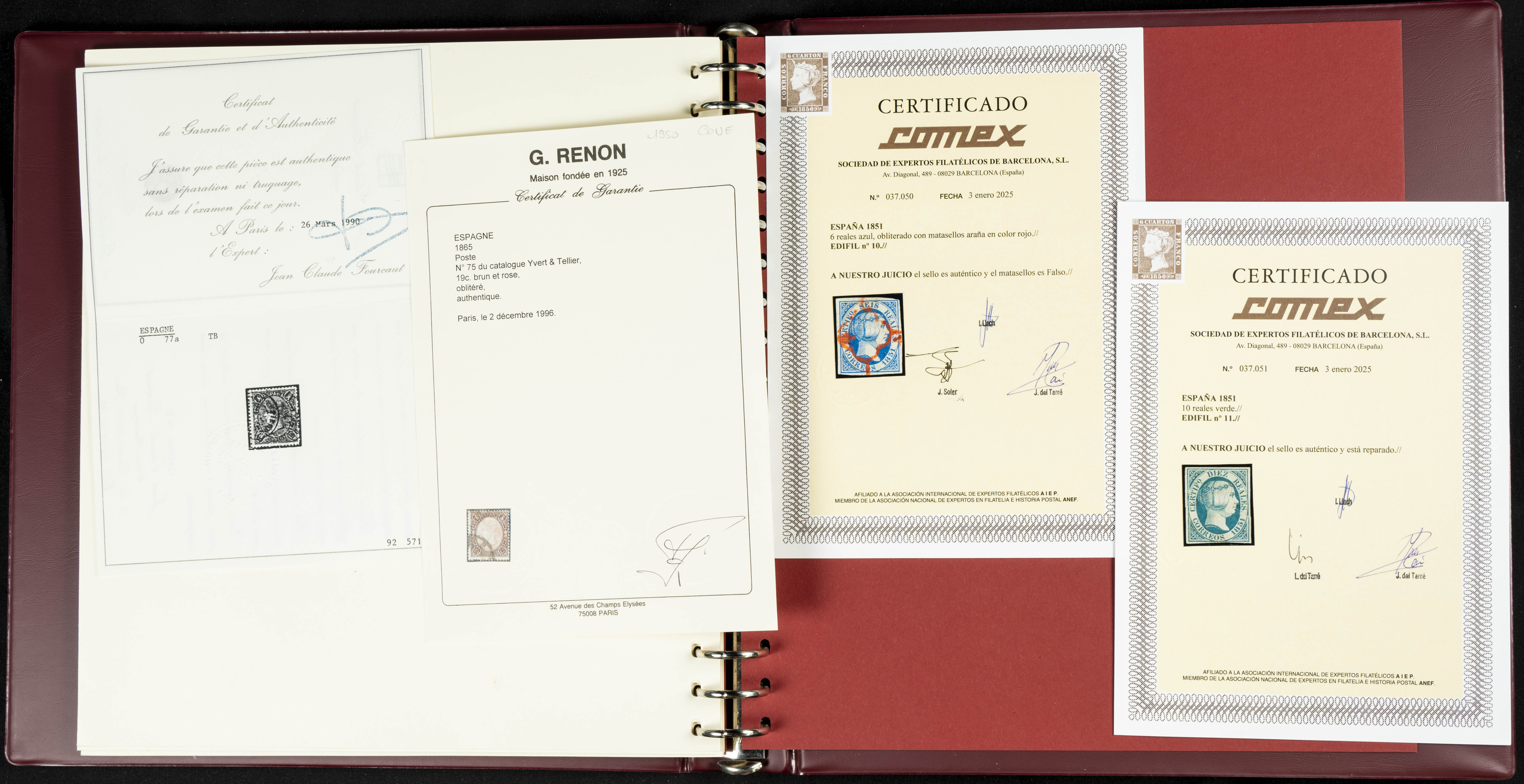 (★)/(1850ca). A very interesting collection of classic stamps from between 1850 and 1882, mostly mint and used, including the 6 reales and 10 reales of 1850, the 10 reales of 1851 (mint), the 2 cuartos and 1 real of 1854, the 19 cuartos of 1860, 1862 (mint), 1864 (mint), 1865 (perforated and imperforate), 1866, 1867, and 1868, the 2 escudos and 1600 mils of Matrona, and most of the key values of subsequent issues. It also includes some forgeries, several duplicates (some with special postmarks), and some varieties. Extremely high catalog value. Examine the collection closely.