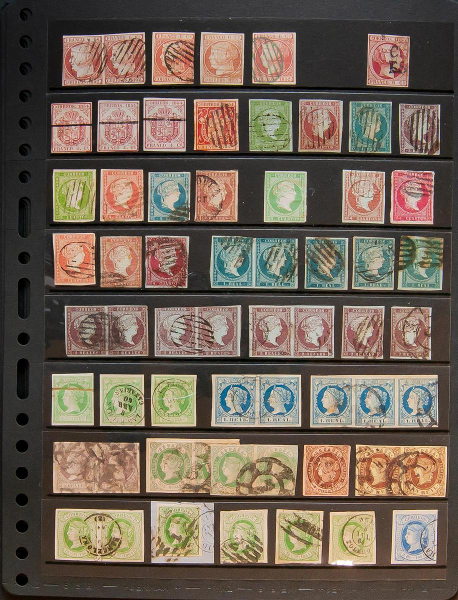 (1850ca). Interesting set of more than one hundred and twenty classic stamps between 1852 and 1870, some with pre-philatelic or special postmarks and others in pairs and blocks, some pieces of great interest and with interesting and high-quality postmarks. VERY HIGH CATALOG VALUE. TO EXAMINE.