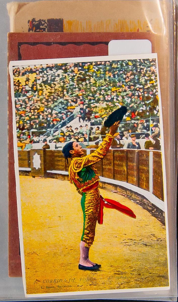 (1910ca). Interesting set of approximately eighty postcards from Spain (some French) with bullfighting scenes between 1910 and 1970, most of them new. TO EXAMINE.