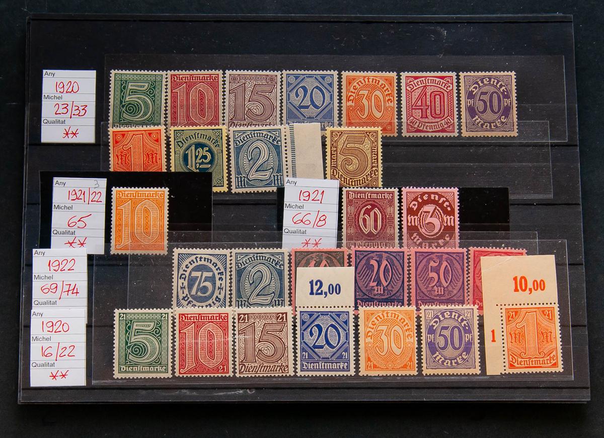 ★★1920. Interesting set including most of the complete German Empire Service series, in new condition and without stamps (excellent qualities). (Michel 2012: 900 Euros). TO EXAMINE.
