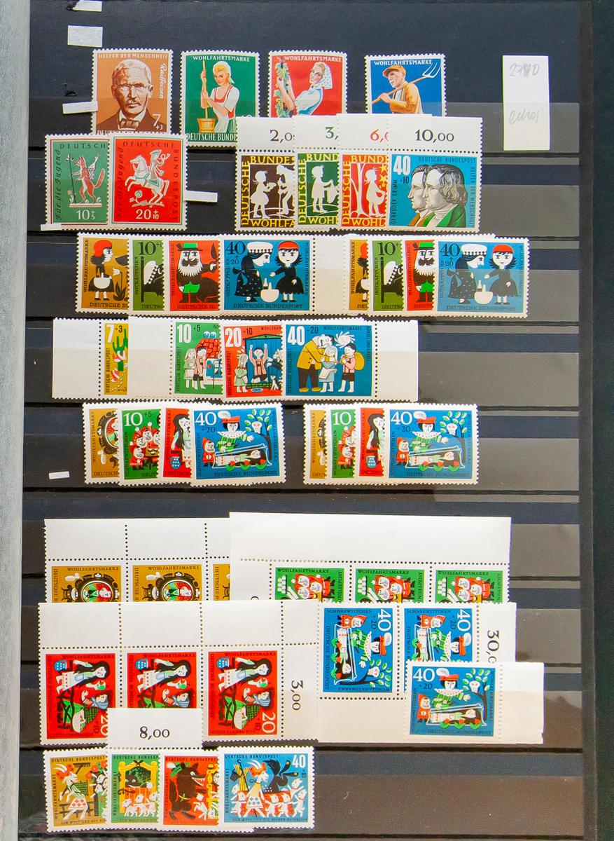 ★★(1960ca). Set-stock of West Germany (FRG) between 1960 and 2002 of stamps and complete series, new without hallmarks, with quantities between one and eight units of each. HIGH CATALOG VALUE. TO EXAMINE.