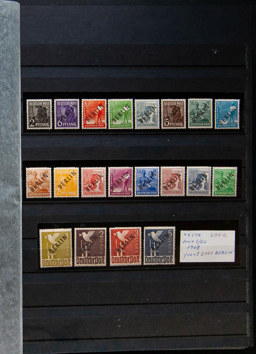★★/★(1948ca). Interesting collection of Germany Berlin between 1948 and 1990, in new condition and most of them without stamps from 1952, including all the important series (some without stamps) and the Monetary Reform block sheet. VERY HIGH CATALOG VALUE. ESSENTIAL TO EXAMINE.