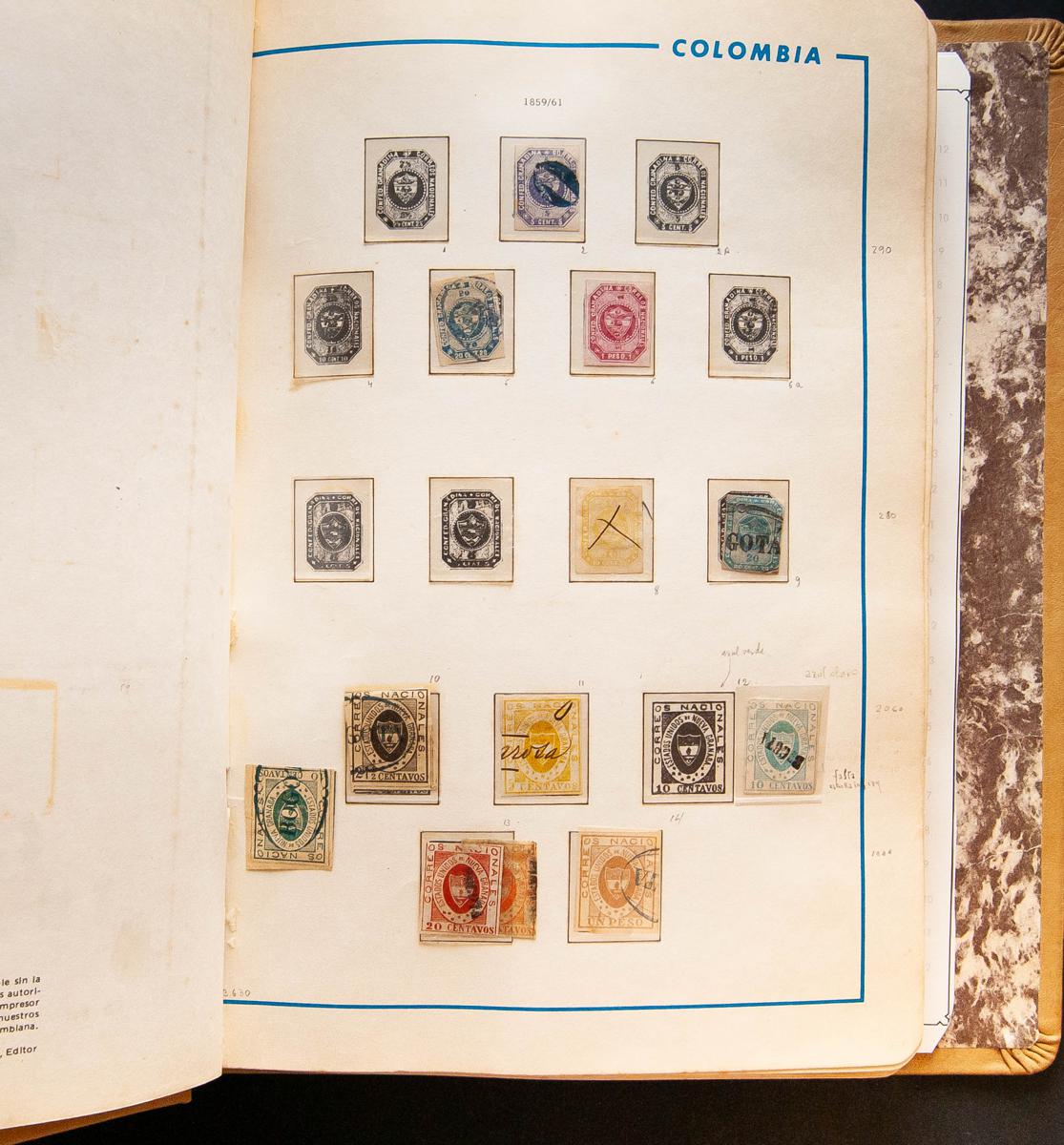 ★/1859. Interesting collection from Colombia between 1859 and 1959, in new and used, the classical part moderately represented with some variety and two unstamped letters, from 1900 the majority in new with numerous complete series of average value and including airmail series, block sheets and certificate labels. VERY HIGH CATALOG VALUE. ESSENTIAL TO EXAMINE.