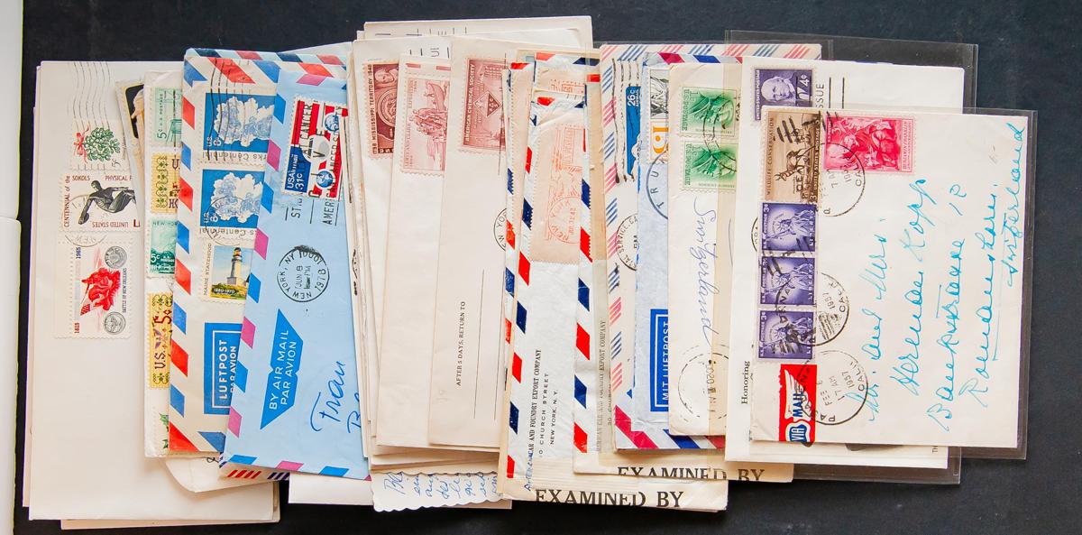 (1914ca). Interesting set of more than four hundred United States letters and postcards circulated between 1914 and 1980, some with unusual postage, includes First Day and Maximum Cards envelopes. TO EXAMINE.
