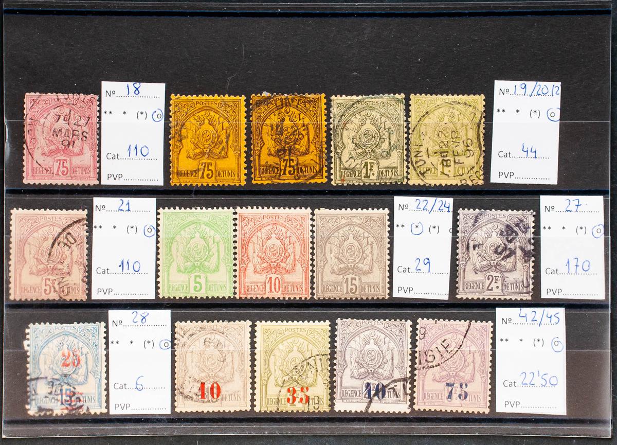 |(*)/th|(1888ca). Interesting set of loose Tunisian stamps between 1888 and 1908, new and used. TO EXAMINE. Yvert 2013: 992 Euros