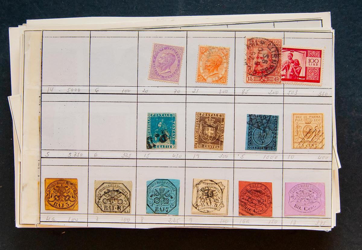 |(*)/th|(1850ca). Interesting set of hundreds of classic stamps from Italian States and Italy, in new and used (most) between 1850 and 1910 in new and used (mounted on old sheets with indication of the Yvert catalog number and price in French francs, ideal to sell by Internet). VERY HIGH CATALOG VALUE. ESSENTIAL TO EXAMINE.
