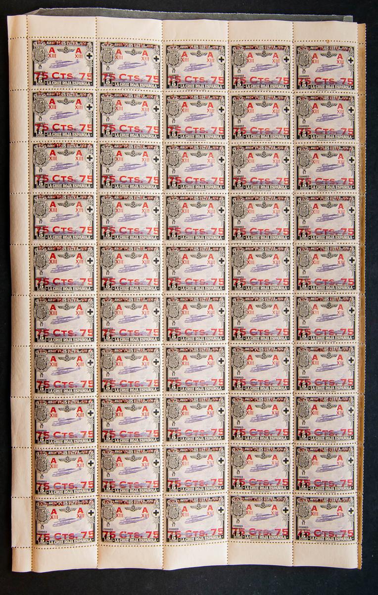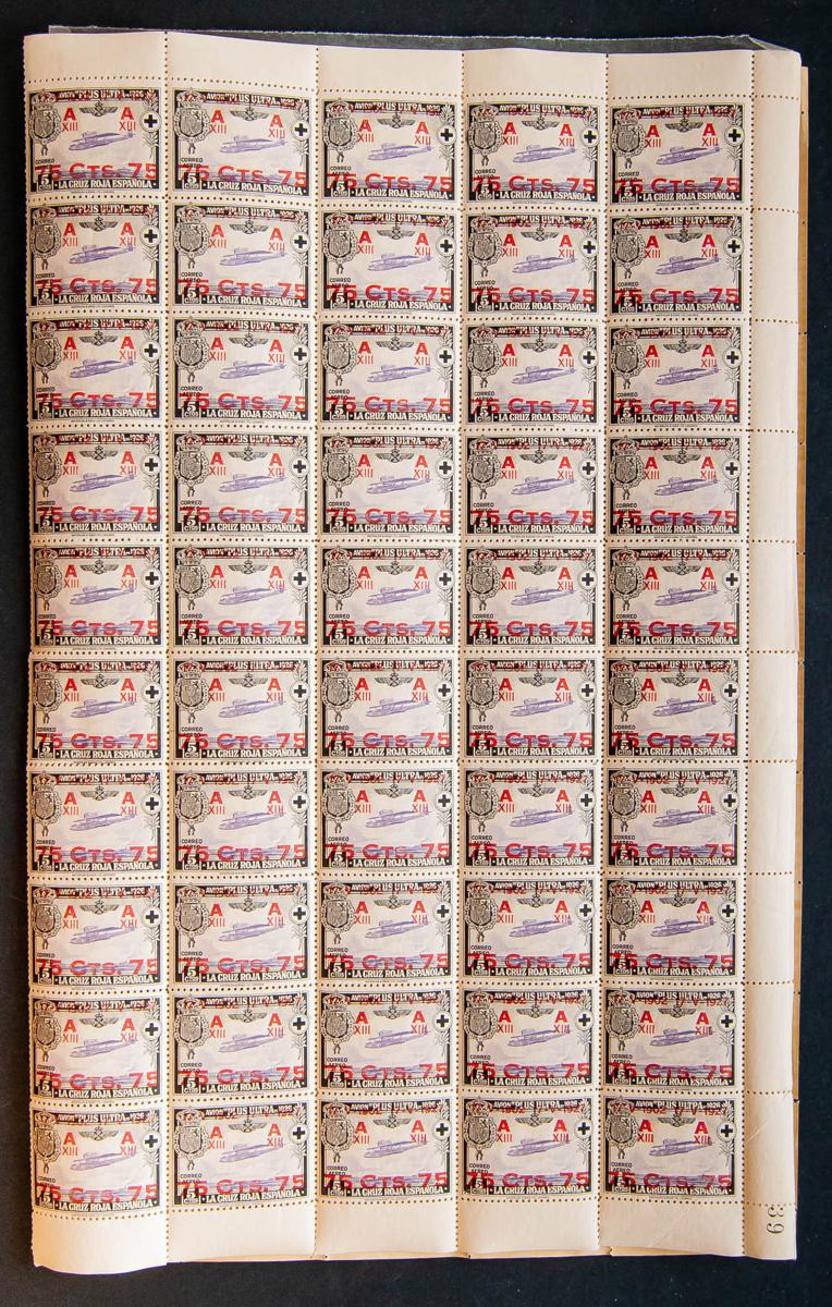 ★★ 388(100). 1927. 75 cts on 5 cts black and violet, one hundred stamps (sheet cut in the center). Two stamps variety "192" INSTEAD OF "1927". TO EXAMINE. Edifil 2022: 1,200 Euros