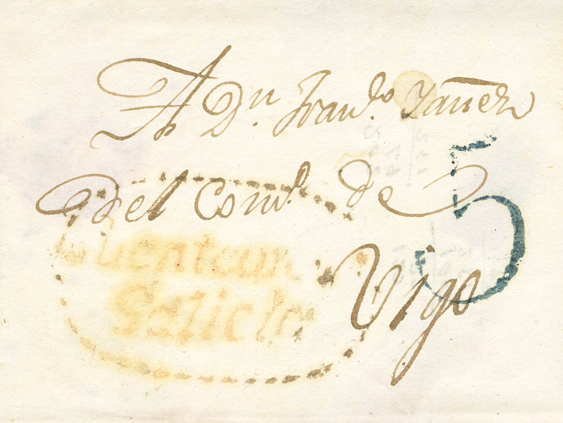 △ 1A. 1850. 6 cuartos black, on fragment. Pre-philatelic postmark PUENTEAREAS / GALICIA, in red. MAGNIFICENT AND SPECTACULAR. Cert. CEM. (pre-philatelic chart included for mark comparison).