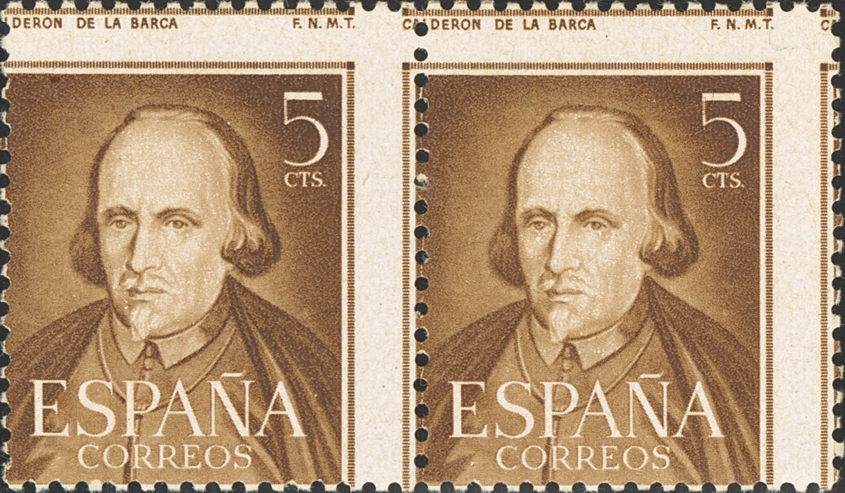 ★★ 1071dx(2). 1950. 5 cts chestnut, pair. Variety DENTADO DESPLAZADO. MAGNIFICENT. Edifil 2015: 160 Euros