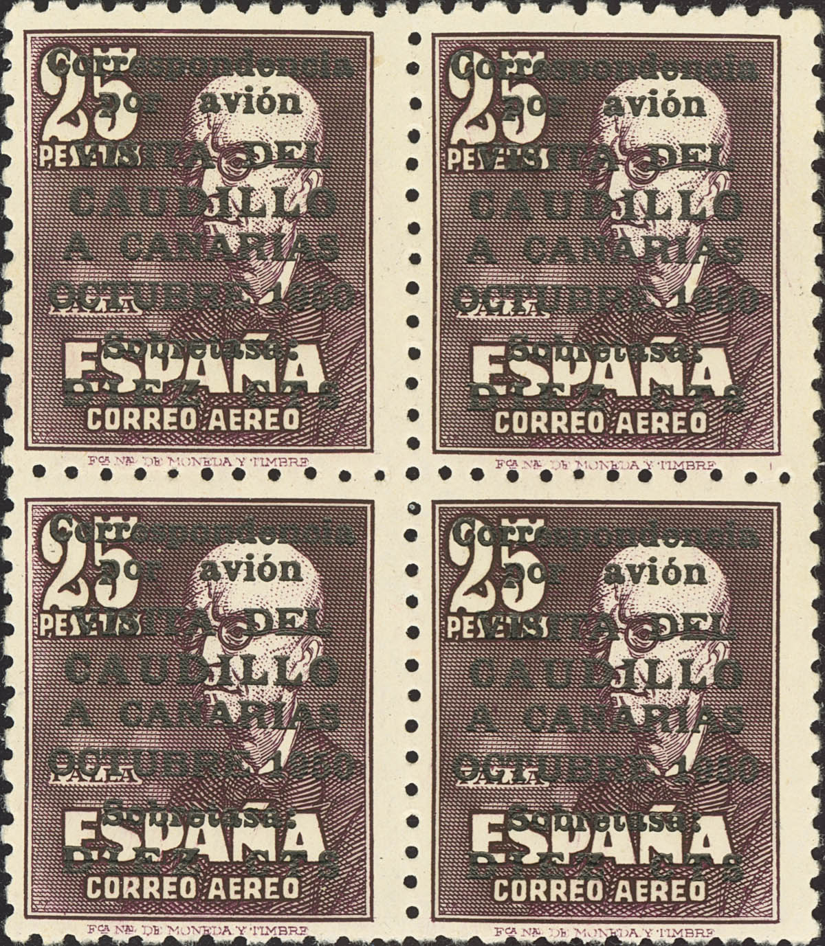 ★★ 1083(4). 1950. CAUDILLO A CANARIAS SIN NUMERO, block of four. MAGNIFICENT AND VERY RARE. Cert. EXFIMA. Edifil 2026: 16,000 Euros