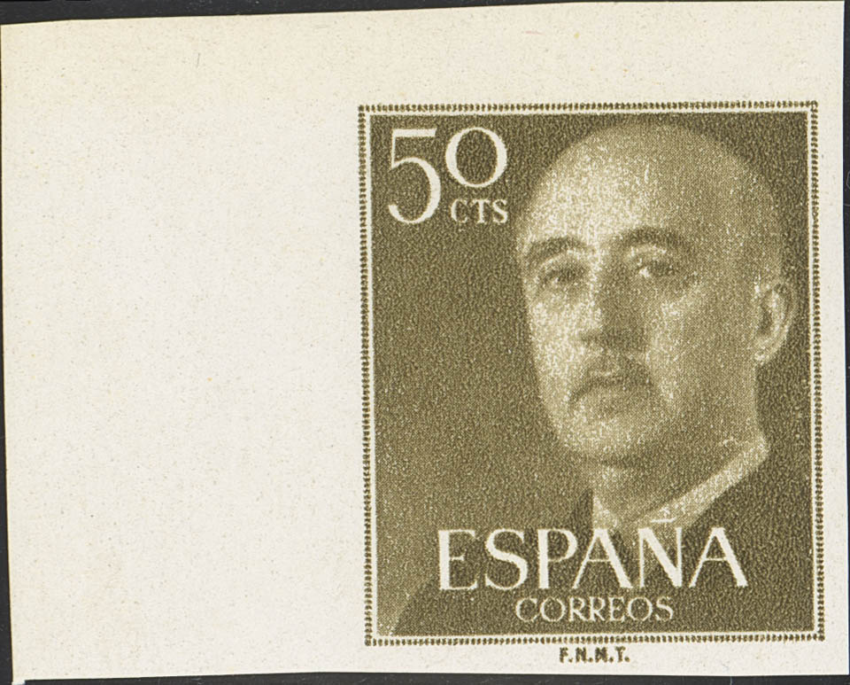 ★★ 1149s. 1955. 50 cts chestnut olive, edge of sheet. IMPERTED. MAGNIFICENT AND EXTREMELY RARE. Cert. CEM. Edifil 2026: ++1,100 Euros
