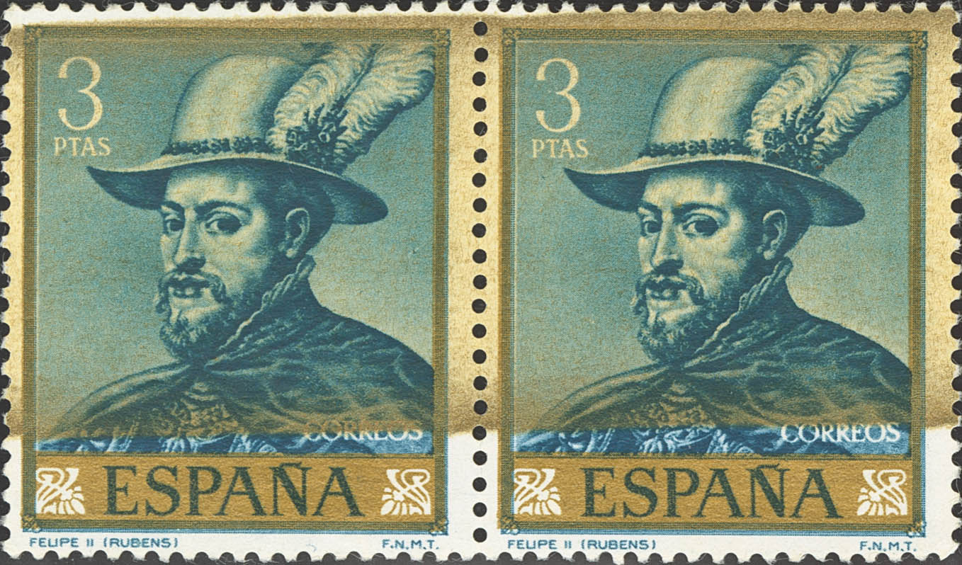 (★) 1436id(2). 1962. 3 pts blue and gold, pair. GOLD HORIZONTAL STRIPE. MAGNIFICENT. Edifil 2025: 118 Euros