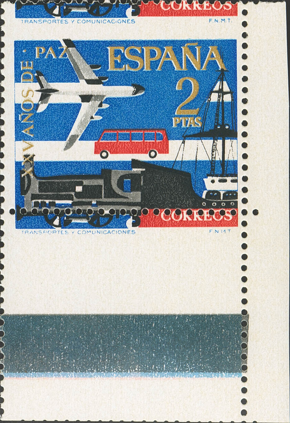 ★★ 1584d. 1964. 2 pts multicolor, corner of sheet. OFFSET HORIZONTAL PERFORATION. MAGNIFICENT.