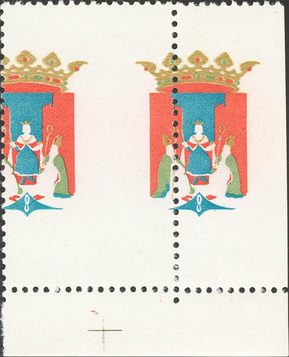 ★★ 1638ef. 1965. 5 pts multicolor, corner of sheet. BLACK COLOR OMITTED and VERTICAL PERFORATION OFFSET. MAGNIFICENT AND RARE.