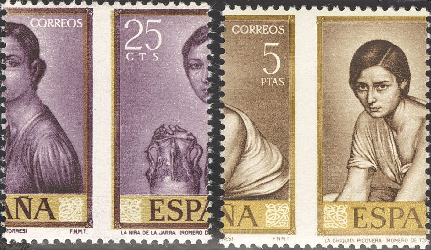 ★★ 1657dh, 1665dh. 1965. 25 cts burgundy and gold and 5 pts chestnut and gold. DISPLACED VERTICAL TOOTH. MAGNIFICENT. Edifil 2025: 200 Euros