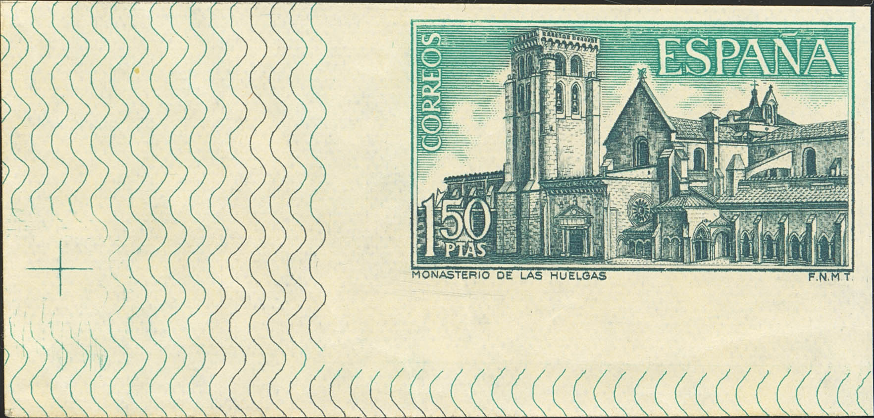 ★★ 1946s. 1969. 1.50 pts blue and slate, sheet corner. UNPERFORATED. MAGNIFICENT AND EXTREMELY RARE, ESPECIALLY WITH THIS SPECTACULAR SHEET CORNER. Cert. CEM.