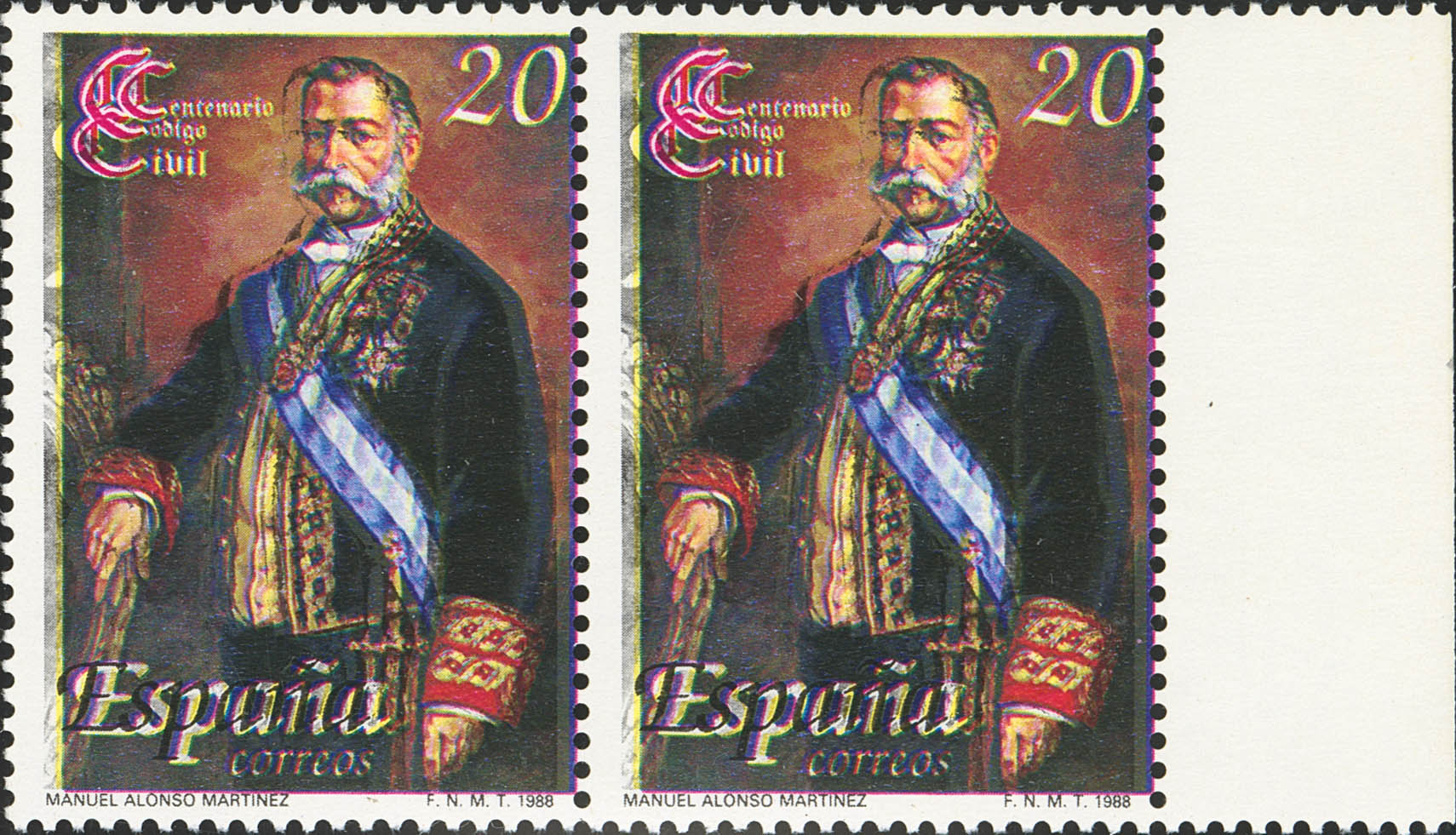 ★★ 2968id. 1988. 20 pts multicolor, pair. COLORS MISSING. EXCELLENT. Edifil 2010: 70 Euros