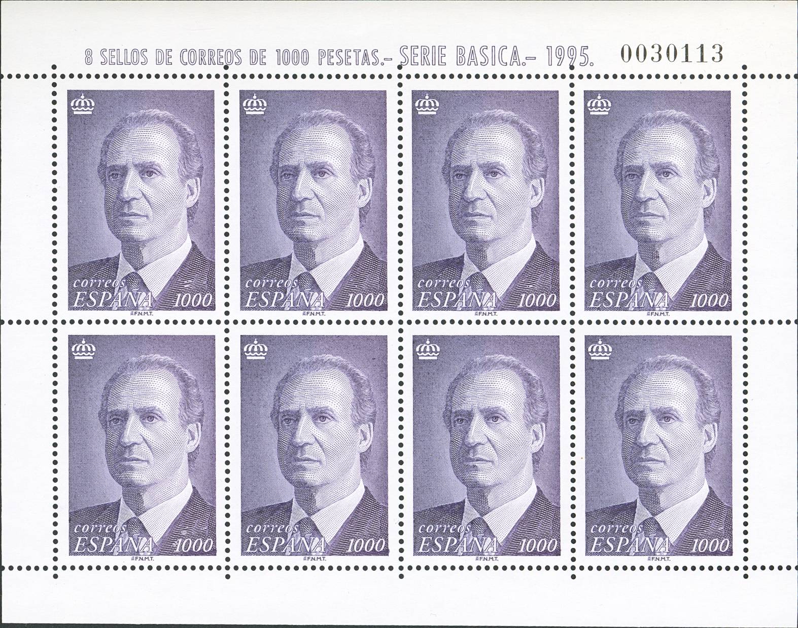 English ★★ 3403(8). 1995. 1000 pts violet, mini-sheet of eight stamps. TO BE EXAMINED. Edifil 2025: 440 Euros