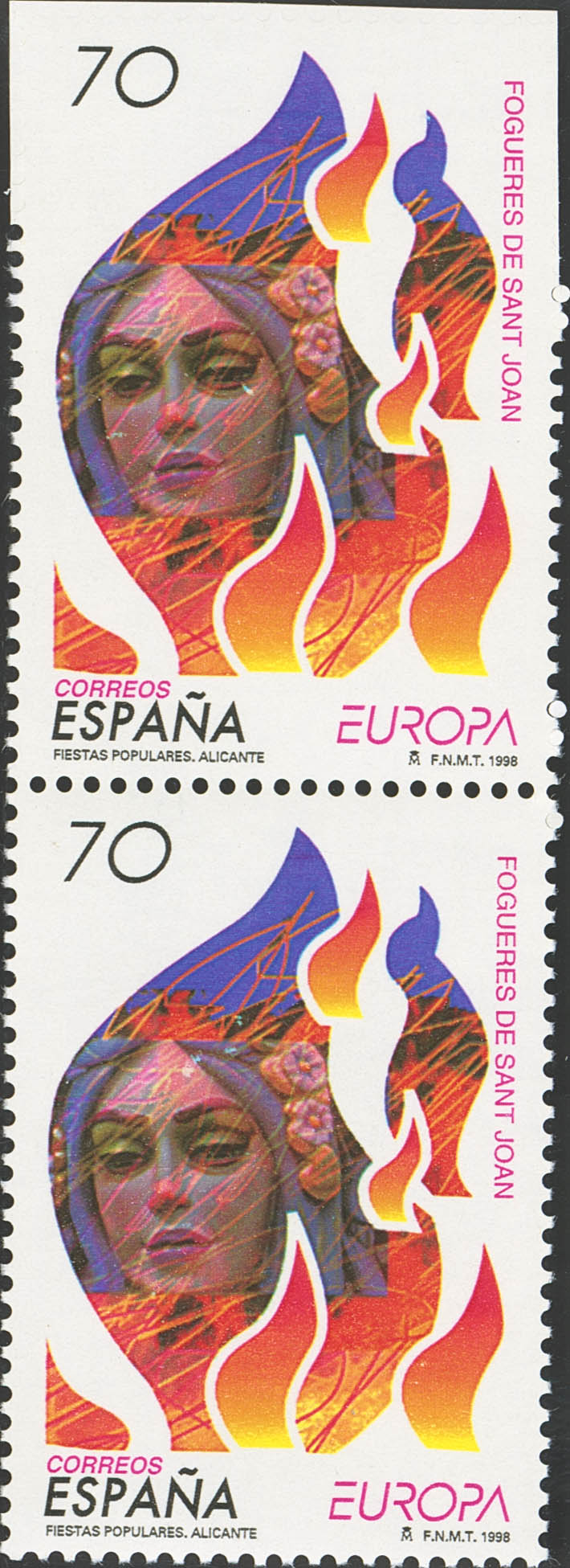 ★★ 3542, 3542dw. 1998. 70 pts multicolor, vertical pair. Upper stamps PARTIALLY UNPERFORATED. EXCELLENT. Cert. CEM.