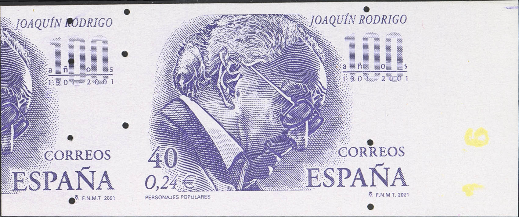 ★★ 3783s. 2001. 40 pts violet, leaf edge (with part of another stamp on the left). IMMERSED and perforated. MAGNIFICENT AND EXTREMELY RARE, NOT REVIEWED IN IMMERSED FORM. Cert. COMEX.