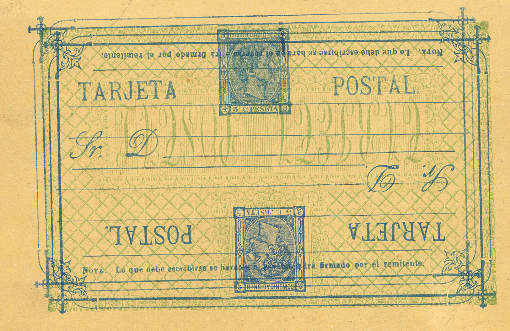(★) EP8e. 1875. 5 cts overseas on Postal Stationery Card DOUBLE PRINTED. MAGNIFICENT. (Láiz, 100 Euros)
