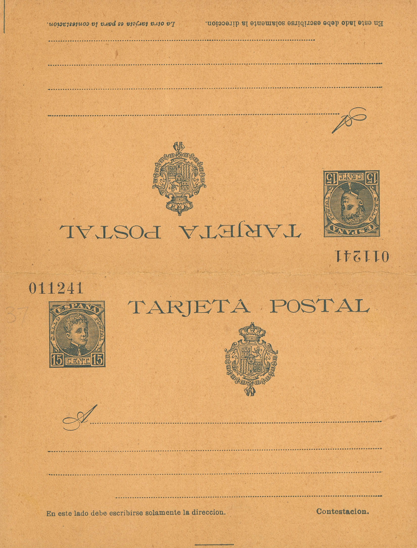 (★) EP38. 1901. 15 cts + 15 cts slate on Postal Stationery Card, return. MAGNIFICENT. Edifil 2026: 89 Euros