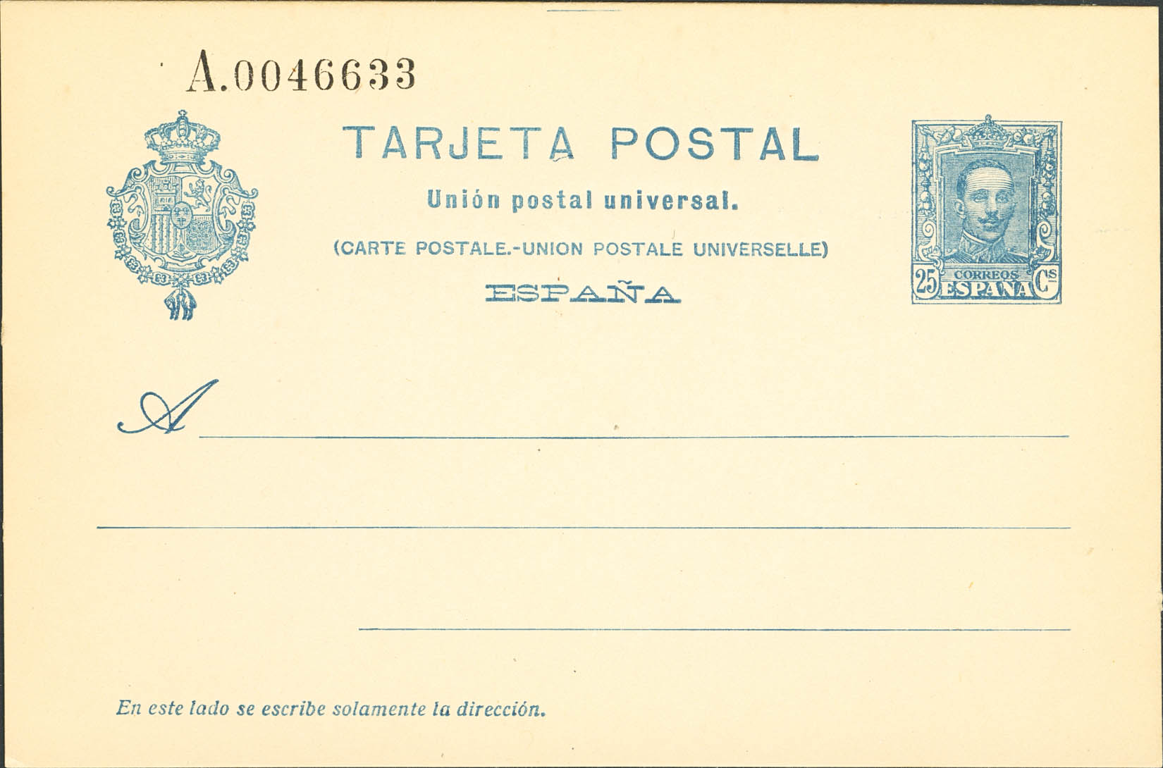 (★) EP59. 1925. 25 cts blue on Postal Stationery Card. MAGNIFICENT. Edifil 2025: 72 Euros