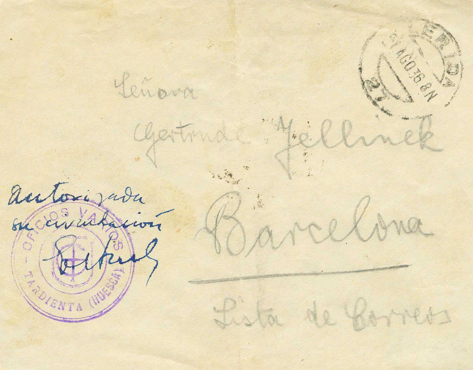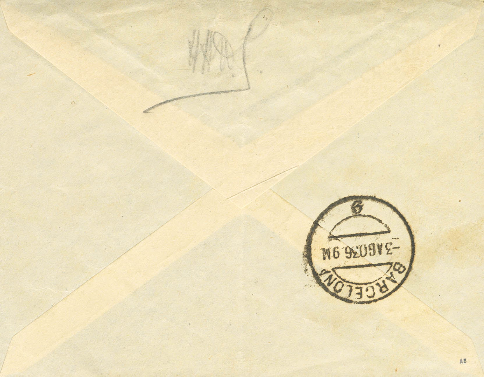 1936. TARDIENTA (HUEUncirculatedA) to BAGoodELONA. Mark: VARIOUS TRADES / TARDIENTA (HUEUncirculatedA). Arrival on the back. MAGNIFICENT AND RARE.