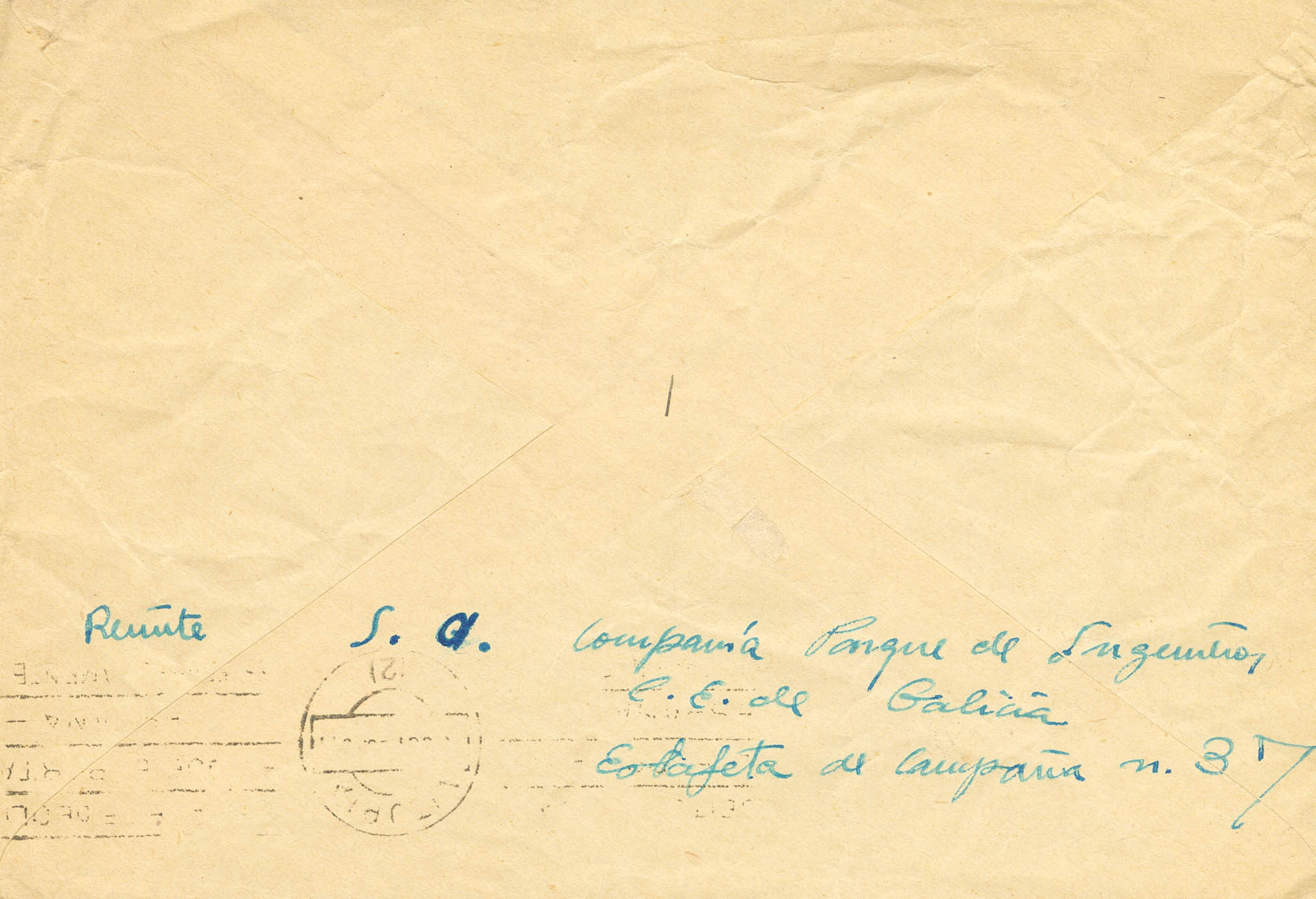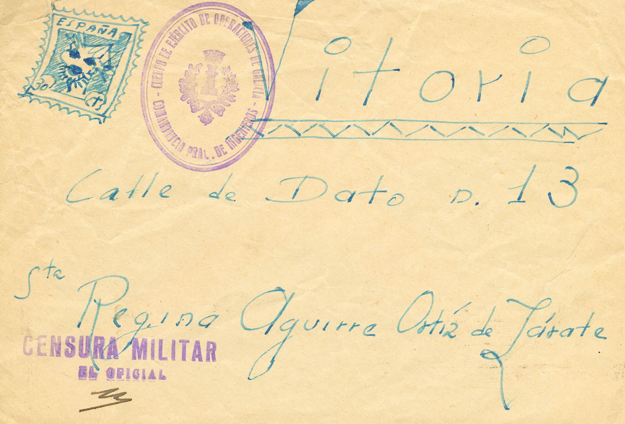 1938. Addressed to VITORIA. Hand-drawn stamp and franchise mark ARMY CORPS OF OPERATIONS OF GALICIA / MAIN COMMAND OF ENGINEERS, in violet and on the back "arrival". MAGNIFICENT.