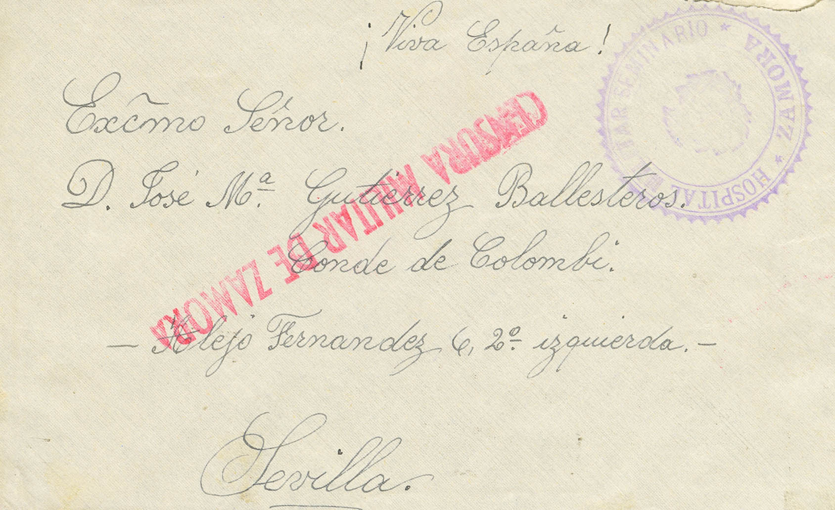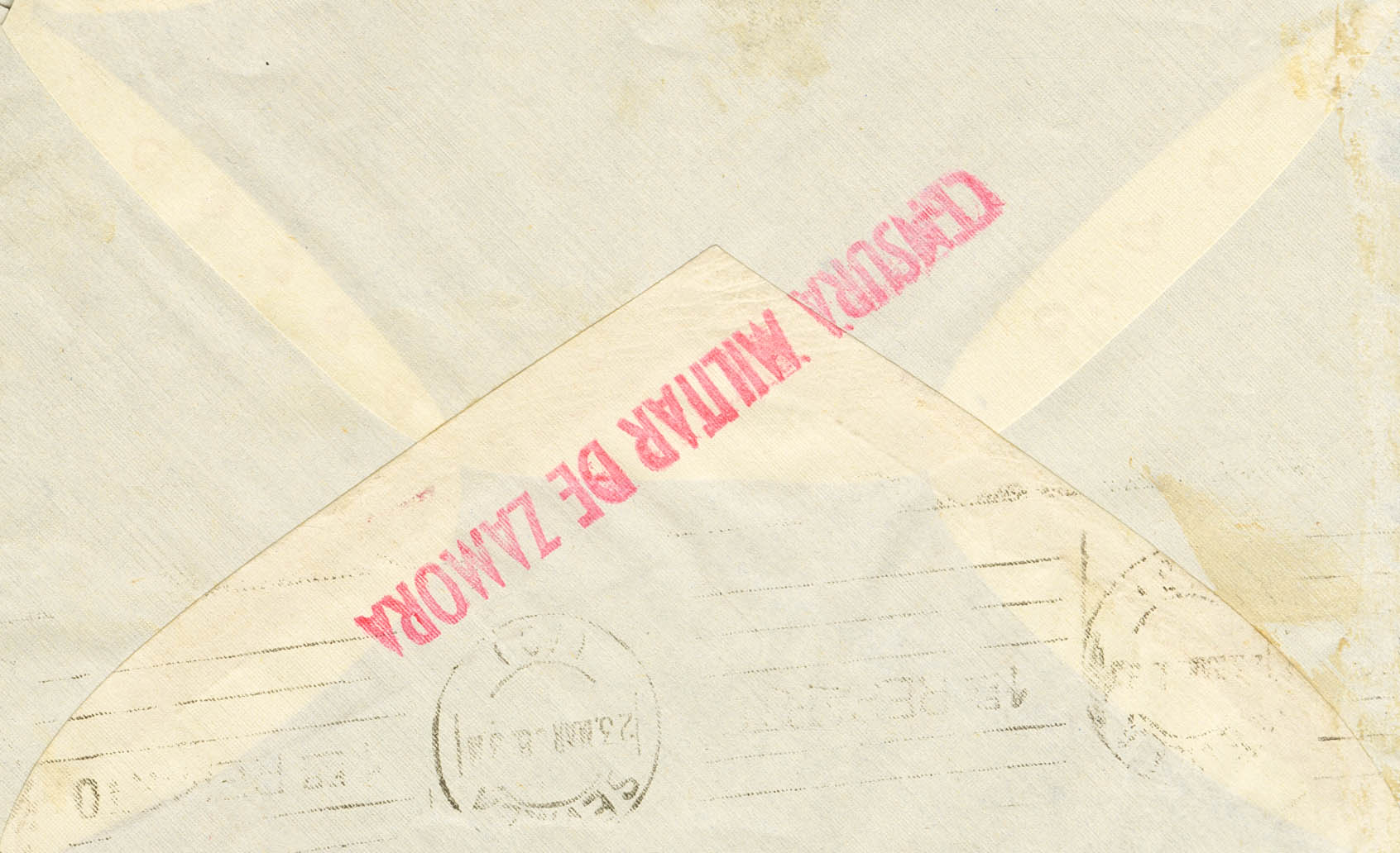 1938. ZAMORA to SEVILLE. Mark MILITARY HOSPITAL SEMINARY / ZAMORA, in violet and on the back arrival. MAGNIFICENT.