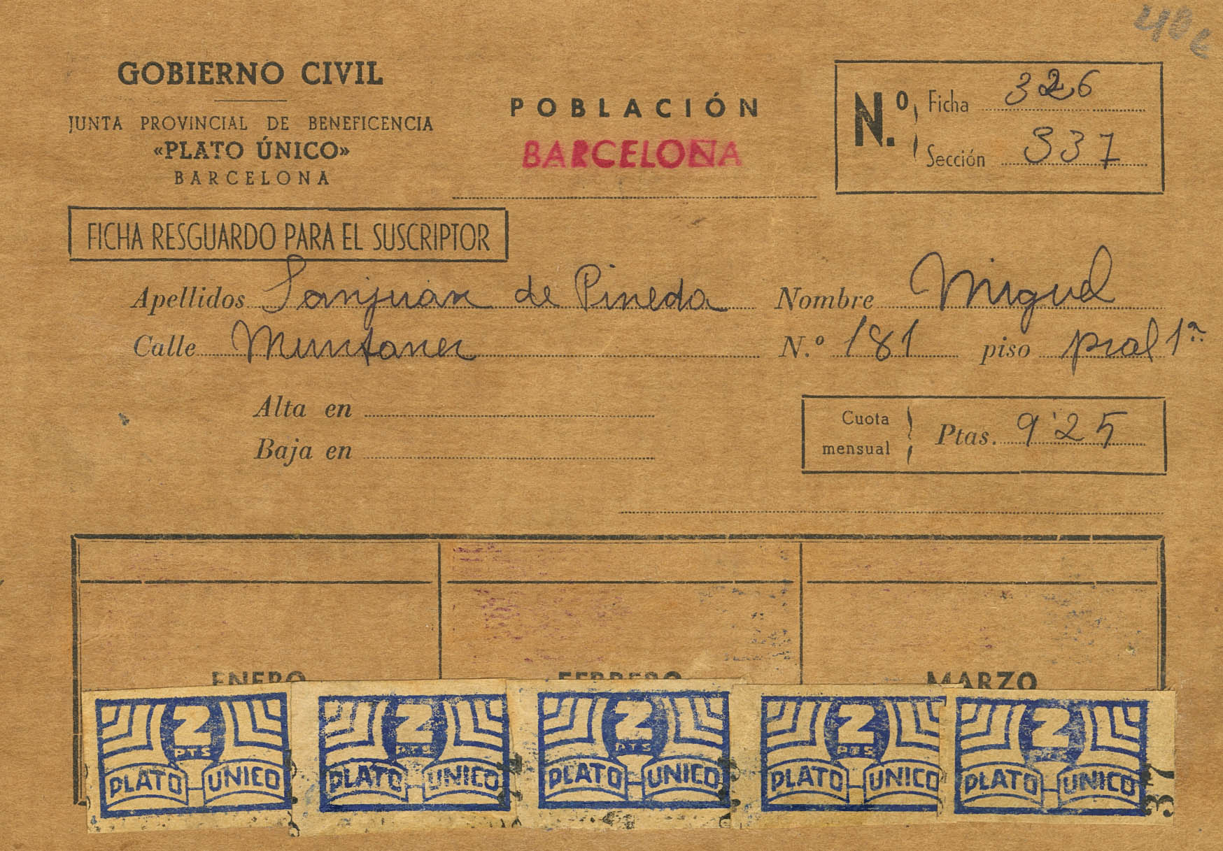 △(1940ca). 2 pts overseas SINGLE PLATE, five stamps, on Subscriber Card. MAGNIFICENT.