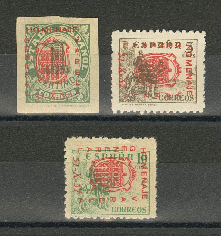★★ 1/5hhc. 1937. Complete series, three values. COLOR CHANGE ON OVERLOAD. MAGNIFICENT. Edifil 2017: 33 Euros