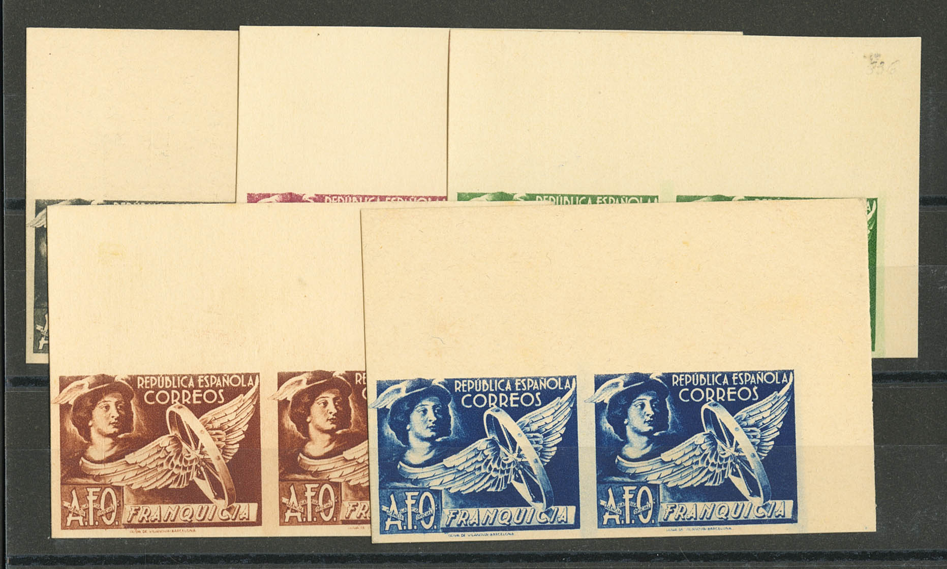 (★) 23/27sp(2). 1938. Complete series, pair, corner of sheet. CARDBOARD. MAGNIFICENT. Edifil 2011: 300 Euros