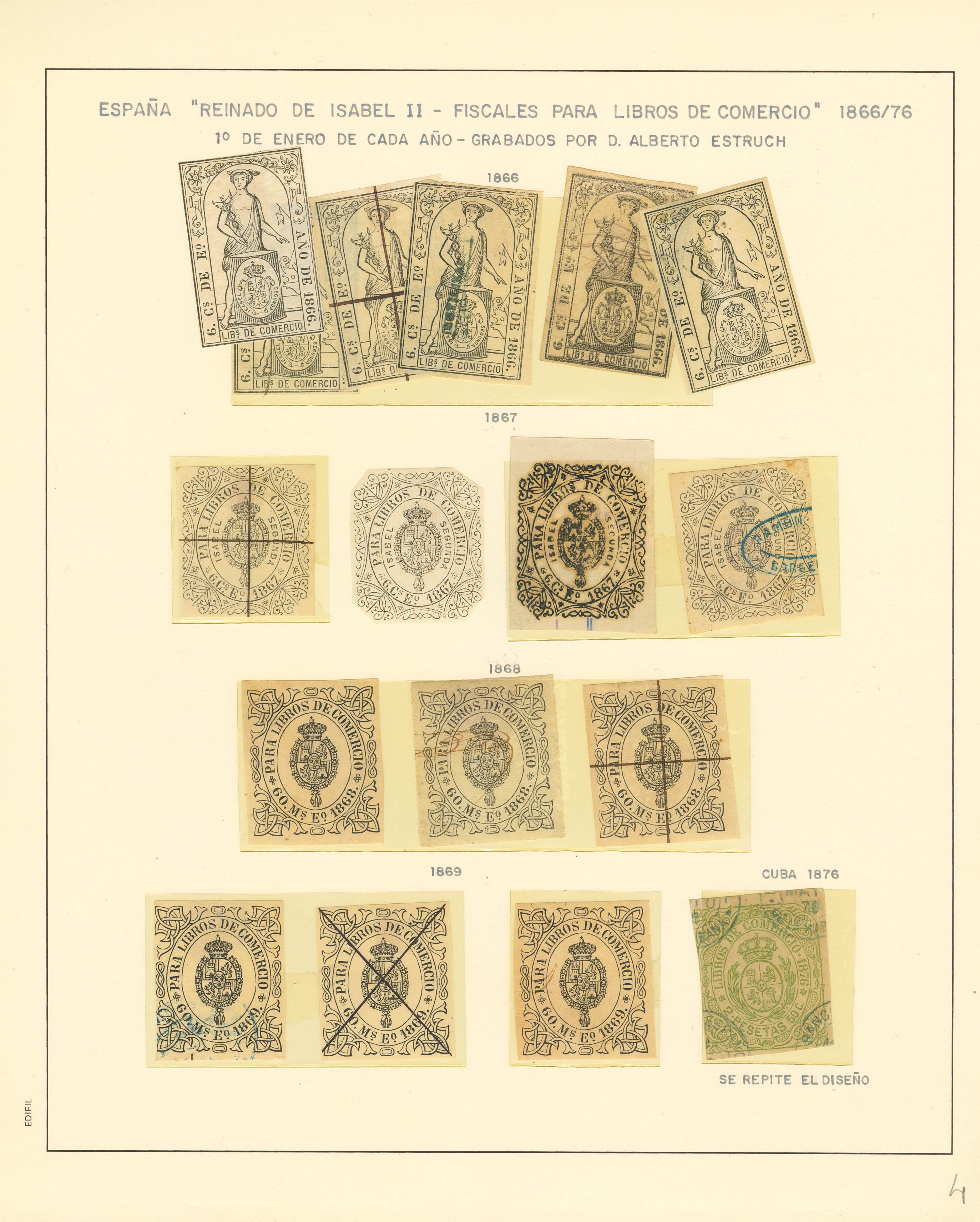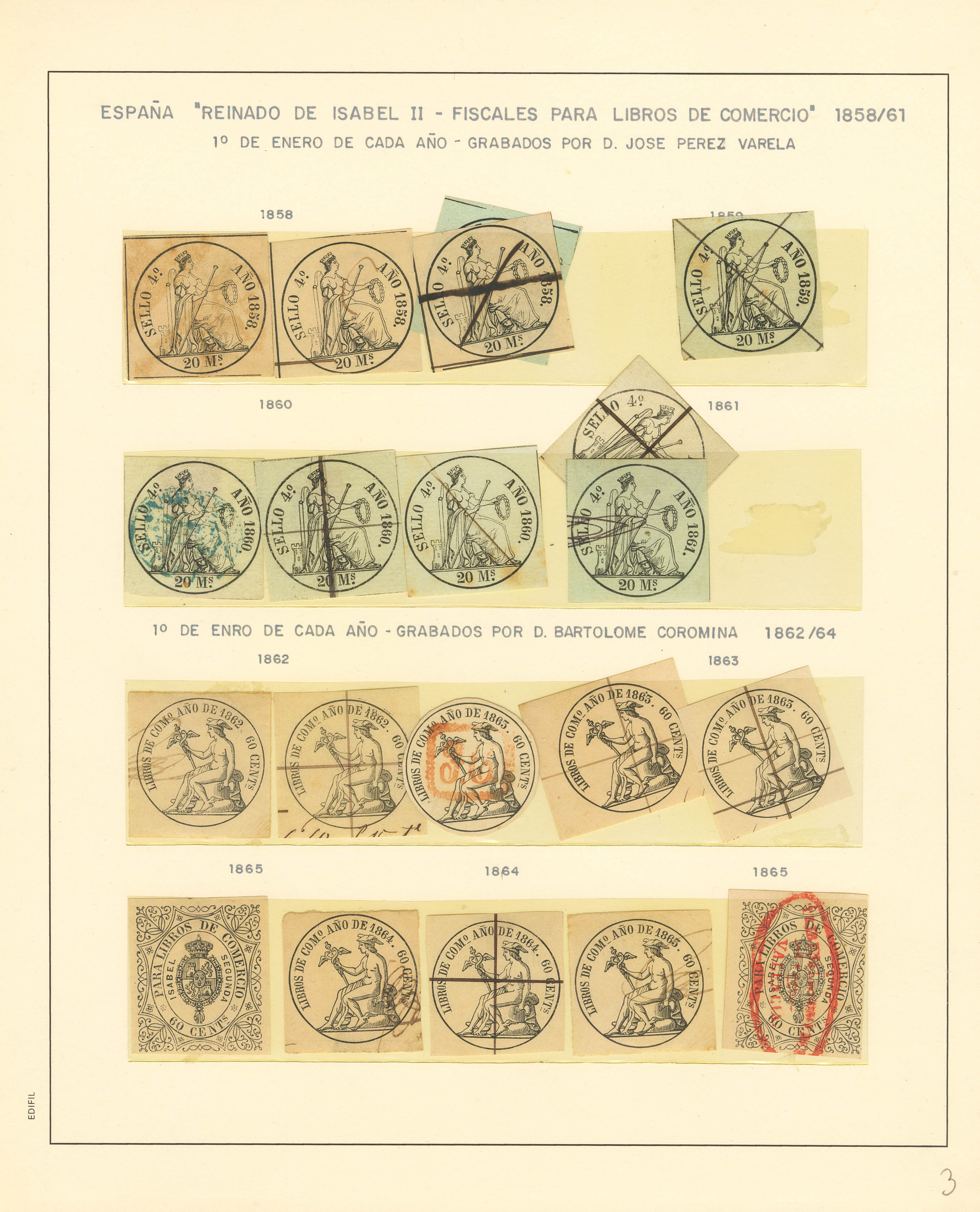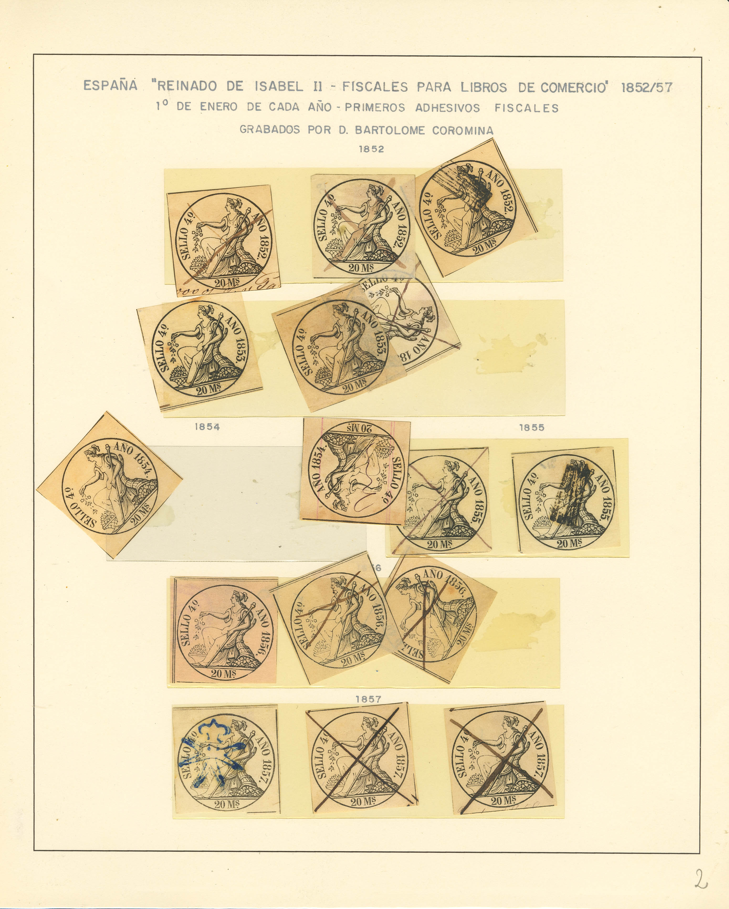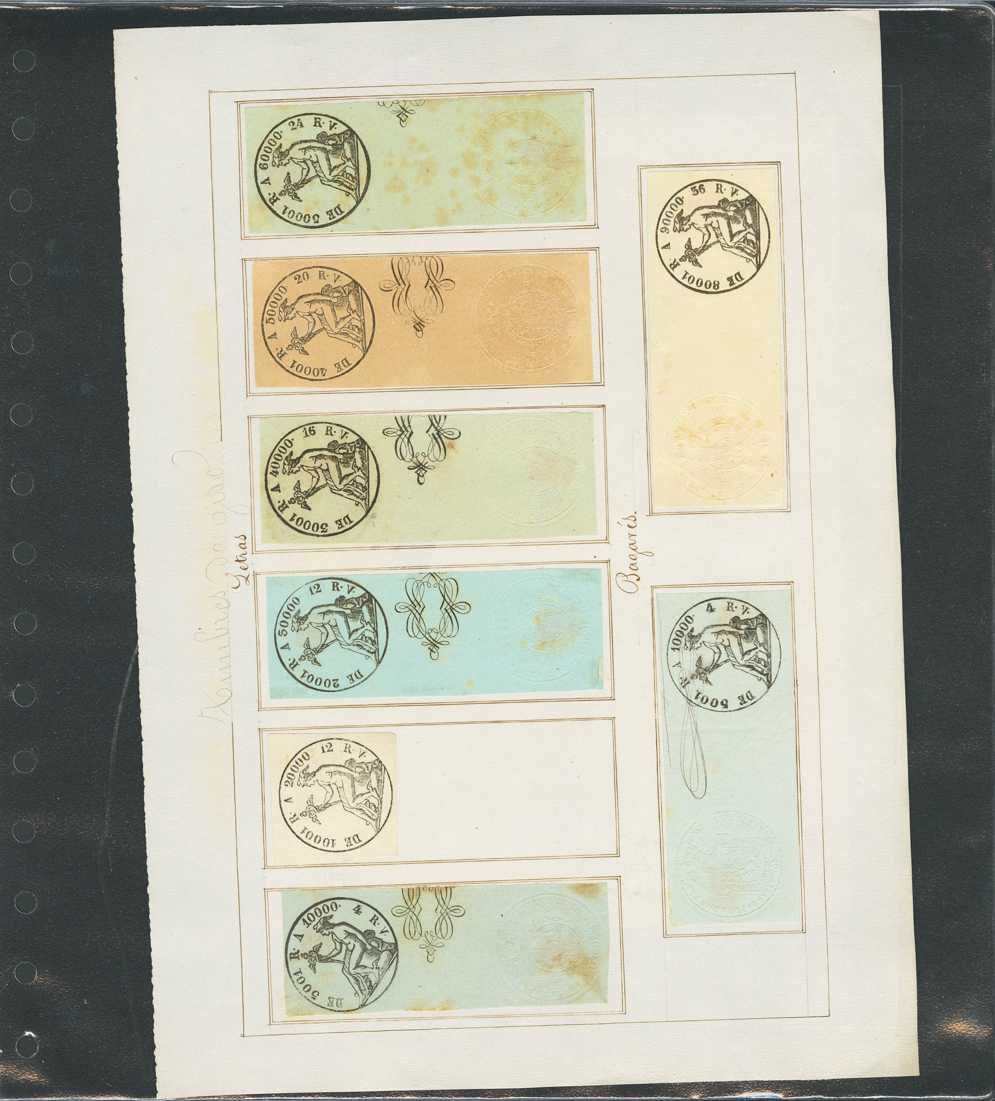 (★)/(1852ca). Spectacular collection of fiscal ledgers from 1852 to 1868, both new and used, including numerous documents and some variants. A MUST-SEE. Ex-Alemany.