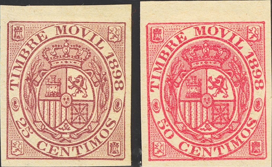 ★1898. 25 cts carmine and 50 cts pink MOBILE BELL (1898), leaf edges. WITHOUT TOOTH. MAGNIFICENT.