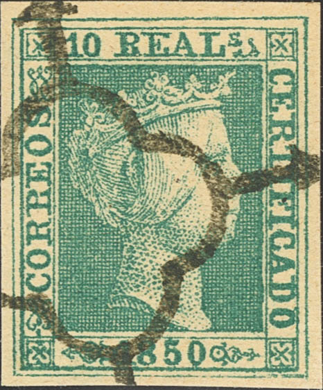 5F. 1850. 10 green reales. FALSE SPERATI, on the back the BPA mark MAGNIFICO.