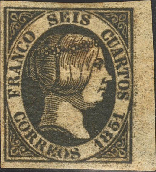 ★ 6. 1851. 6 quartos black, leaf edge. Wide margins and exceptional color. LUXURY PIECE. Cert. GRAUS.