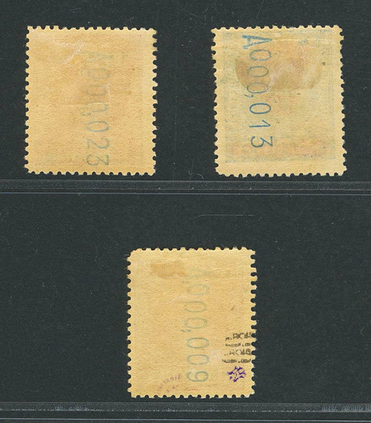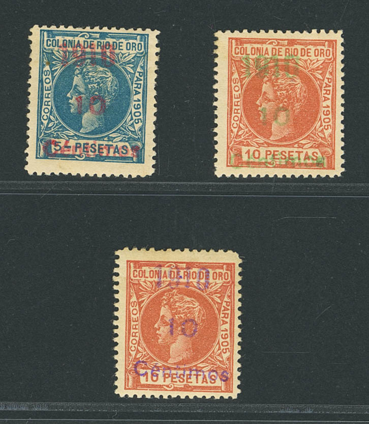 ★ 55hcc, 56hcc, 56hcca. 1910. 10 cts over 5 pts, 10 cts over 10 pts and 10 cts over 10 pts. OVERLOAD COLOR CHANGES. MAGNIFICENT AND RARE. Edifil 2018: 840 Euros