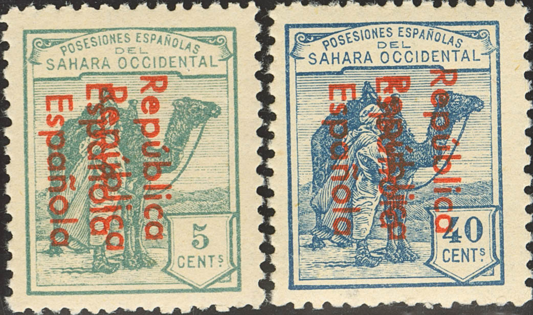 ★★ 36Ahh, 42Ahh. 1932. 5 cts light green and 40 cts blue. DOUBLE OVERLOAD. MAGNIFICENT. Edifil 2018: +570 Euros