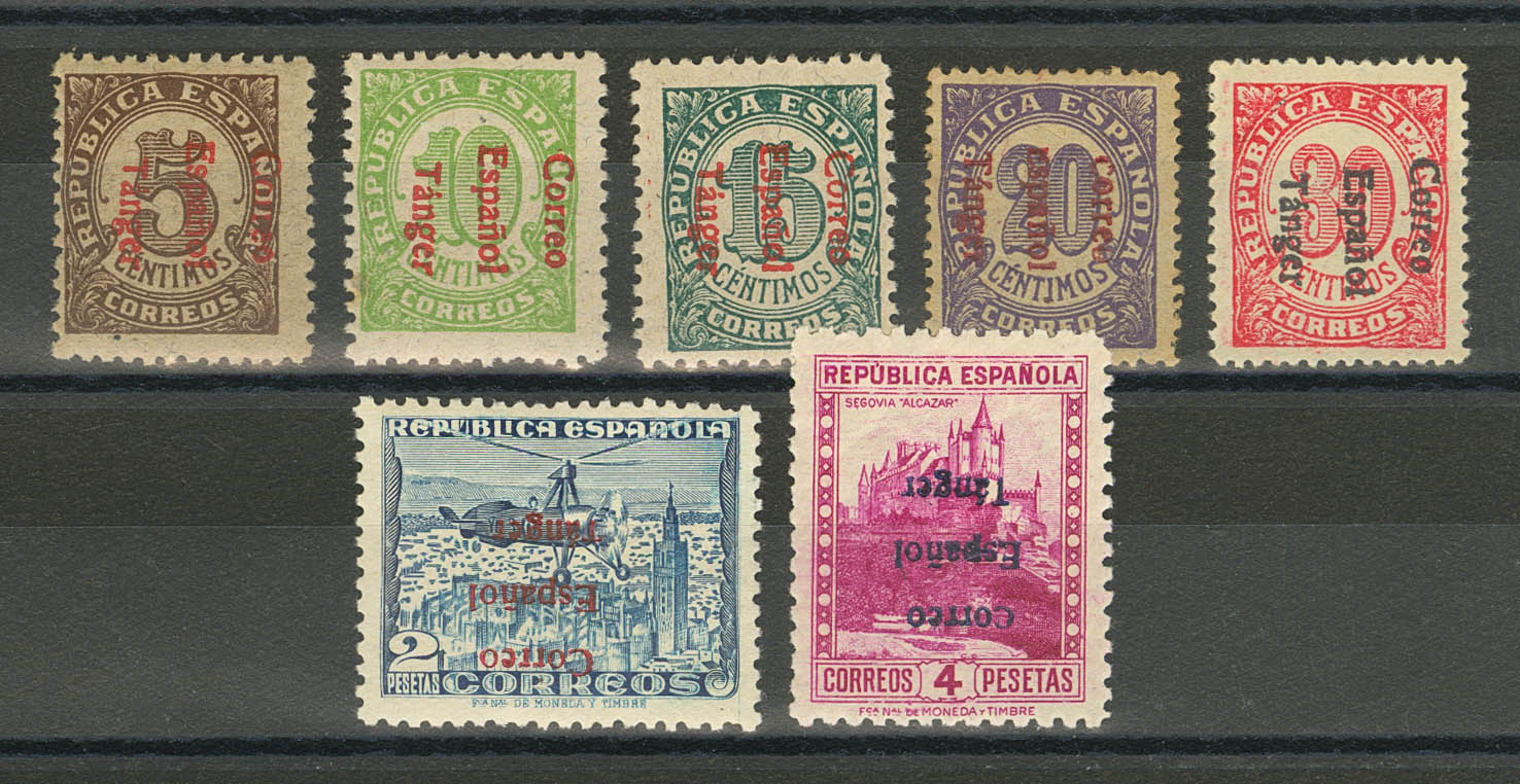 ★ 96/07hi. 1938. Complete series, seven values. REVERSED OVERPRINT. MAGNIFICENT AND RARE. Edifil 2018: 230 Euros